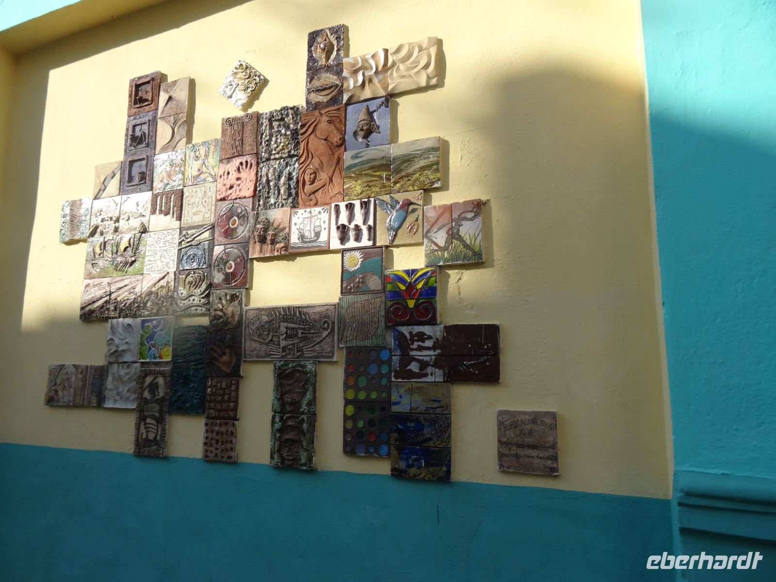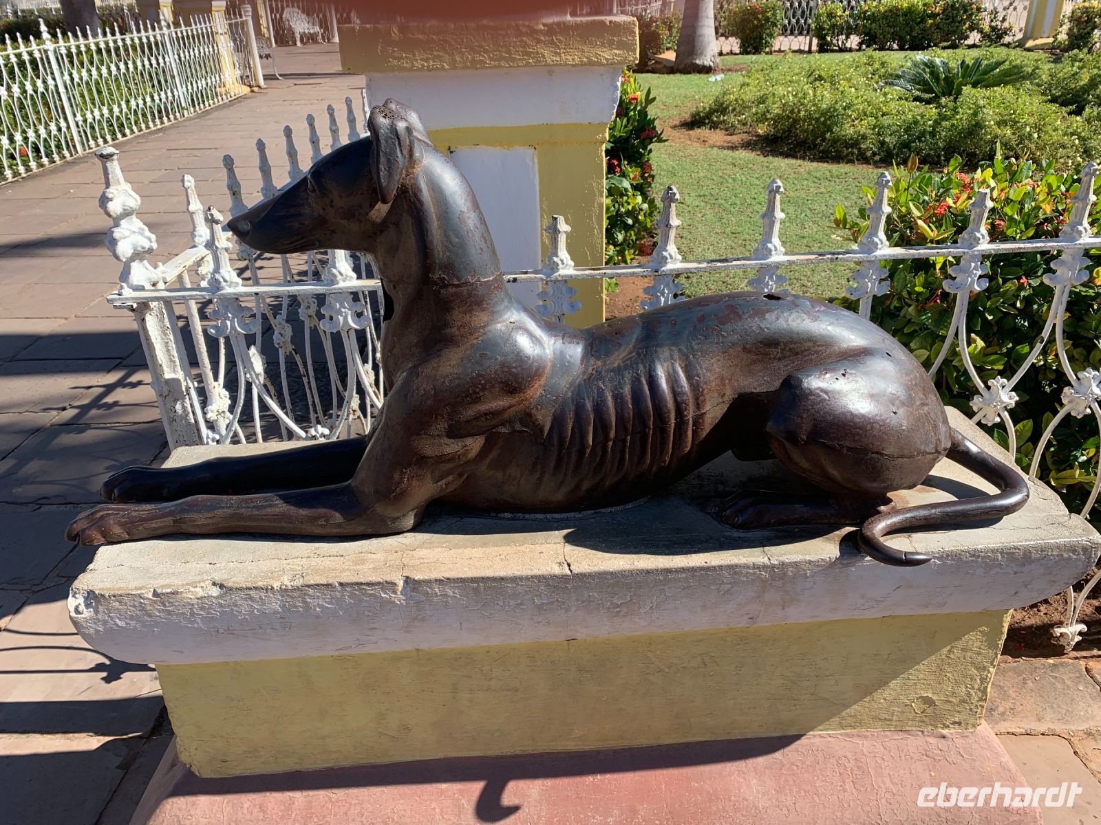Da wir bislang noch nicht viel von Trinidad gesehen haben, holen wir dies am Morgen nach. Wir fahren zunächst zu einer Töpferei, denn Trinidad ist berühmt für seine Töpferwaren, wir schauen uns im Lager um und es wird auch das eine oder andere gekauft. Danach heißt es, sich mit dem Buckelpflaster der Stadt auseinandersetzen und achtsam die Füße setzen. Wir spazieren zum Hauptplatz mit der Pfarrkirche, bestaunen die prächtigen Häuser und ihre noch prächtigere Inneneinrichtung. Der Zuckeraristokratie war nichts zu teuer. Besonders fallen die kunstvollen Fenstergitter auf, teils sind sie aus Holz, später fertigte man sie kunstvoll aus Eisen. Sie reichen bis zum Boden und dahinter saßen die Damen des Hauses gut geschützt. Dennoch konnten sie das Geschehen auf der Straße bequem verfolgen.