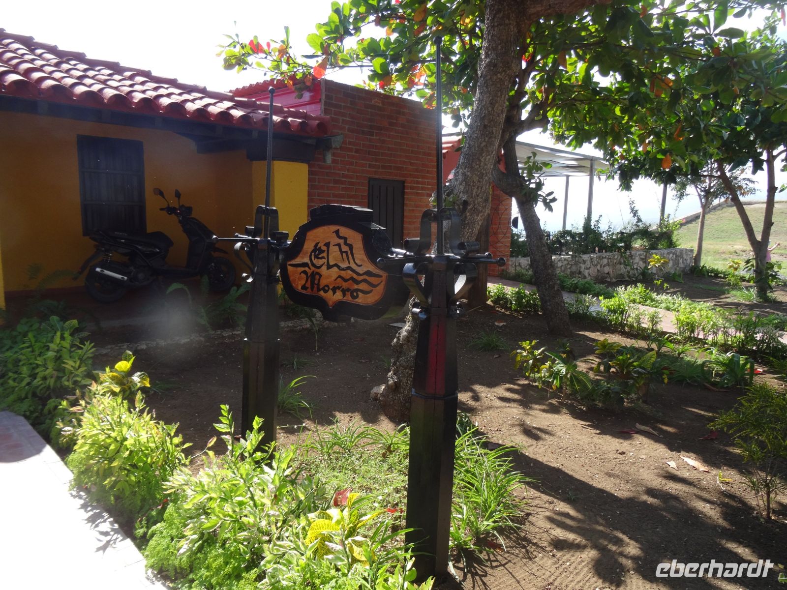 Der Flug mit Condor zieht sich, zwischen Vorfreude und Langeweile ist man hin- und hergerissen Aber schließlich ist es doch geschafft, die Maschine landet pünktlich auf dem Flugplatz "Frank Pais" in Holguin, im Osten Kubas. Unser kubanischer Guide holt uns ab und gemeinsam fahren wir in das Hotel E Caballeriza in Holguin. Das Hotel beherbergte in der spanischen Zeit eine Kavallerieeinheit, daher hat es seinen Namen. Mit einigen Dekorationsstücken erinnert es an diese Vergangenheit. Entscheidender für uns ist das Angebot an kalten Getränken, bezahlbar in Euro. Nachdem der schlimmste Durst gelöscht ist, geht es schnell ins Bett, morgen beginnt ja unsere große Rundreise wirklich.