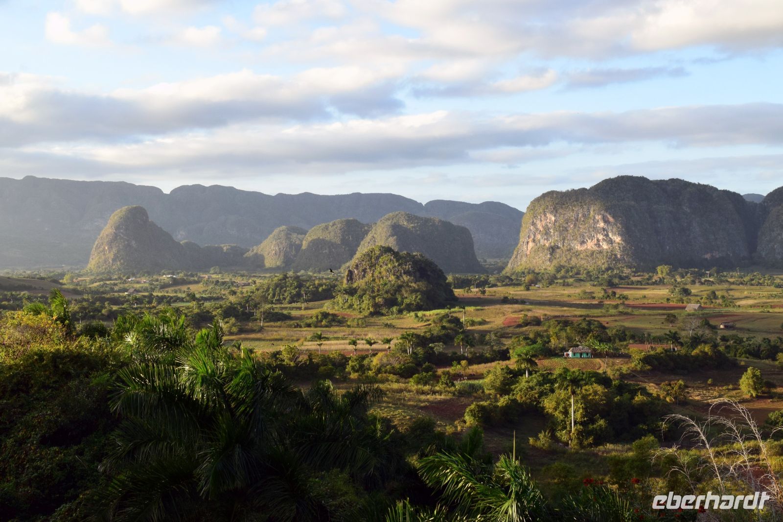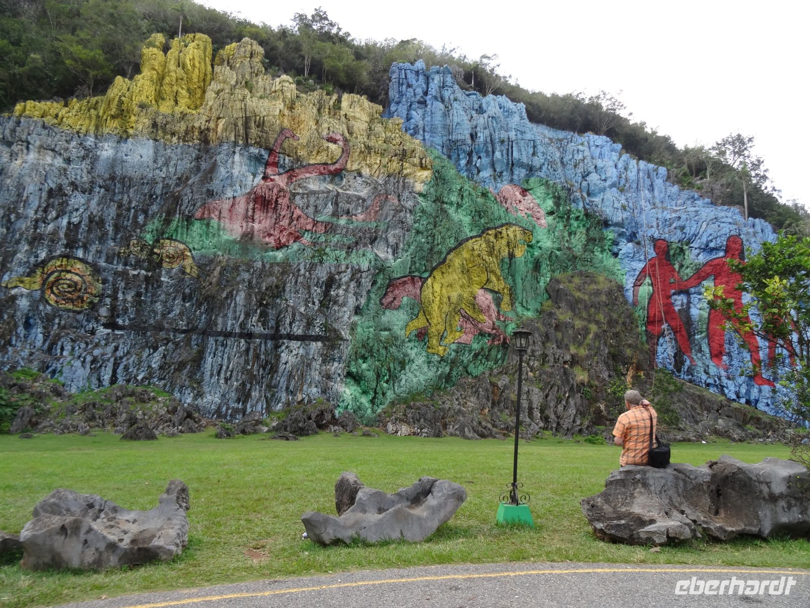 Zunächst bleiben wir noch der Natur treu und besuchen den Orchideengarten in Soroa .Hier hatte der Rechtsanwalt Camacho 1943 begonnen, einen Garten anzulegen und sich dabei besonders den Orchideen gewidmet. 1953 war der Garten vollendet und er widmete ihn seiner verstorbenen Tochter, die besonders Orchideen geliebt hatte. 1960 starb der Besitzer und der Garten ging in Staatsbesitz über. Wir bewundern die vielen exotischen Pflanzen und den schönen Ausblick in das Tal. Weiter geht die Fahrt nach Vinales und zum nächsten schönen Ausblick in das Tal der Mogotes. Vom Aussichtspunkt Los Jazmines aus kann man die Karstrücken der Berge sehr gut sehen. Hier wächst der beste Tabak Kubas und so besuchen wir folgerichtig den Bauern Eduardo und lassen uns von ihm noch einmal die Besonderheiten des Tabakanbaus erklären und er rollt uns auch eine Zigarre zum Probieren. Der letzte Programmpunkt ist die "PrähistorischeWand". Sie wurde in den 1960er Jahren von Leovigildo Gonzalez Morillo mit Hilfe einheimischer Bauern bemalt und stellt die Entwicklung des Lebens dar. Bei Alberto Vitamina können wir uns an den regionalen Produkten aus der Landwirtschaft stärken für die Rückfahrt nach Havanna.