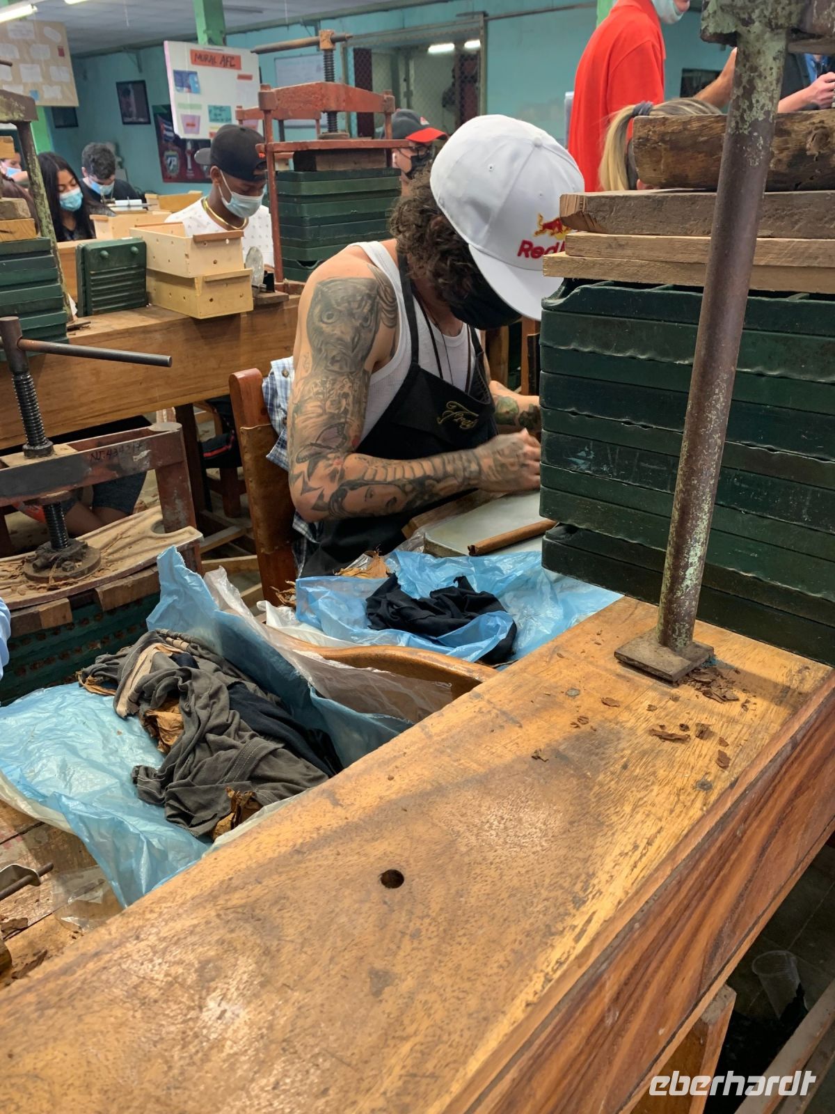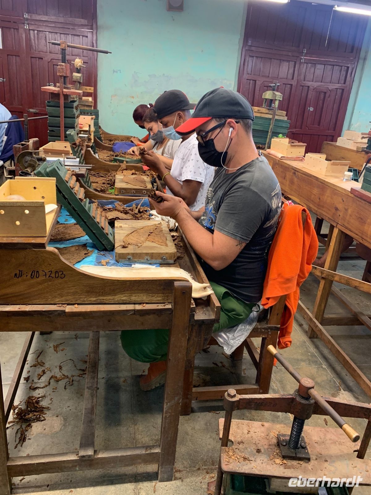 Wir wenden uns Richtung Norden und nehmen die Cayos del Norte ins Visier. Aber vorher gibt es noch einen Halt in Camajuani. Dort besichtigen wir eine Tabakfabrik. Wir können ganz nah alle Arbeitsgänge verfolgen und sehen, wie eine echte Havanna entsteht. Besonders beeindruckend ist die Arbeit derjenigen torcedores, welche die Deckblätter farblich sortieren und dabei feinste Nuancen erkennen und berücksichtigen. Nach diesem interessanten Besuch fahren wir zur Familie meiner Schwiegertochter und trinken dort einen guten Kaffee, unterstützt von etwas Rum. Natürlich gibt es auch einen Imbiss und die Gruppe kann sich im Haus ein wenig umsehen. So erhält sie doch einen kleinen Einblick in das Leben einer kubanischen Familie. Danach fahren wir über die 40 km lange Dammstraße auf das Cayo Santa Maria, um im Hotel Dhawa unsere Badetage zu verbringen.