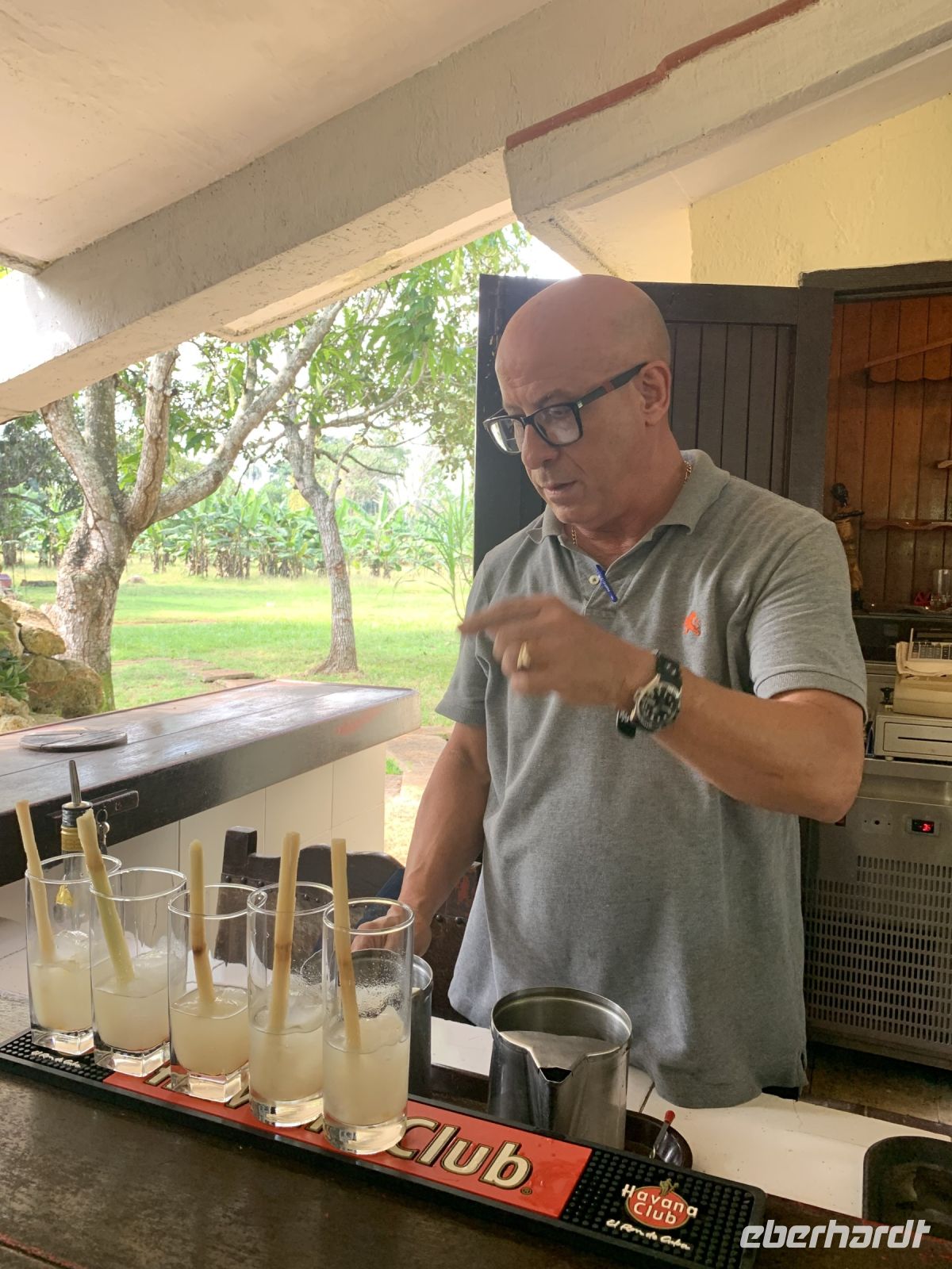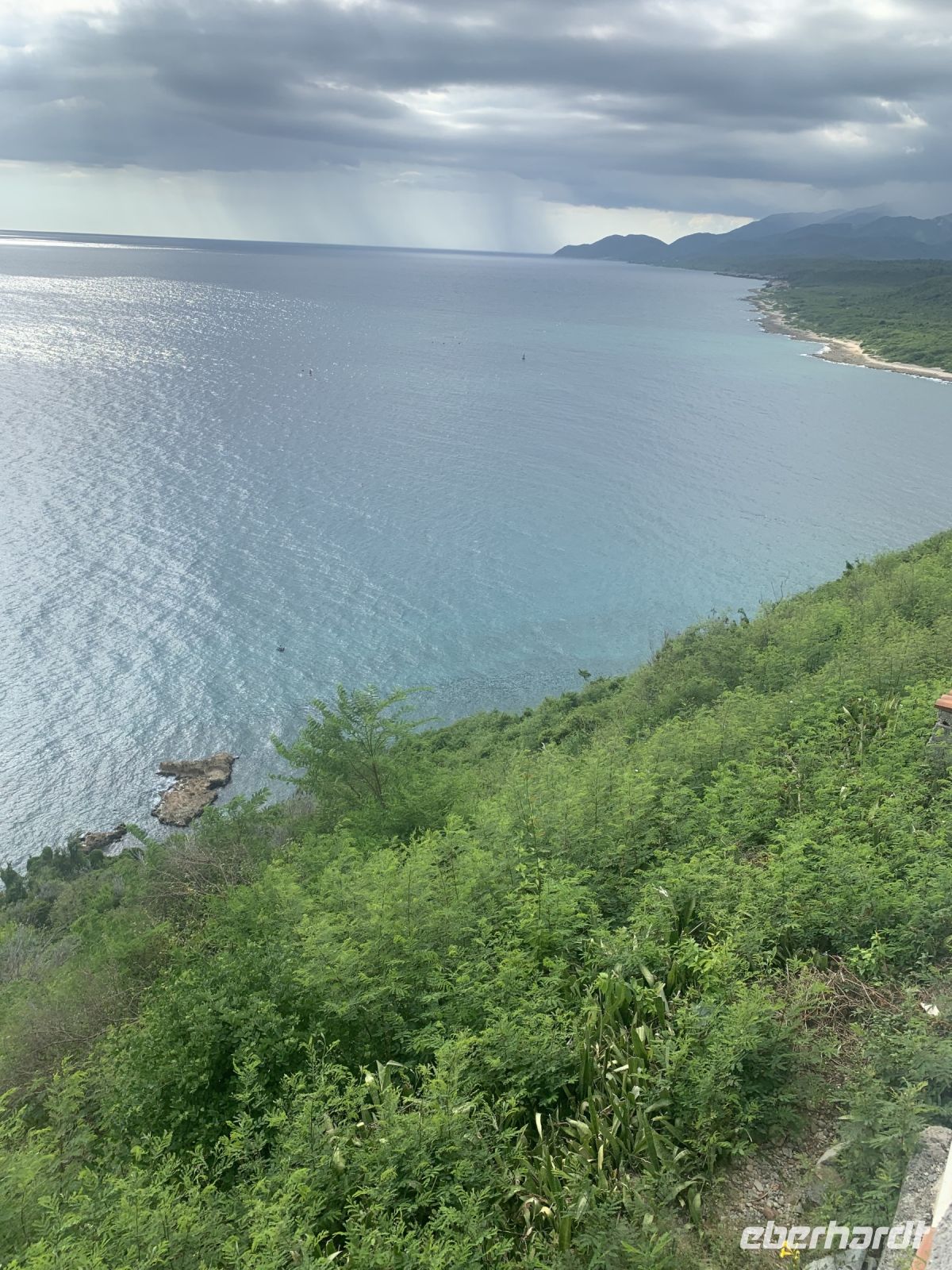 Für uns bedeutet der Halt in Guantanamo Mittagspause, in einem kleinen Restaurant essen wir und nehmen den ersten Drink auf das Wohl von Eberhardt und einen guten Verlauf unserer Reise. Nach Guantanamo wird die Reise landschaftlich sehr interessant - Trockengebiete mit vielen Kakteen ziehen sich bis an den Fuß des Gebirges hin. Dann wird es grüner und als wir die Bergstraße Farola hinauffahren, erinnert die Vegetation doch etwas an einen tropischen Regenwald.