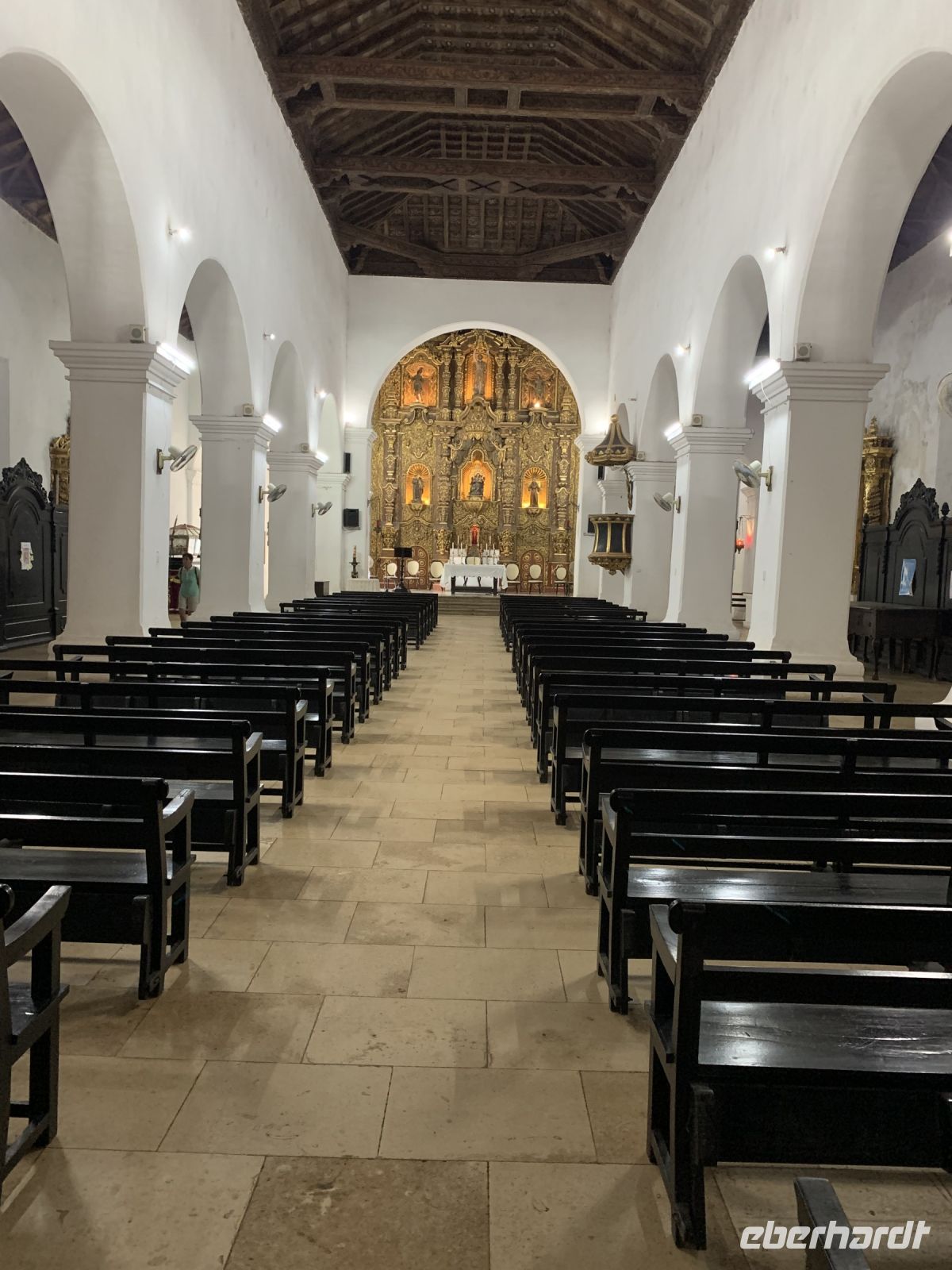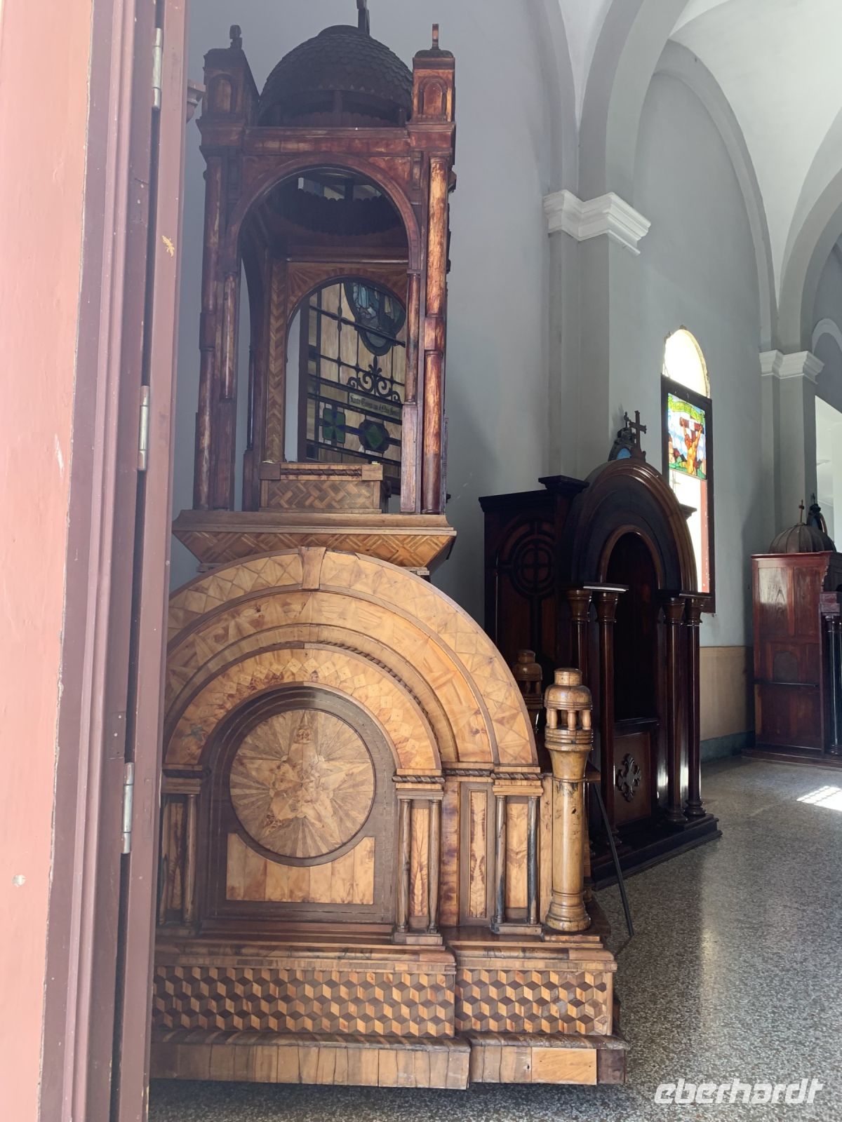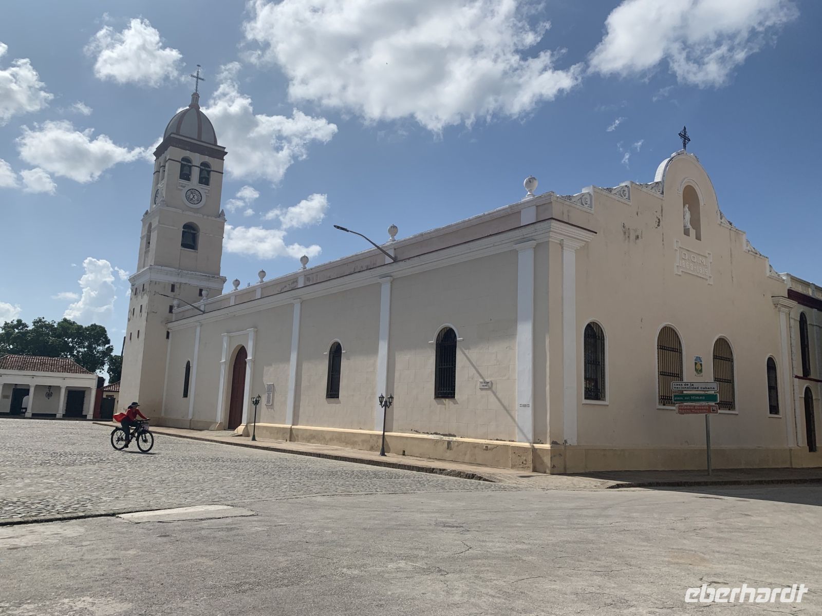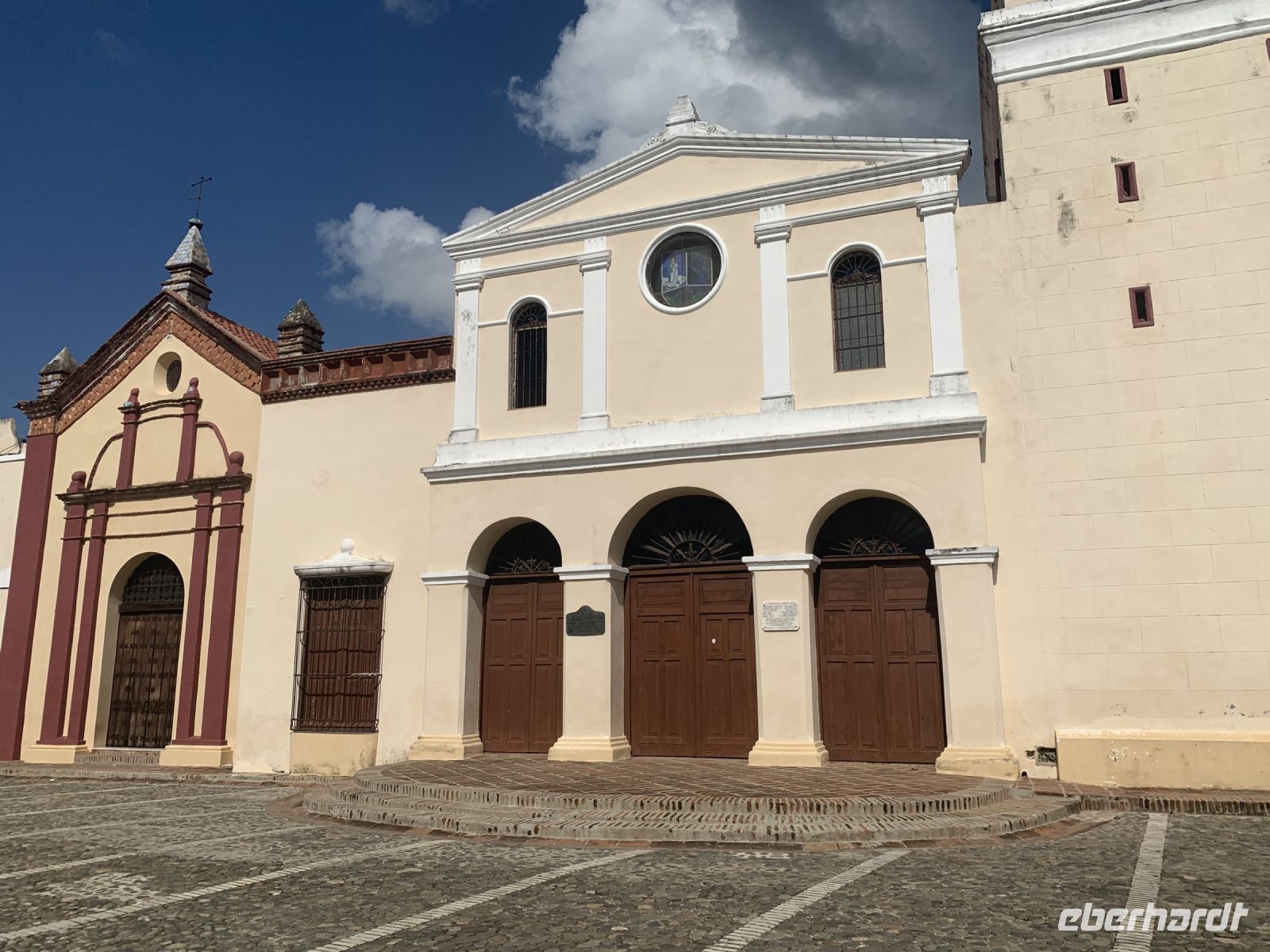 Wir sehen eine der ältesten Kirchen Kubas mit dem heiligen Salvator. Diese Figur wird besonders geschätzt, da sie als eine der wenigen das Feuer von 1869 überstand.