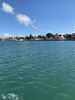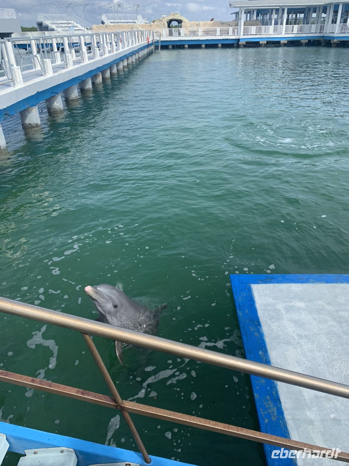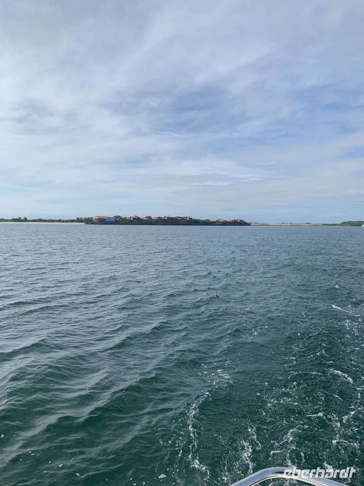 Pünktlich 9:00 Uhr werden wir zur Marina abgeholt, denn wir haben uns einen Katamaran gechartert. Das Wetter ist gut, kein Wind und ruhige See und so steigen wir ganz gelassen auf das Boot und fahren zuerst zu den Delfinen. Man kann mit ihnen schwimmen, aber die Tiere sind eingesperrt und die Betonwände sehen nicht sehr einladend aus. So fahren wir weiter in Richtung Schnorchelgebiet, kräftigen uns mit Brot und Tunfischpaste und dann geht es los. Mit Taucherbrille und Schnorchel bewaffnet gehen wir ins Wasser. Viele bunte Fische sind ganz nahe an der Oberfläche , sehr gut kann man sie beobachten.