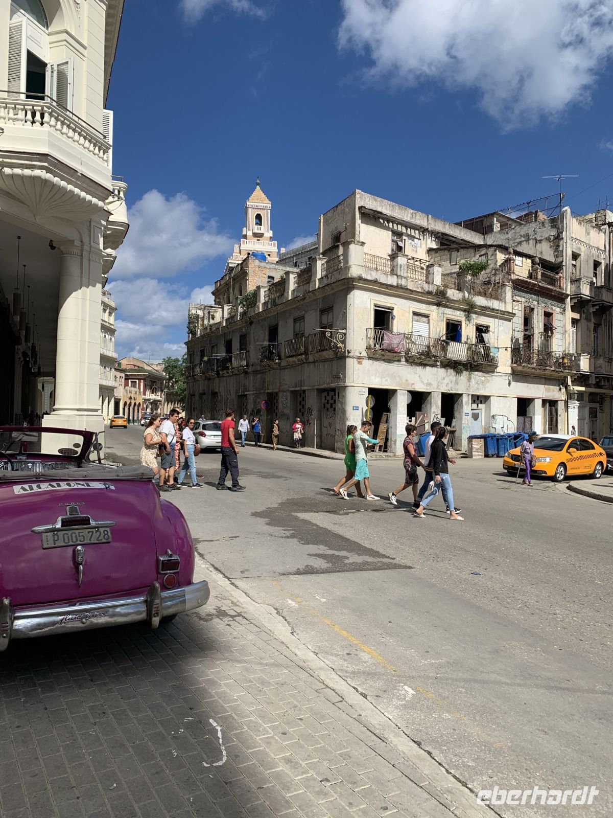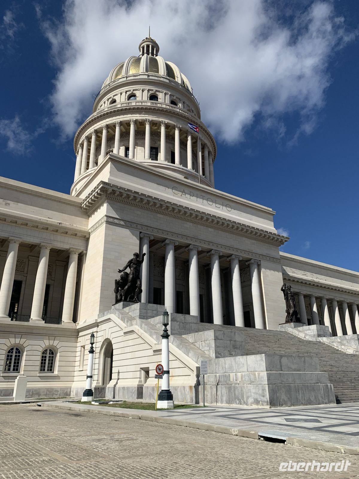 Mit dem Platz der Revolution und dem Capitolio wird es wieder diesseitiger und in der Altstadt bewundern wir die Kolonialbauten, zum Teil sehr schön restauriert. Ein anderer Teil wartet noch oder ist schon eingefallen, vor allem die Häuser in der Nähe des Meeres sind sehr renovierungsbedürftig.