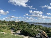 Durch das Gewimmel in der Straße Obispo wandern wir zum Restaurant "Mercaderes" und essen sehr gepflegt zu Mittag. 15:00 warten bereits die Oldtimer auf uns um durch Havanna zu brausen. Im offenen Wagen geht es den Malecon entlang durch den Hafentunnel zu Festung Castillo de los Tres Reyes del Morro. Ein wunderschöner Blick auf die Bucht und die Stadt bietet sich uns. Danach fahren wir in den hübschen Stadtteil Miramar, hier wohnten vor 1959 die reichen Bewohner Havannas, Farbige durften diesen Stadtteil nur zum Arbeiten betreten. Zum Glück sind diese Zeiten vorbei. Der Oldtimer-Ausflug endet mit einer Fahrt durch den Stadtwald, der mit seinen üppig gründenden Kletterpflanzen einen nahezu magischen Anblick bietet.