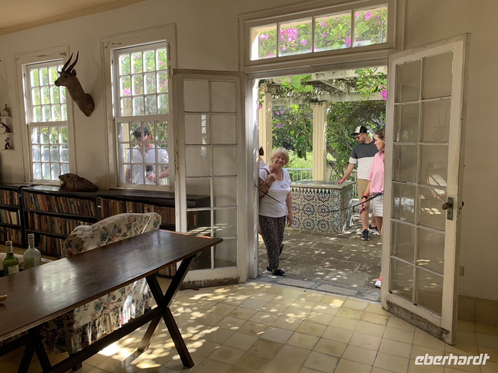 Da unser Flugzeug erst am Abend startet, nutzen wir den Tag noch für einen Ausflug zur Finca Vigia, in der Hemingway etliche Jahre seines Lebens verbrachte. 1940 erwarb er das Anwesen und lebte hier mit Unterbrechungen bis 1960. Seine vierte Frau Mary Welsh vermachte das Haus dem kubanischen Staat und nun ist es ein Museum und man könnte denken, der Hausherr ist noch da, alles sieht bewohnt und genutzt aus. Im großen