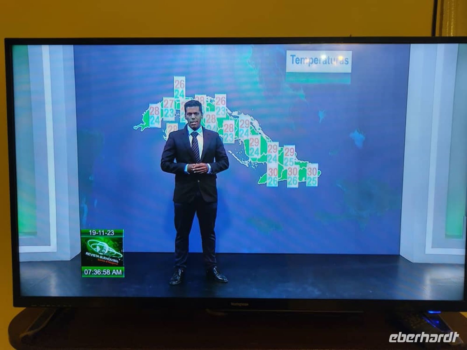 Am Abend fahren wir vom Hotel noch einmal in die Stadt und essen im Restaurant "La cocina de Ortiz" zu Abend. Es gibt Brotfruchtchips und Kürbissuppe, Fisch und Schwein mit Reis sowie Fruta bomba mit Käse. Es hat allen gut geschmeckt und nun hoffen wir zu Recht auf gutes Wetter.