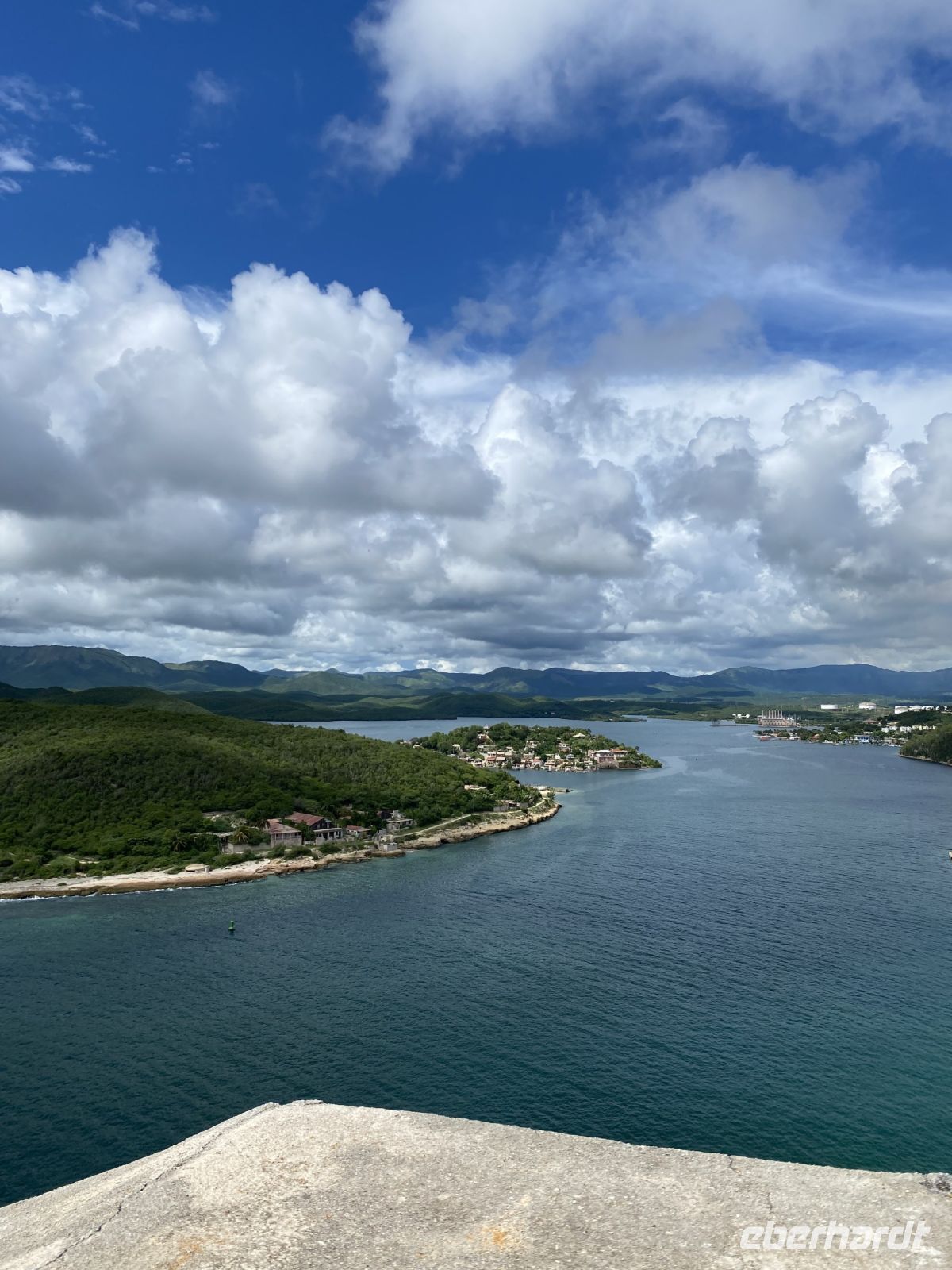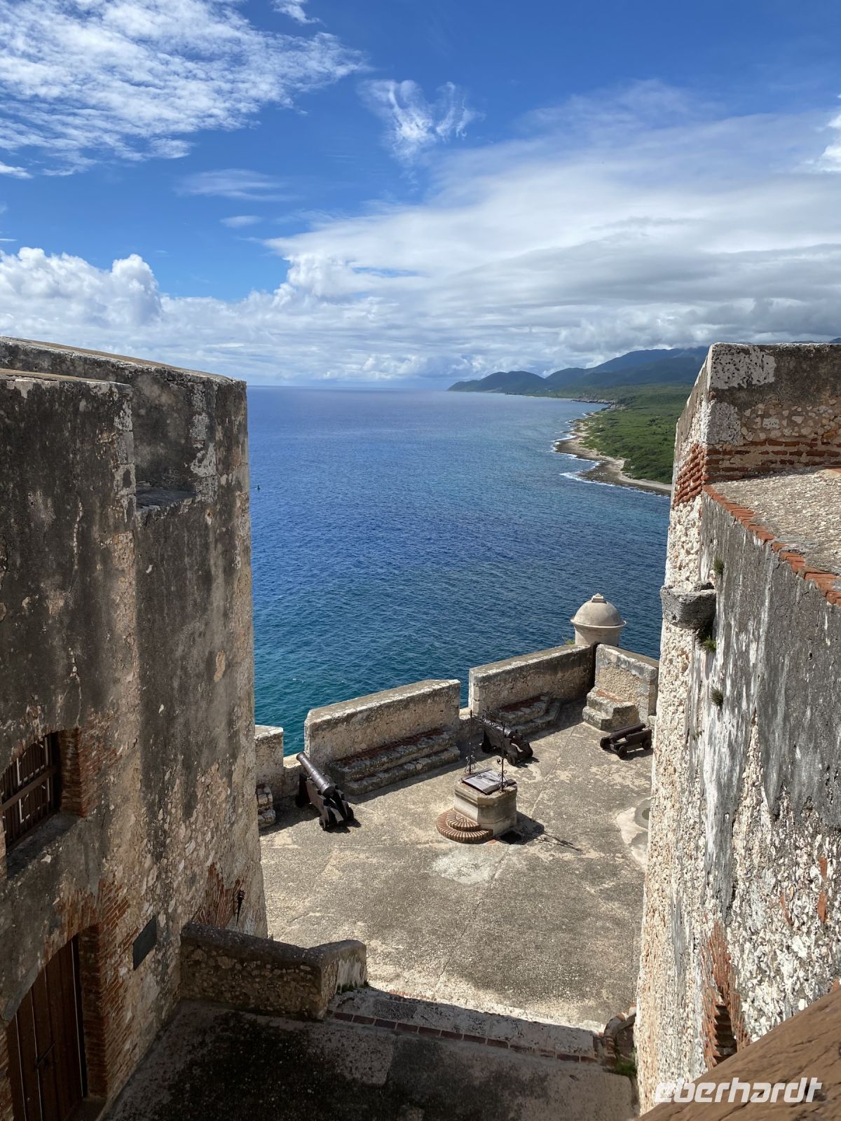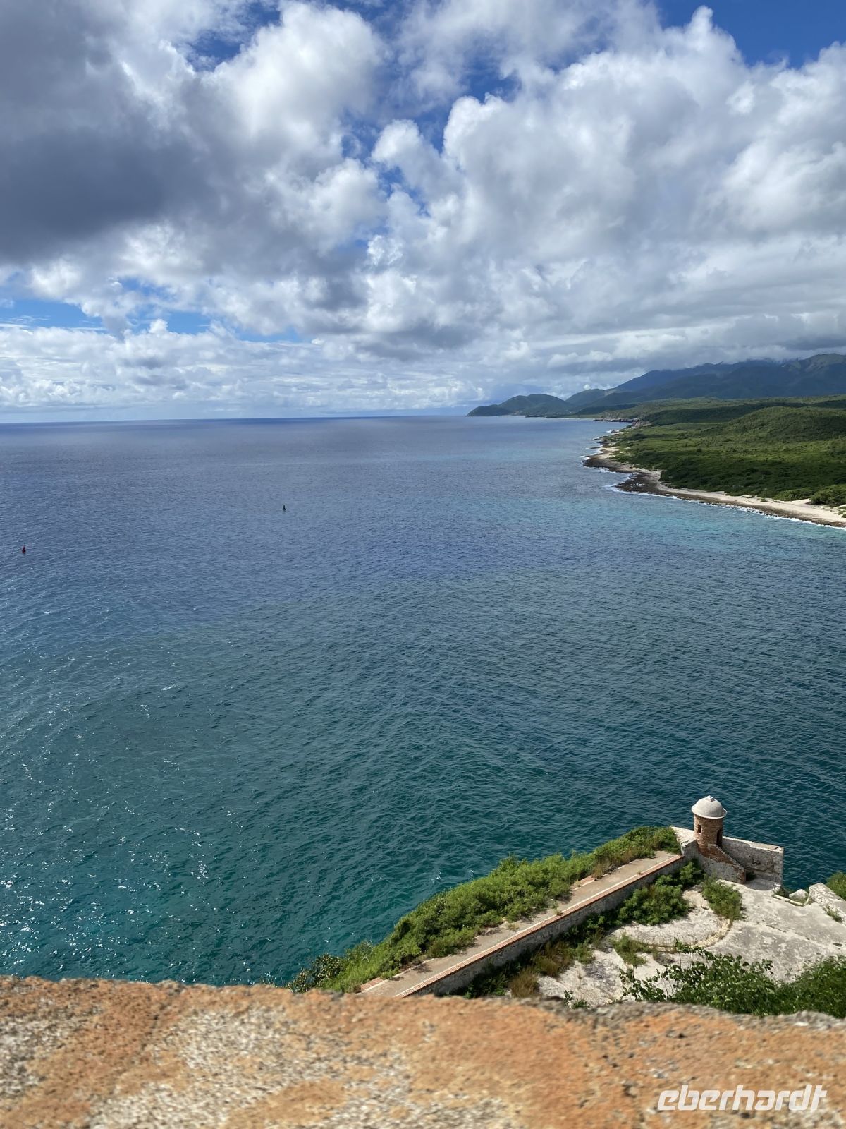 Mittags kommen wir gut in Santiago an und fahren sogleich zur Festung San Pedro de la Roca, kurz Morro genannt. Wir besehen die Festung, die sehr gut erhalten und gepflegt ist und erfahren etwas über die Piraten, welche die Festung trotz aller Wehrhaftigkeit im 17.Jahrhundert einnahmen und die Stadt plünderten. Seit 1978 ist die Festung Museum, neben der Geschichte der Piraterie ist auch die Seeschlacht von 1898 dargestellt, in der die Spanier vernichtend geschlagen wurden.