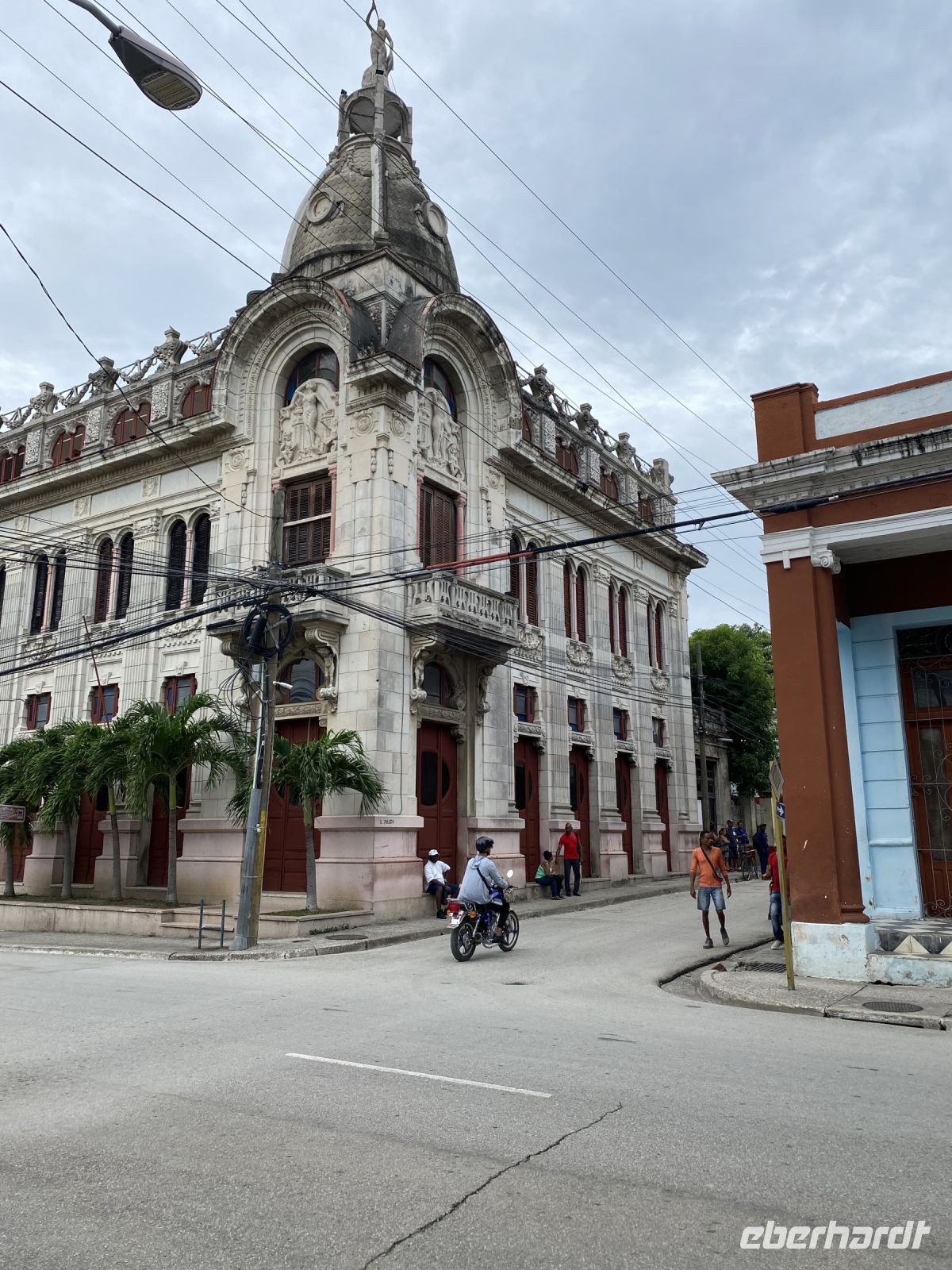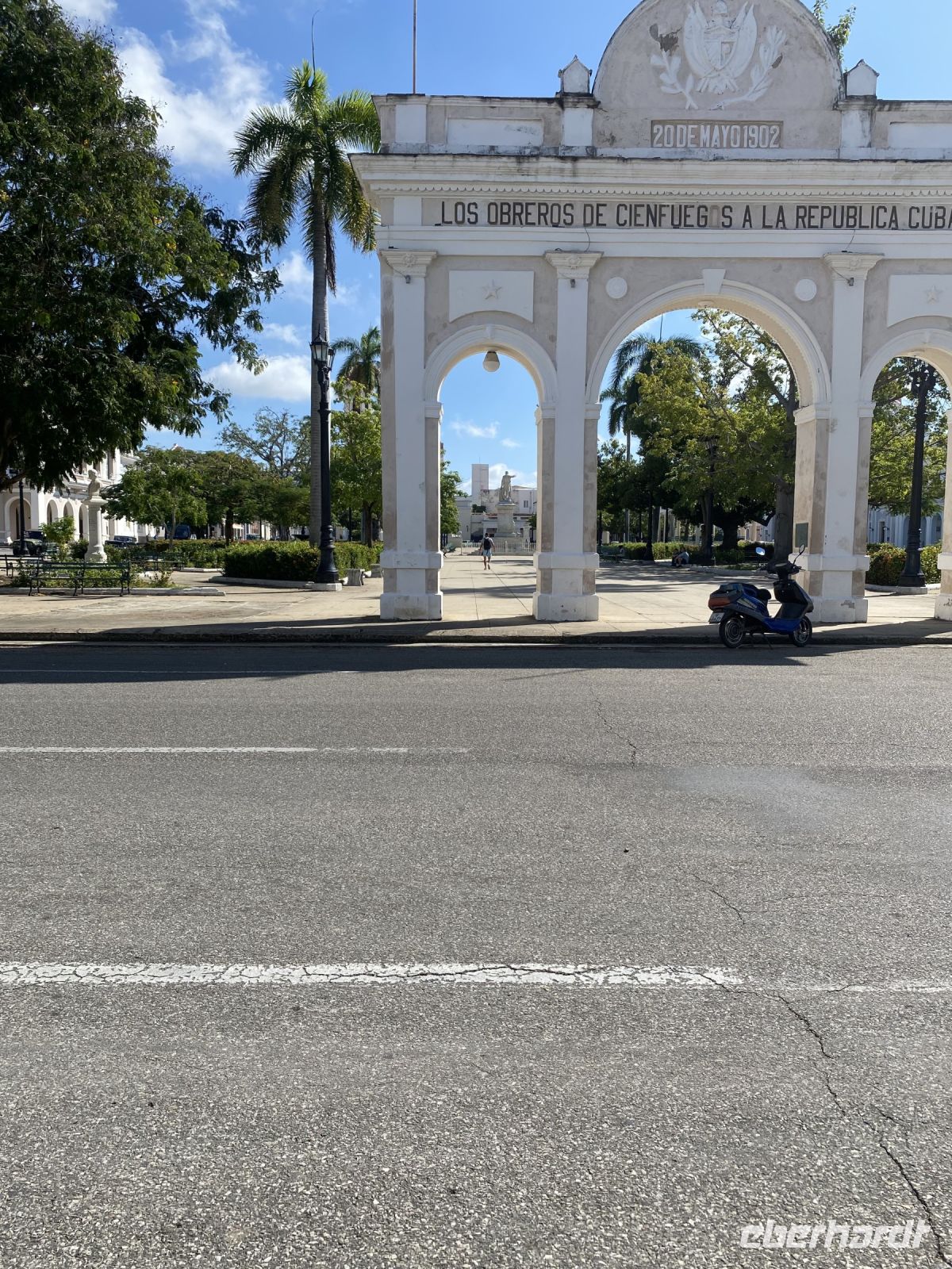 Wir starten um 9:00 Uhr zum Stadtrundgang in Cienfuegos, da ist es noch nicht ganz so heiß. Die Stadt wurde sehr planmäßig angelegt und hat, im Gegensatz zu Camagüey breite Straßen und einen schönen Boulevard. Kurz grüßen wir Benny Moré, dann geht es weiter durch die Fußgängerzone zum Hauptplatz mit dem Theater Thomas Terry, der Kathedrale Purisima Concepcion und der Provinzverwaltung. In der Mitte des Platzes findet man in den Boden eingelassen die Gründungsurkunde der Stadt. 1819 hatten französische Siedler die Stadt gegründet, sie wurde durch den Export von Zucker und Häuten reich, was man noch immer an schönen Palästen sehen kann.