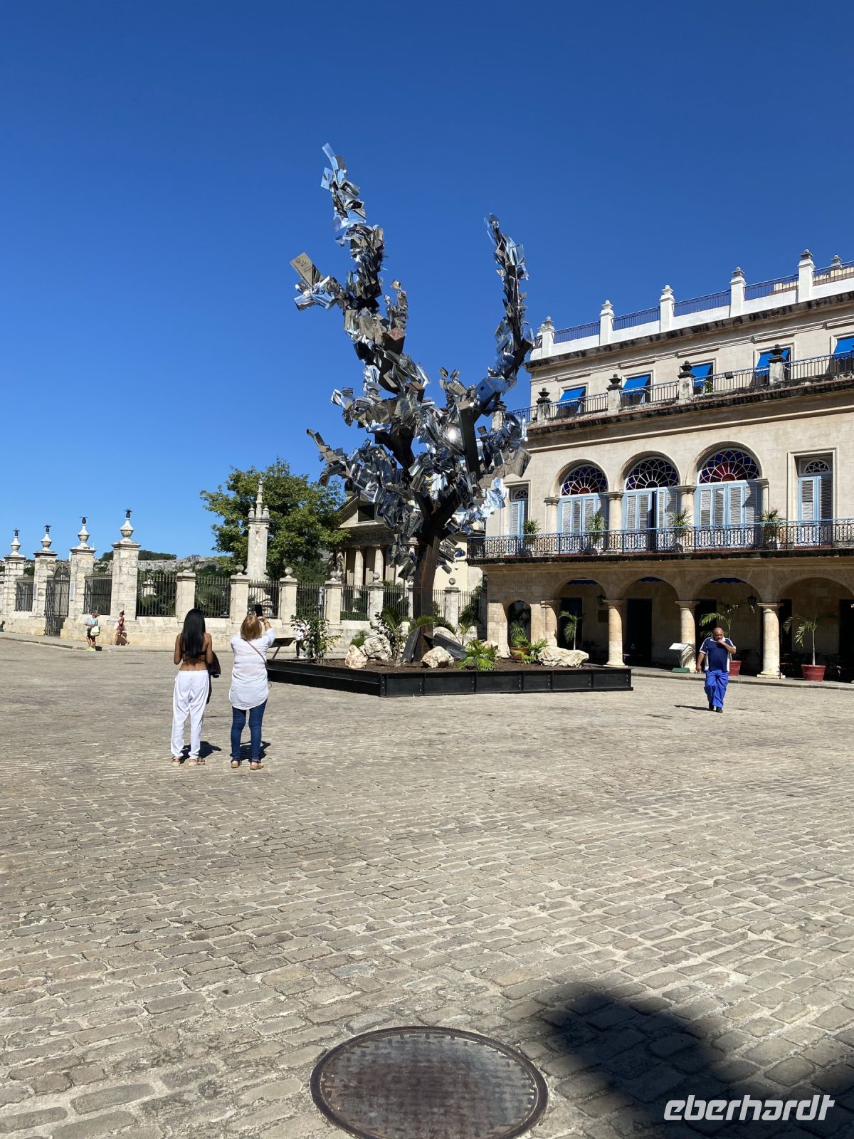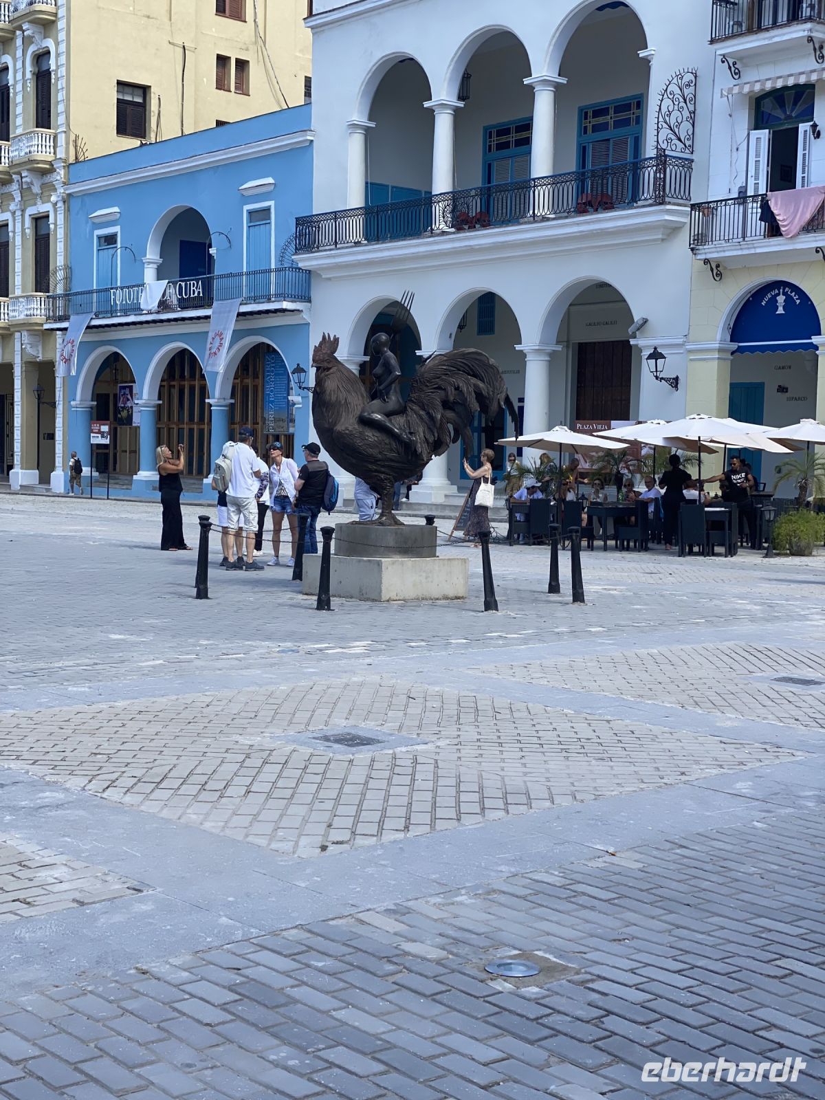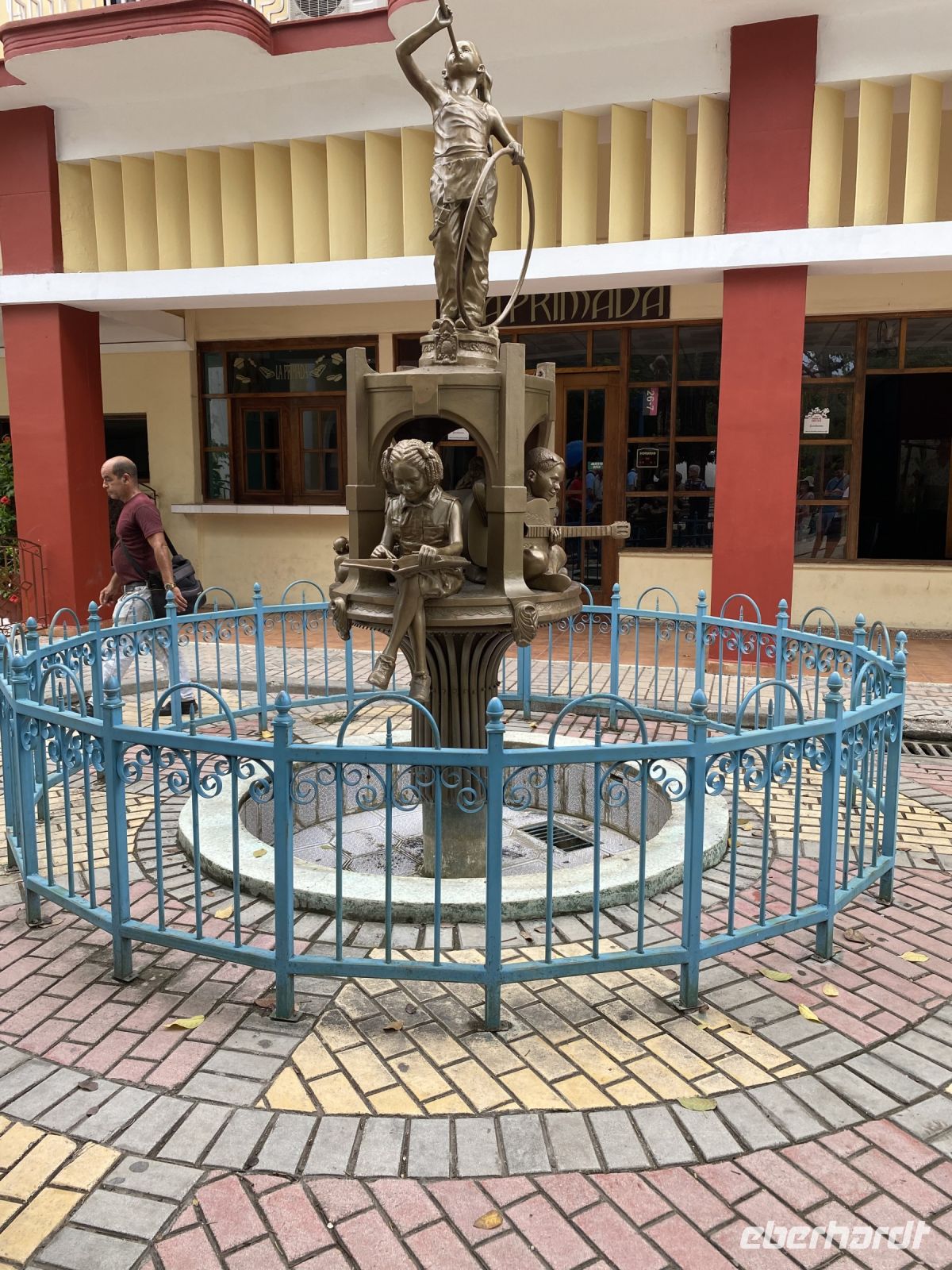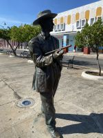 Wir bleiben noch etwas in Camagüey und starten 8:30 mit den Bicitaxis zur ökologischen Stadtrundfahrt. Mit den Fahrrädern können wir gut durch die engen verwinkelten Gassen fahren und so schauen wir uns ganz bequem drei schöne Plätze an - den Platz der Arbeiter mit dem Gesellschaftshaus und der Kirche Nuestra Senora de la Merced, den Platz Carmen auch mit einer gleichnamigen Kirche und hübschen Bronzefiguren, welche Typen aus dem täglichen Leben der Stadt darstellen. Die Figuren wurden von der Bildhauerin Martha Jimenez geschaffen, ihr Atelier befindet sich auch auf diesem Platz.