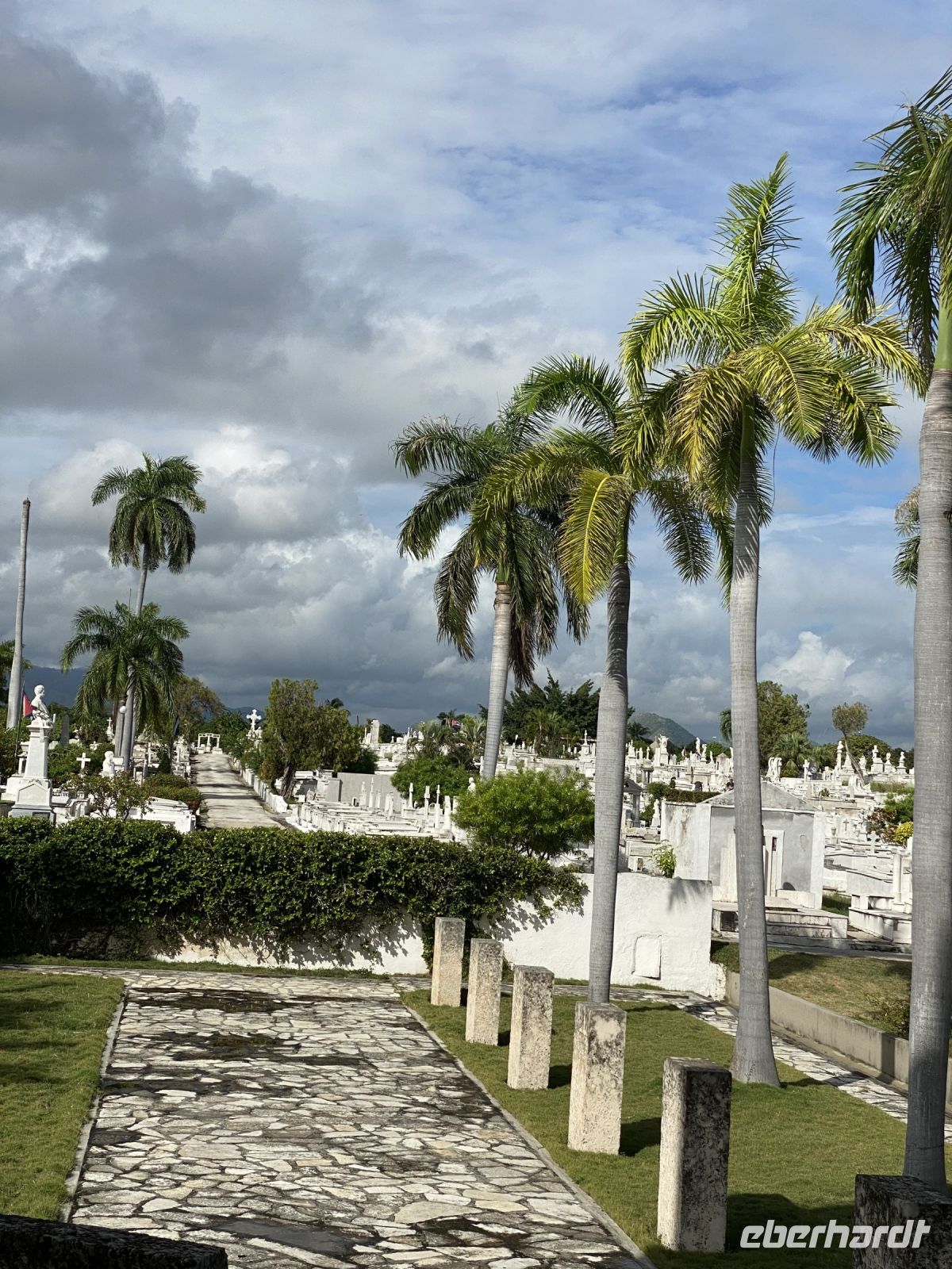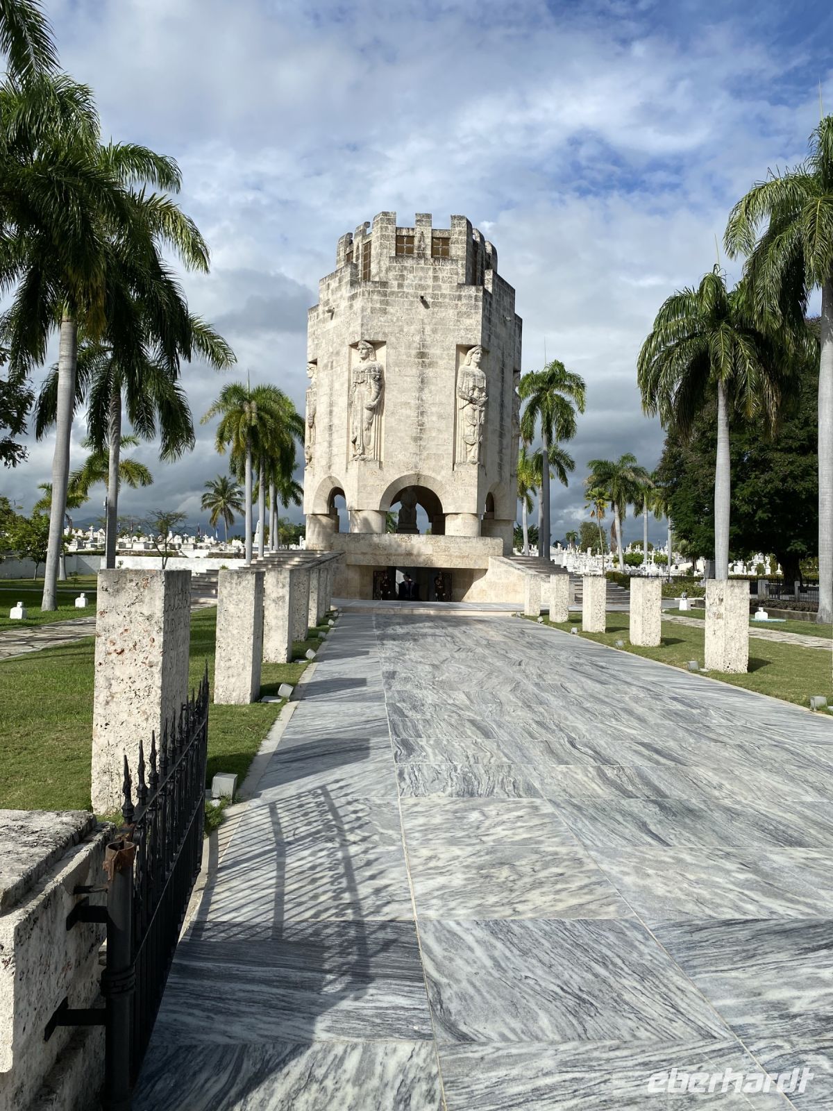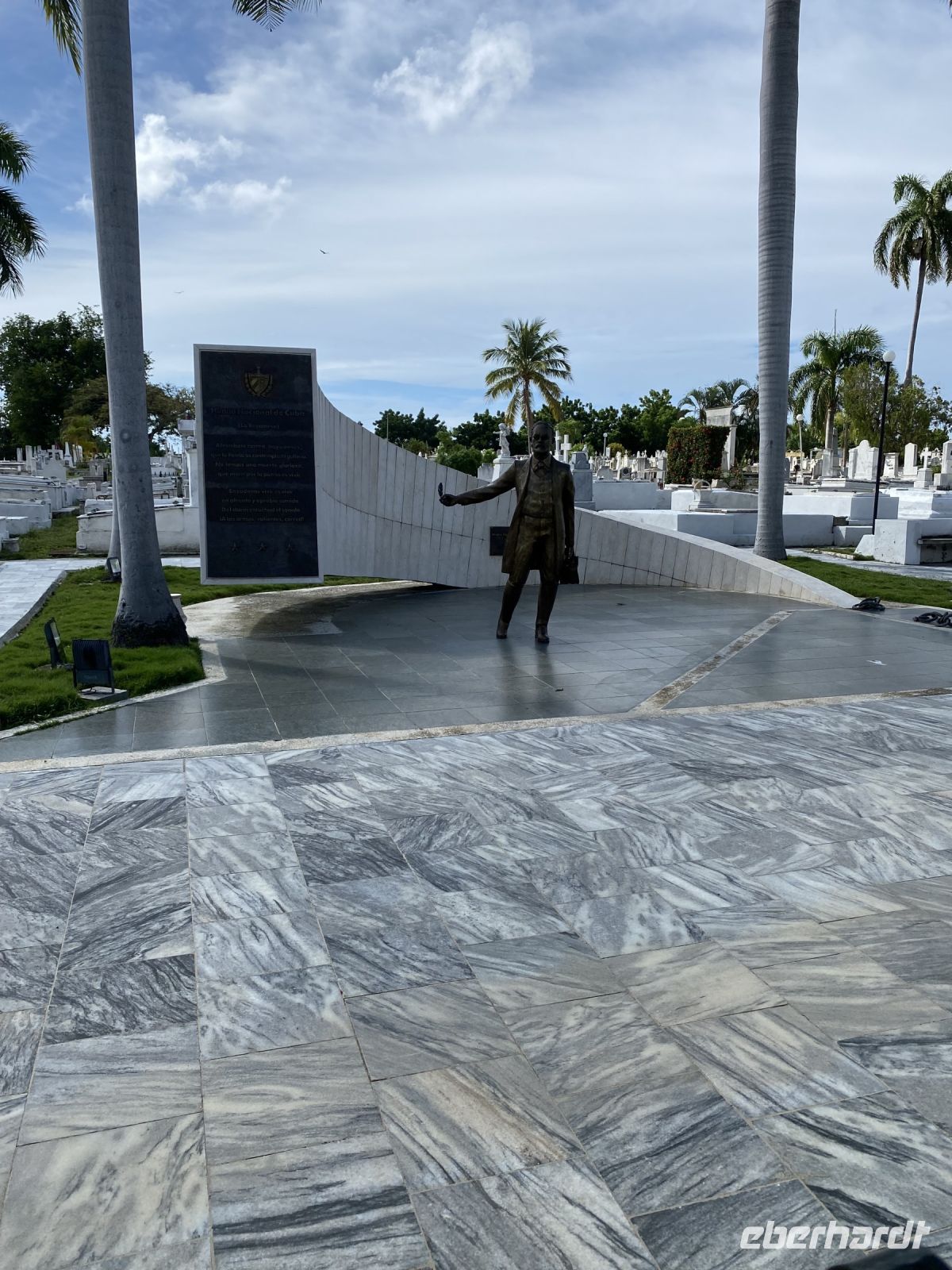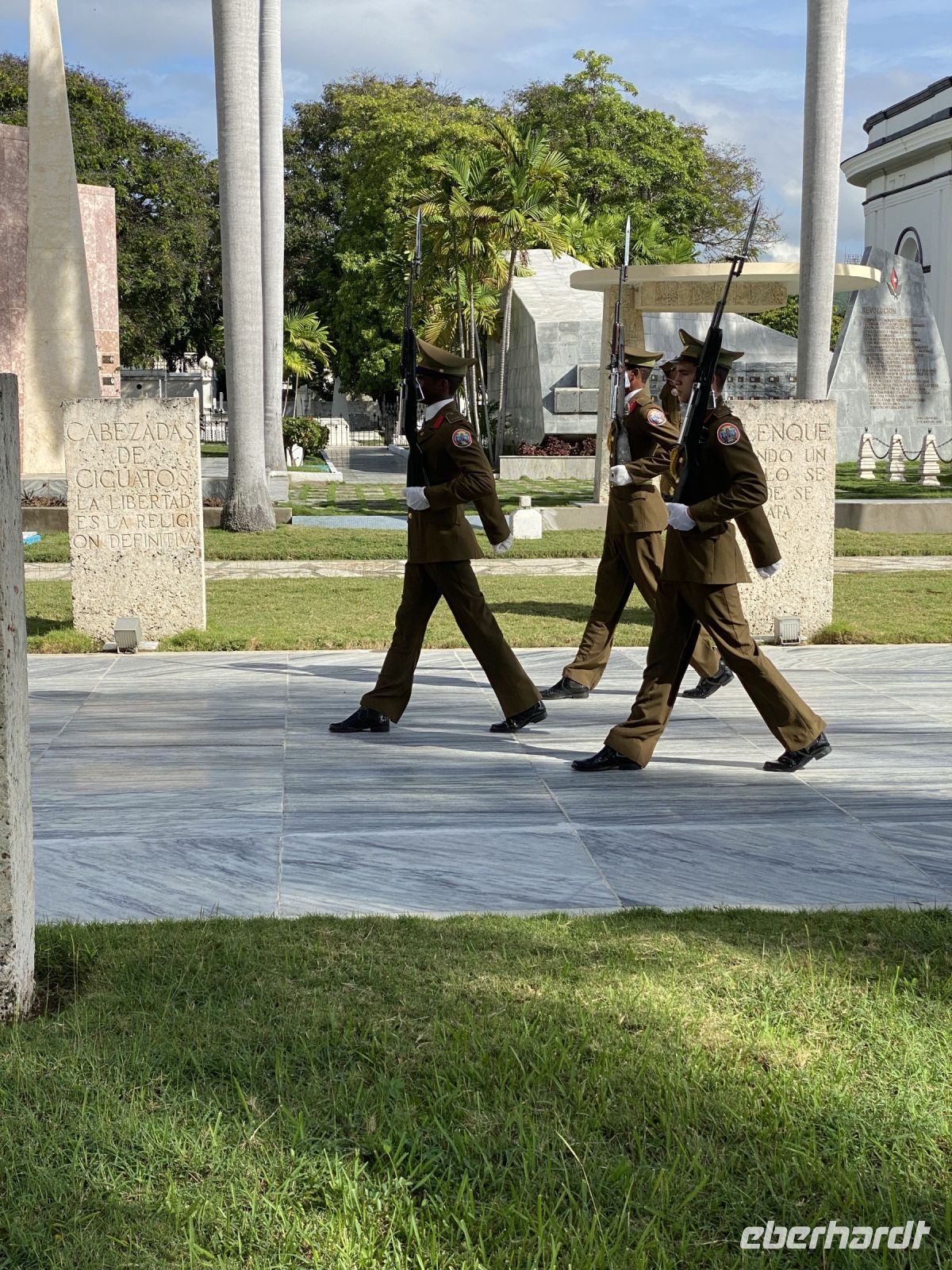 Wir gehen erst einmal im Lokal neben der Festung essen und danach kommt mit dem Friedhof Santa Ifigenia der nächste Programmpunkt. Da es etwas geregnet hatte, fand keine Wachablösung statt, so schauten wir uns nur die Gräber von Fidel Castro und seinen Mitkämpfern, das Monument für José Marti sowie die Gräber von Bacardi und Compay Segundo an. Danach gehen wir noch am Grab des ersten Präsidenten Kubas, Estrada Palma, des Vaters des Vaterlandes, Carlos Manuel de Cespedes und der mutigen Ehefrau des Generals Antonio Maceo vorbei..