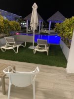 Heute Abend essen wir im Hotel und anschließen sitzen wir noch etwas auf der Dachterrasse und genießen den Ausblick.