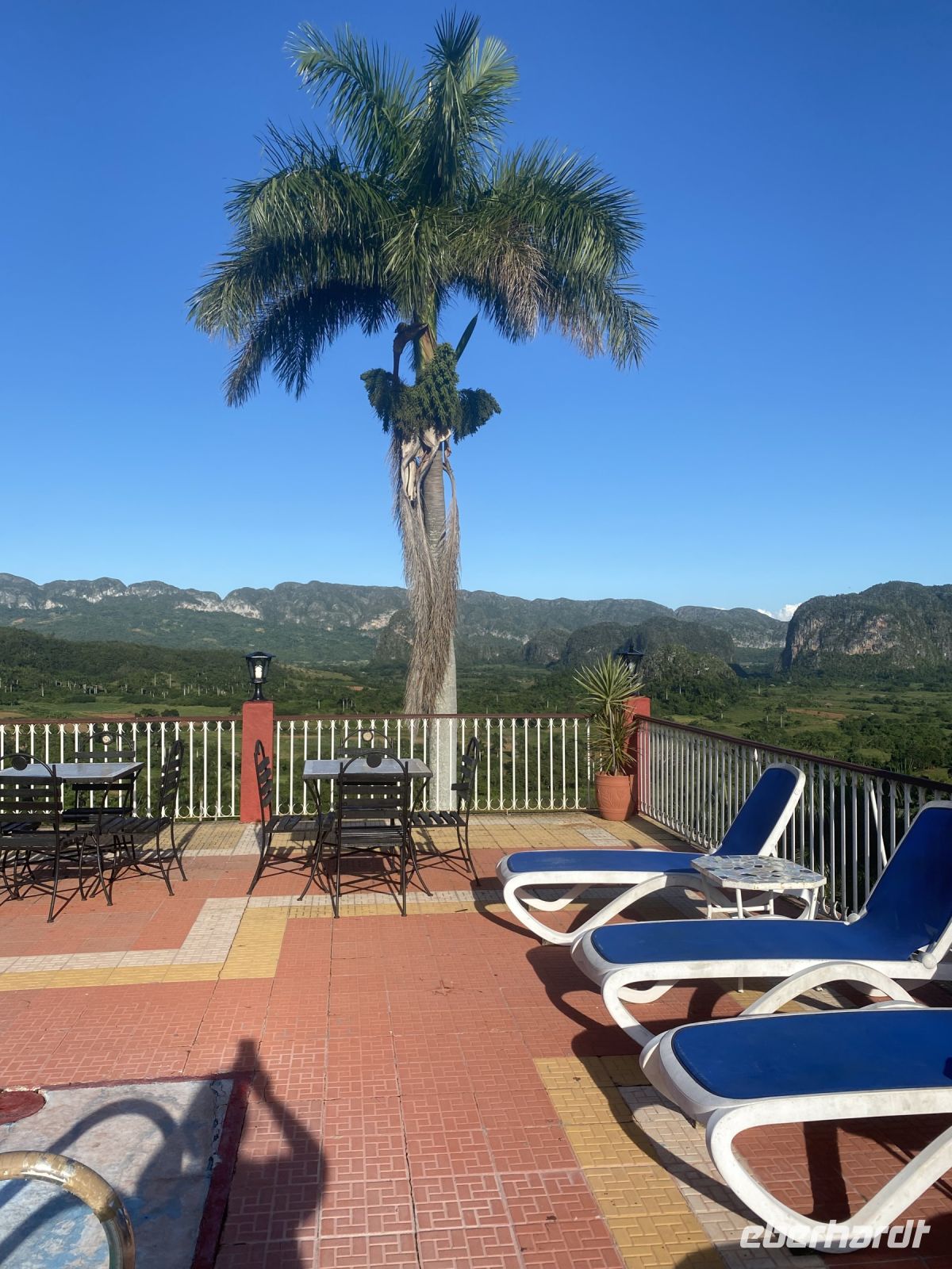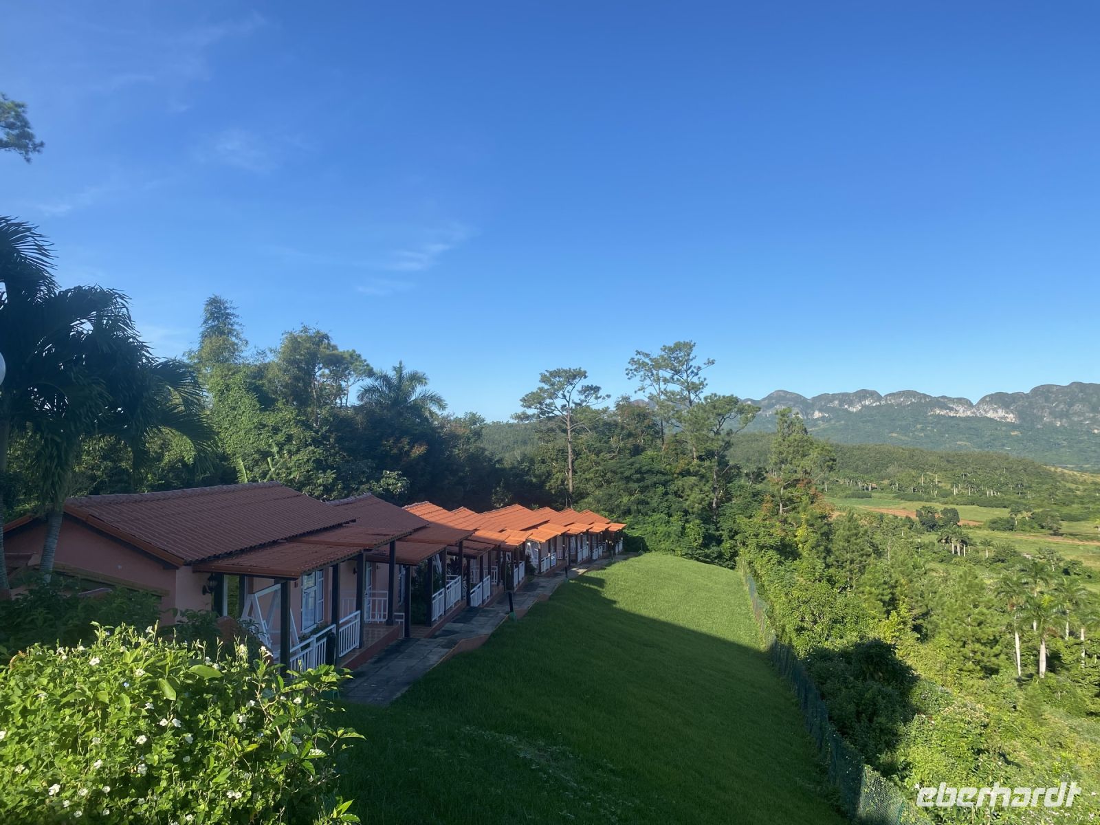 Um 9:00 Uhr starten wir und verlassen Cayo Santa Maria mit leisem Bedauern. Die Mittagspause haben wir in der Raststätte "Fiesta Campesina" bei km 142. Wir essen köstliche Sandwiches mit Hühnchen oder Spanferkel und trinken Zuckerrohsaft, bummeln ein wenig durch die hübsche Anlage und kaufen auch noch einige Souvenirs., in Havanna wird noch einmal getankt und dann geht es weiter bis zum Hotel "Los Jazmines" in Vinales. Wegen des Wirbelsturms Oskar können wir nicht wie geplant in Las Terrazas übernachten. Aber die zauberhafte Lage unseres Hotels entschädigt uns dafür - am Morgen erwachen wir inmitten der Landschaft der Mogotes.