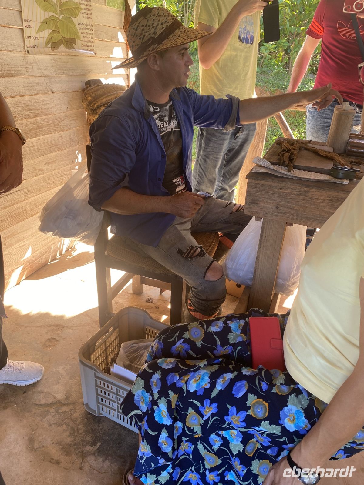 Nachdem wir uns noch einmal in aller Ruhe die Karstformation der Mogotes angeschaut haben, fahren wir zu einem Tabakbauern, der uns den Anbau und die Behandlung des Tabaks erklärt und natürlich auch eine Zigarre rollt und uns zum Proberauchen anbietet.