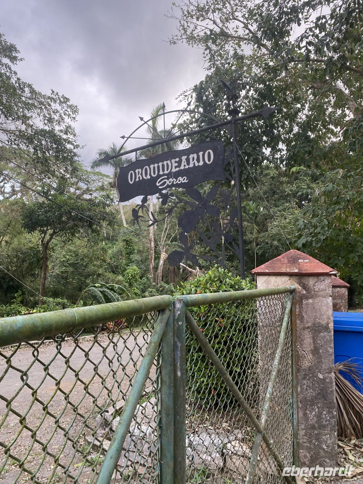 In Puerta de Golpe schauen wir kurz das soziale Projekt von Pelegrin an, er gibt auf seinem Grundstück alt und jung die Möglichkeit einer sinnvollen Betätigung. Dies kann Arbeit im Garten sein, aber auch Töpfern, Malen, Basteln und ähnliches. Wir sehen die Kinder, die mit großem Eifer Samenkapseln bemalen und geben eine kleine Spende sowie einige Hefte und Malutensilien für die Kinder. Natürlich müssen wir noch einen Kaffee trinken und Kokosplätzchen essen, dann geht es weiter zum Orchideengarten in Soroa. Der Garten ist eigentlich ein Park, den der Rechtsanwalt Camacho anlegt und im Andenken an seine früh verstorbene Tochter Pinilla mit vielen Orchideen schmückte. Der kürzlich hindurchgezogene Wirbelsturm hat allerhand Bäume geknickt und die Stauden durcheinandergewirbelt, aber die Schönheit des Gartens war dennoch sichtbar und es entstanden viele schöne Fotos.