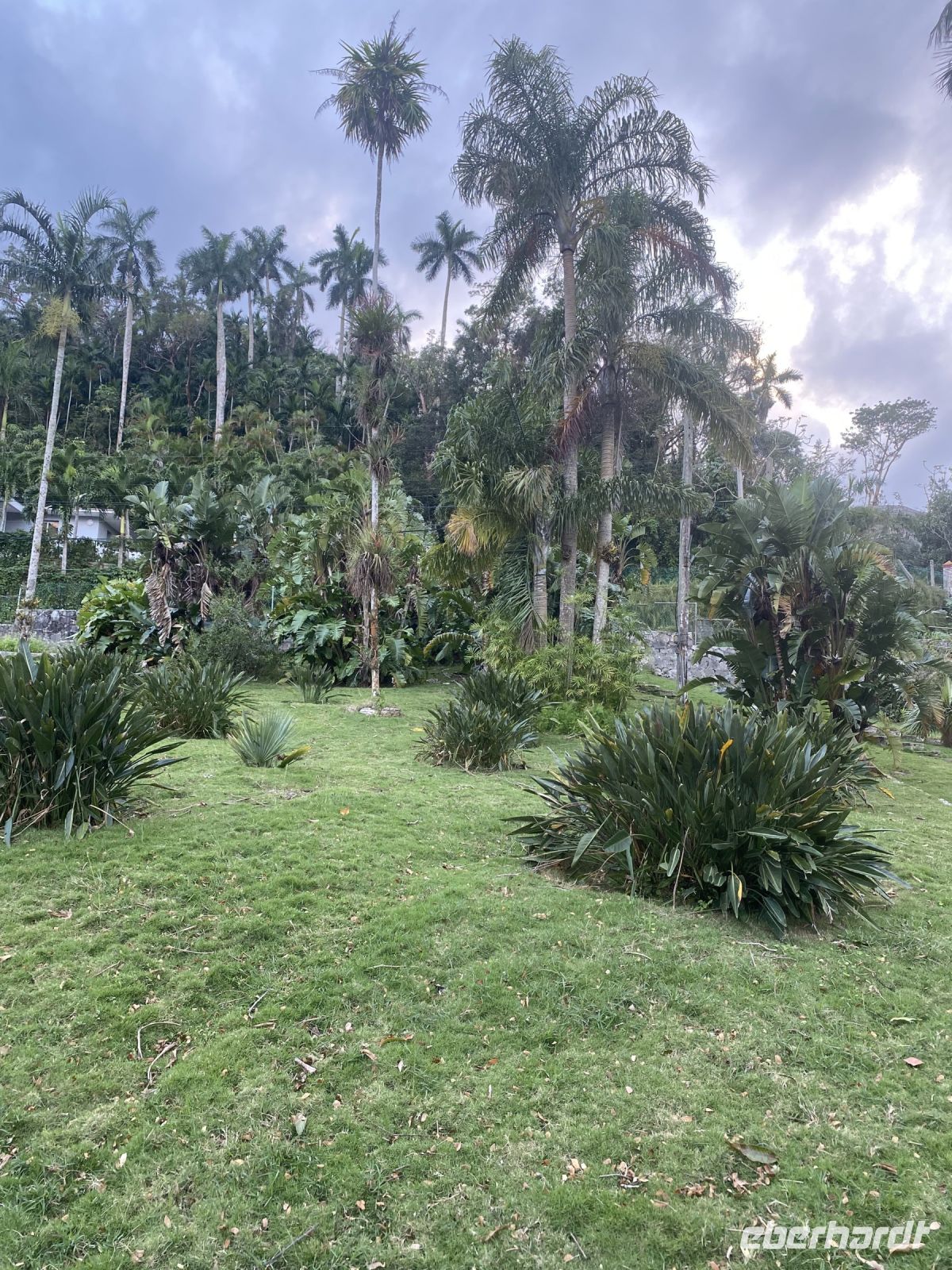 Wir haben nun einen tag mehr für Santiago de Cuba, darüber sind wir nicht böse, haben wir doch nun Zeit, uns endlich einmal in Ruhe die Wachablösung auf dem Friedhof anzusehen. Nachdem wir bei gutem Wetter der Zeremonie zugesehen haben, fahren wir zunächst mit dem Bus bis zum Botanischen Garten des Gran Piedra, wir bummeln durch den Gaten und freuen uns an den zahlreichen blühenden Stauden wie die Alpinie, die Helikonie und die Anthurie. Nach dieser leichten Übung folgt der Aufstieg bis hinauf auf den großen Stein, die Gruppe schafft dies gut und stolz stehen wir alle oben. Die Sicht ist nicht sehr gut, wir sind etwas eingesponnen in den Wolken, aber interessant war es auf alle Fälle. Nach dem Abstieg winkt uns ein gutes Mittagessen und so gestärkt wandern wir zur Finca Isabelica, heute ein Museum des Kaffeeanbaus in den Bergen. Die Straße ist recht schlammig und ab und zu regnet es, aber wir erreichen die Finca, heute Weltkulturerbe der UNESCO. Mit den Sklavenaufständen in Haiti Ende des 18. Jahrhunderts entstand eine Fluchtbewegung der französischen Kaffeepflanzer in Richtung Kuba. Sie brachten die Kultur des Kaffeeanbaus und auch ihre Sklaven mit nach Kuba. Die Plantage ist sehr gut erhalten, man sieht das Wohnhaus, Reste der Sklavenbehausungen, Bewässerungsanlagen, Aquädukte, Zisternen, Trockenplätze, Mühlen und Röstereien.