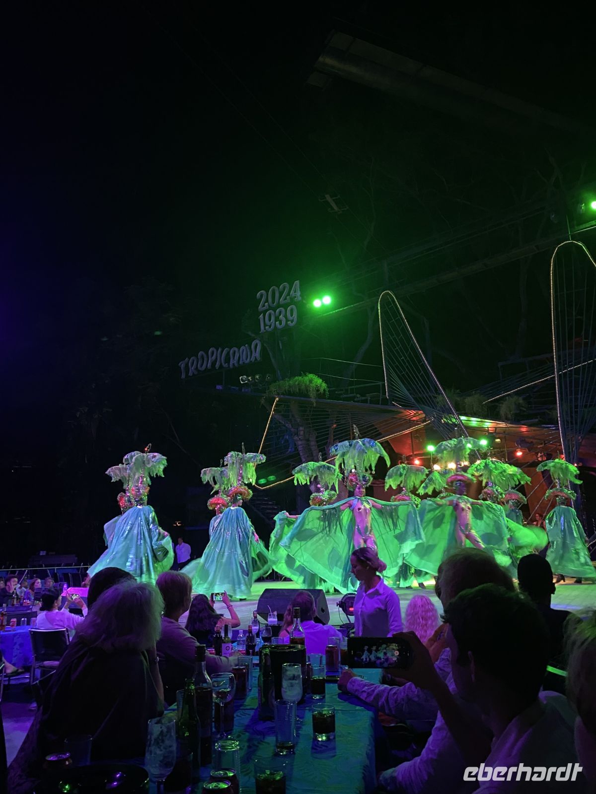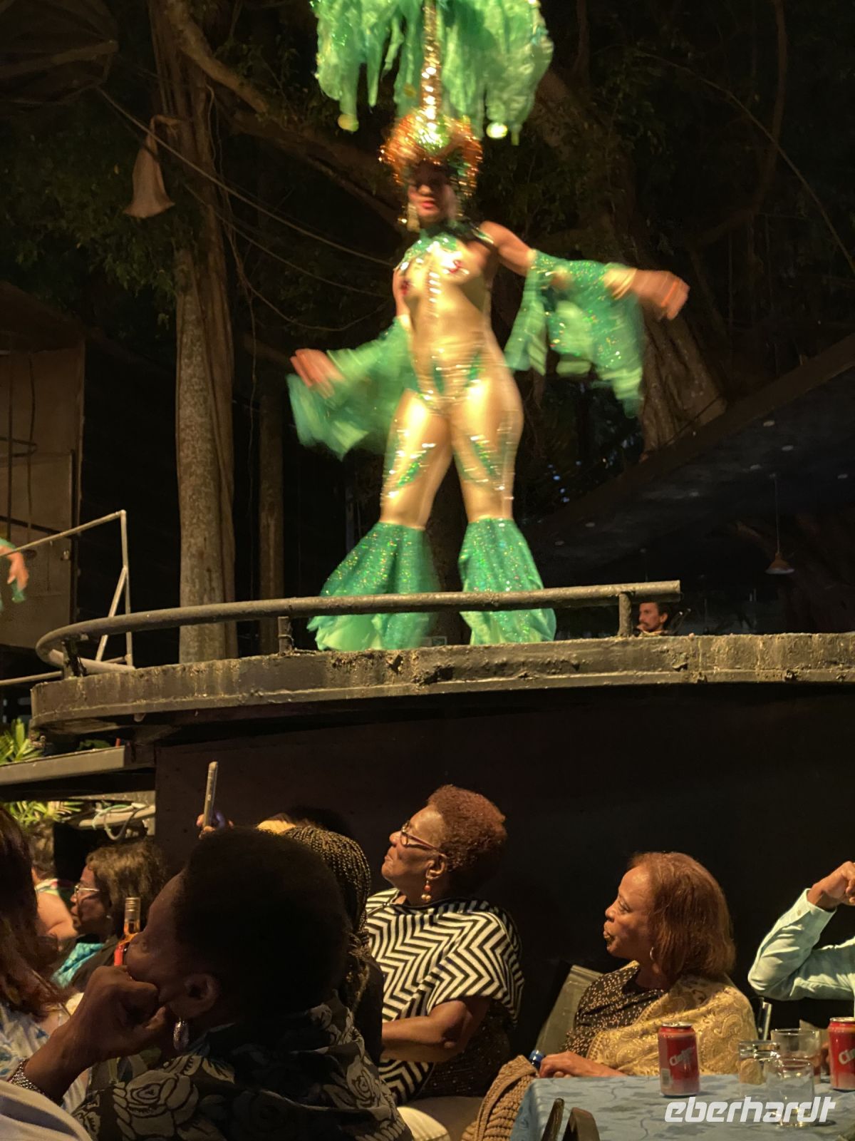 Vom Friedhof aus wandern wir durch die Altstadt in Richtung Restaurant Mercaderes, wo wir uns in interessanter Umgebung mit einem guten Essen für weitere Unternehmungen wappnen. Diese lassen nicht lange auf sich warten: 6 Oldtimer stehen bereit, uns auf eine Fahrt durch Havanna mitzunehmen. Fröhlich fahren wir den Malecon entlang, durch den Stadtpark und durch den Hafentunnel hinauf zur Festung. Pünktlich 17:00 Uhr sind wir wieder im Hotel, können uns etwas erfrischen und gehen zum Abendessen in das Gartenlokal "Jardin de los Milagros". Damit ist der Abend aber noch nicht zu Ende, denn wir haben Karten für die Show im "Tropicana". Das Ensemble besteht seit 1937 und hat eine außergewöhnliche Spielstätte unter freiem Himmel, gesäumt von Palmen. Mit viel Licht und bunten Kostümen beeindruckt die Show die Besucher und Mitternacht gehen wir zufrieden zurück in unser Hotel.