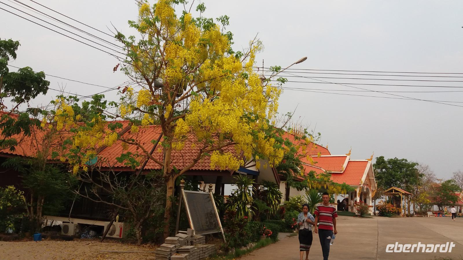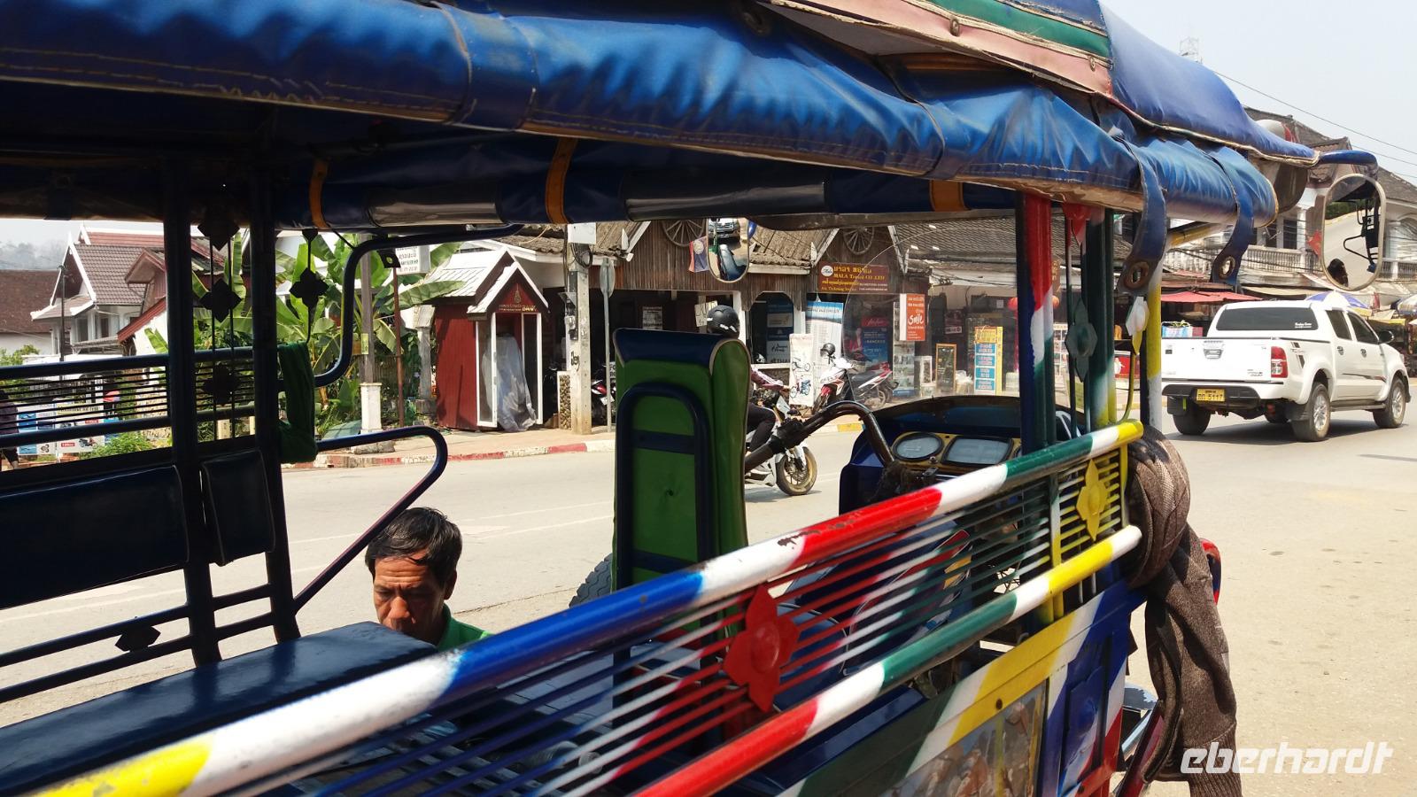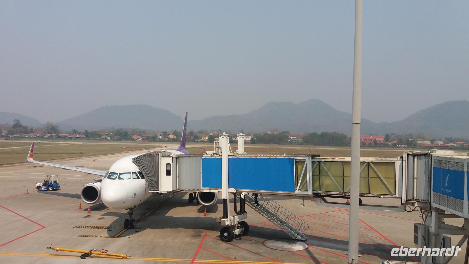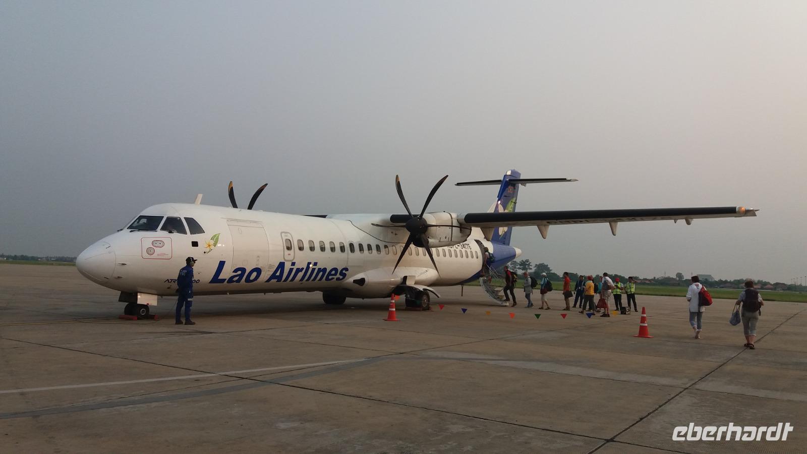 nach Laos ist etwas aufwendiger, denn man muss zunächst nach Bangkok fliegen, bevor es weiter nach Laos geht. Aber alles funktionierte tadellos, und so landeten wir fast pünktlich in Laos auf dem Flughafen von Luang Prabang, wo uns bereits unser Guide Khamchang erwartete. Er begrüßte uns herzlich in seinem Land und begleitete uns zum