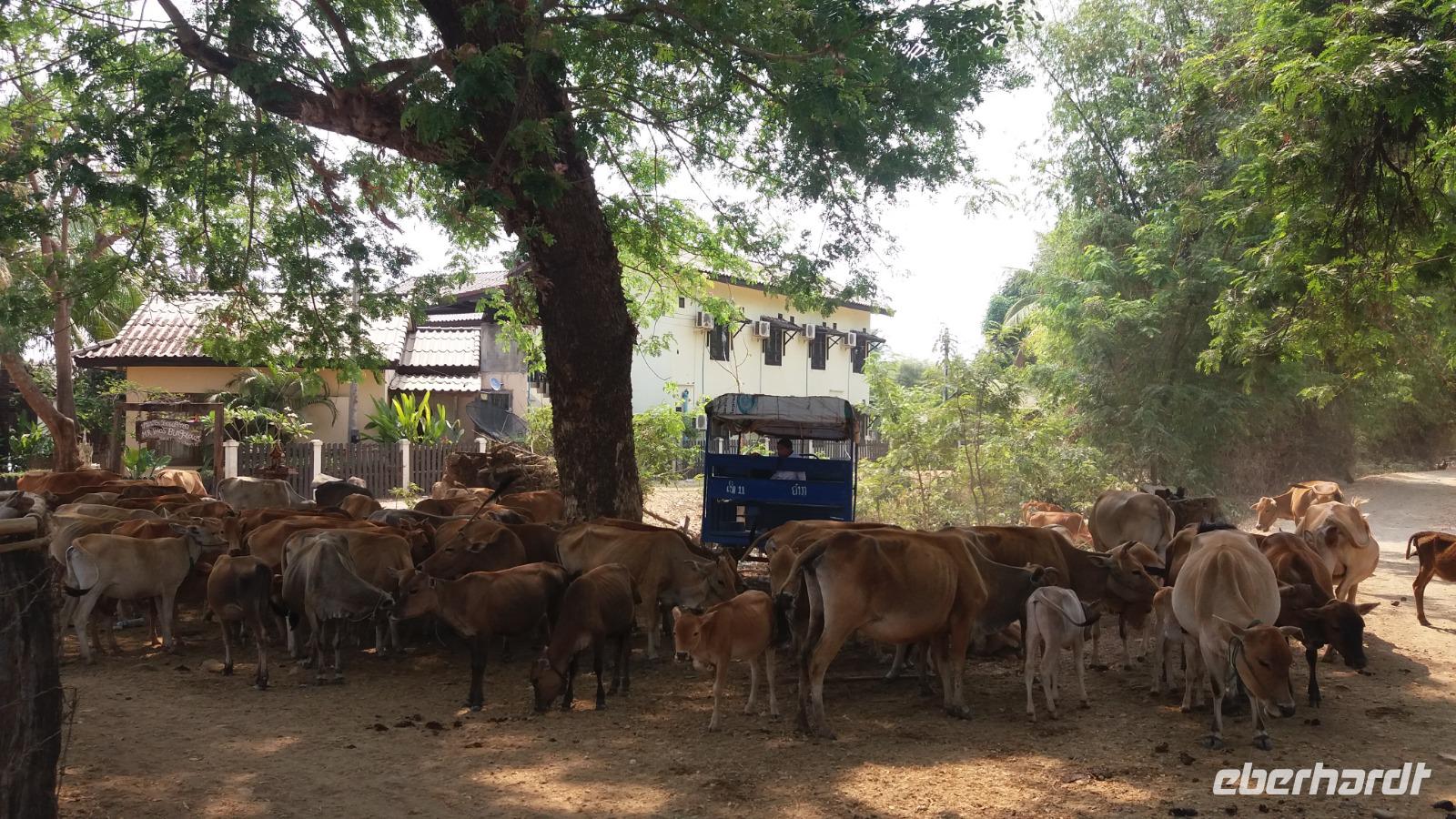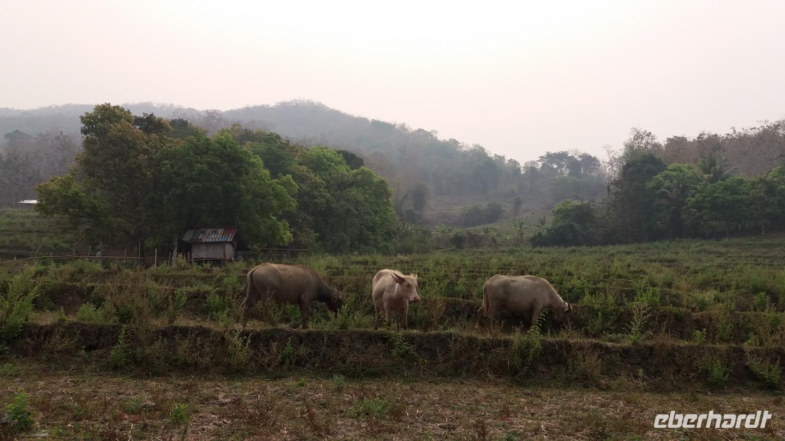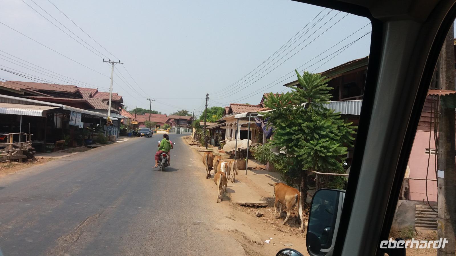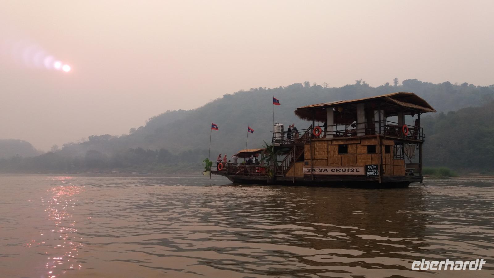nach Laos ist etwas aufwendiger, denn man muss zunächst nach Bangkok fliegen, bevor es weiter nach Laos geht. Aber alles funktionierte tadellos, und so landeten wir fast pünktlich in Laos auf dem Flughafen von Luang Prabang, wo uns bereits unser Guide Khamchang erwartete. Er begrüßte uns herzlich in seinem Land und begleitete uns zum