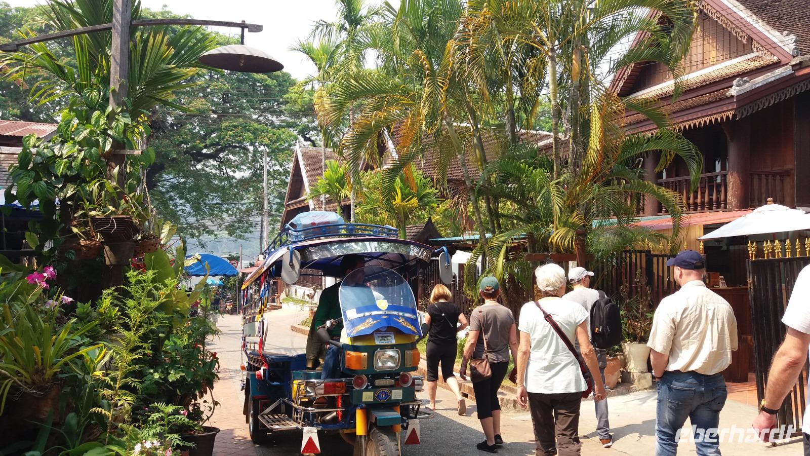 Der nächste Tag begann recht entspannt mit einem überaus leckeren Frühstück aus überwiegend asiatischen Speisen, sehr liebevoll angerichtet, unter freiem Himmel am Teich sitzend, einfach ein Genuss. So gestärkt erkundeten wir zusammen mit Khamchang Luang Prabang. Wir nutzen ein TUK TUK und kamen so bequem von A nach B. Wir starteten mit dem
