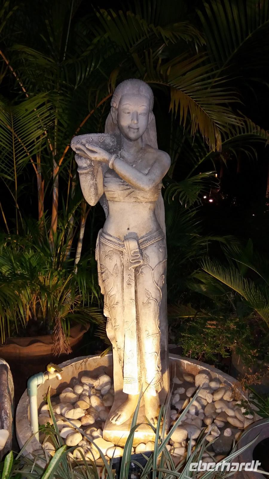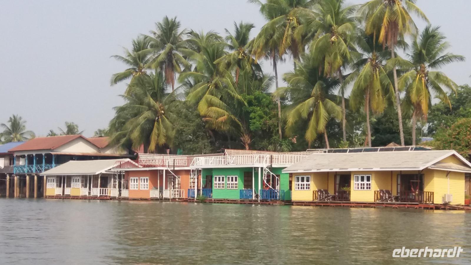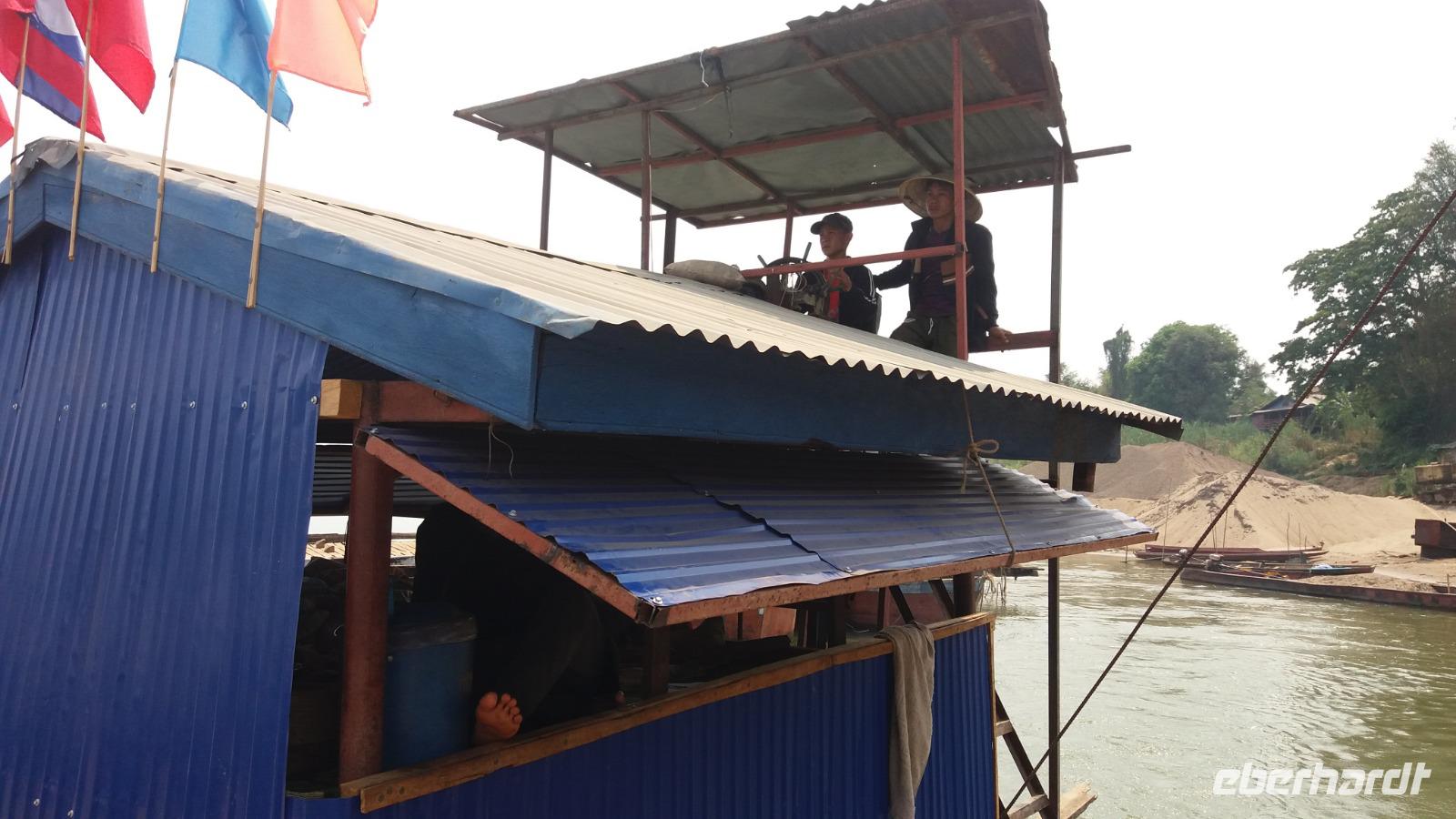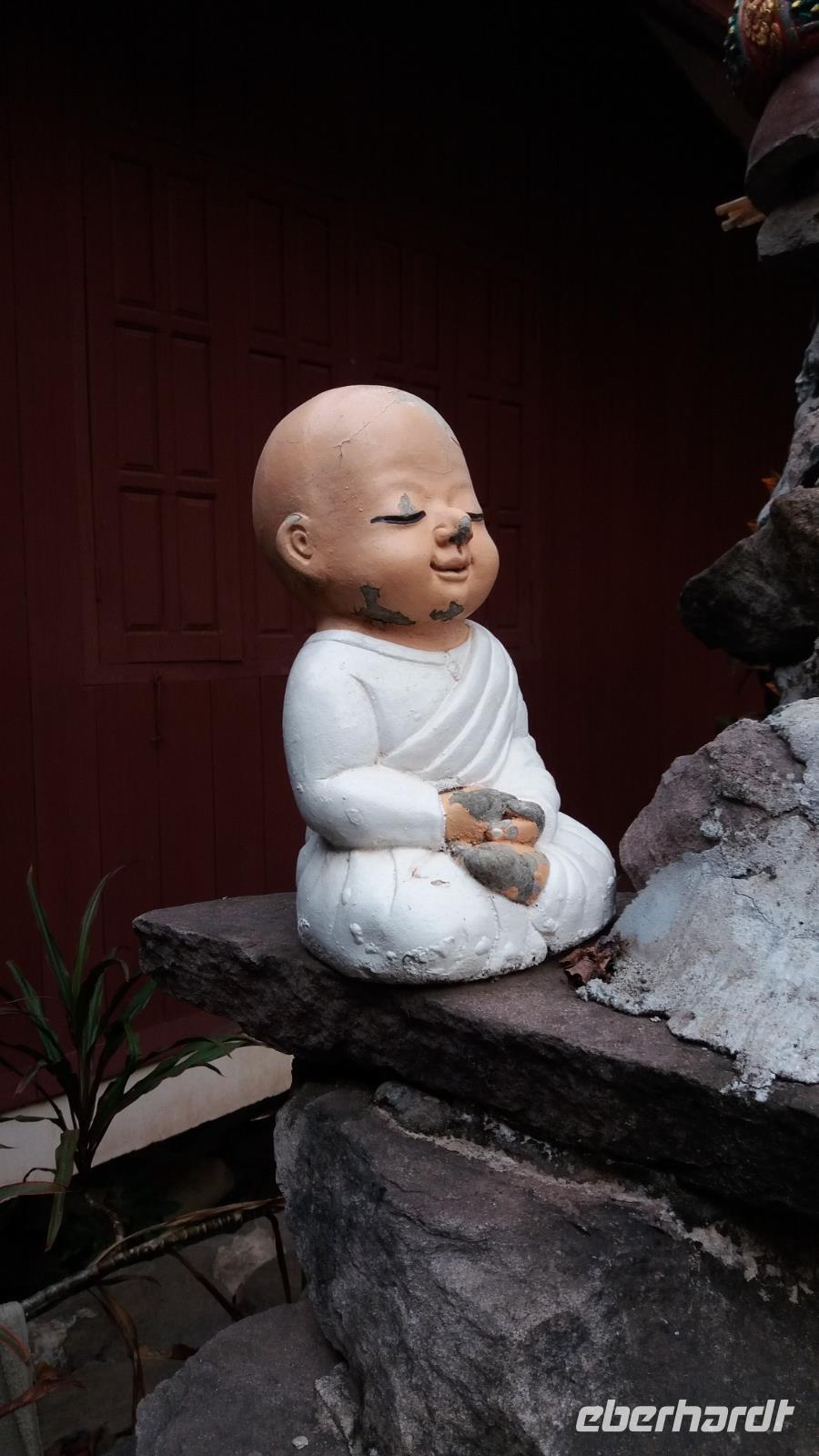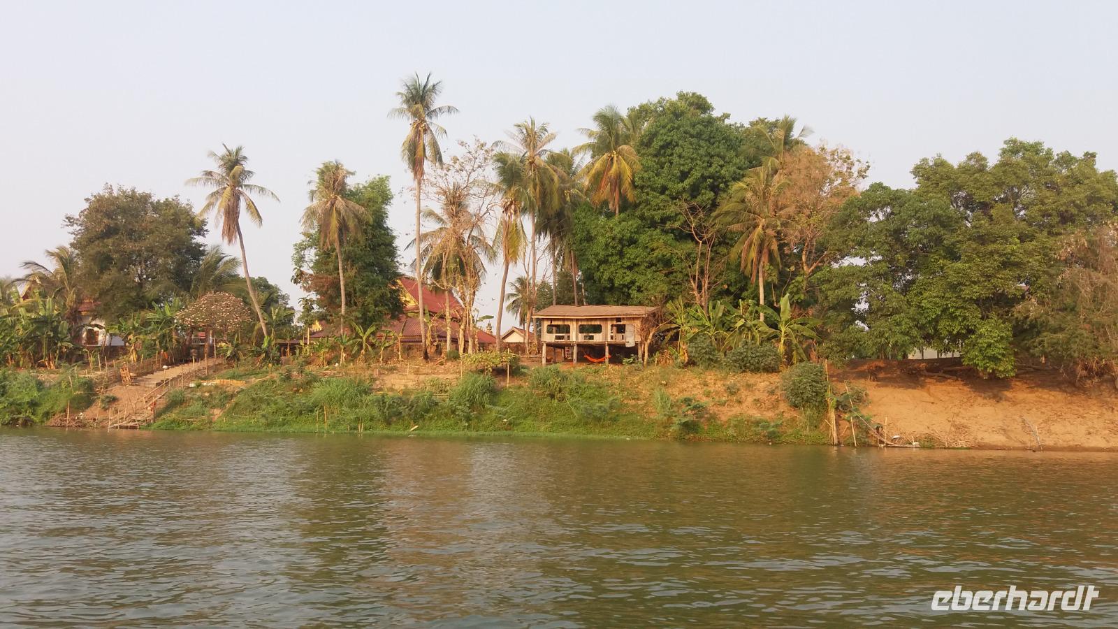 Dieses Hotel überraschte uns gleich mit seiner besonderen Atmosphäre. Eine traumhaft schöne Gartenanlage, sehr gepflegt mit exotischen Pflanzen und Teichen, ein Ruhepol nach der anstrengenden Anreise. Da unsere Zimmer aber noch nichts ganz bezugsfertig waren, führte uns Khamchang durch Luang Prabang. Er erzählte uns gleich sehr viel Persönliches, und so hatten wir ganz bald das Gefühl, ihn schon lange zu kennen. Am Mekong setzten wir uns in ein Terrassenrestaurant und genossen ein gekühltes "LaoBeer" oder einen ersten Kaffee "Lao Style", hhmm .. sau lecker mit gezuckerter Milch und so ..