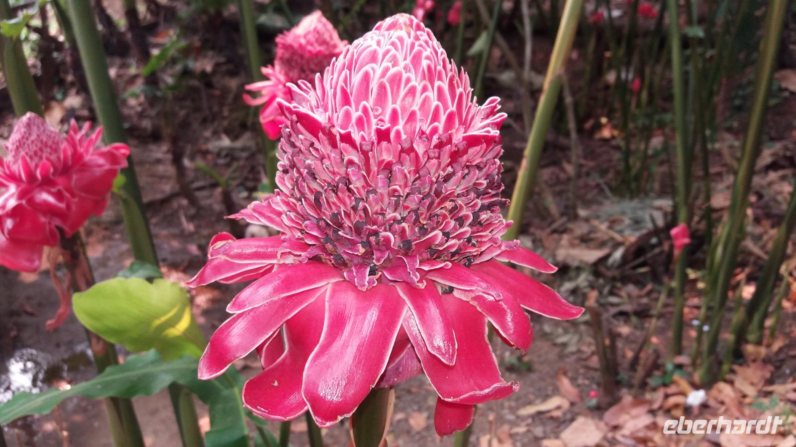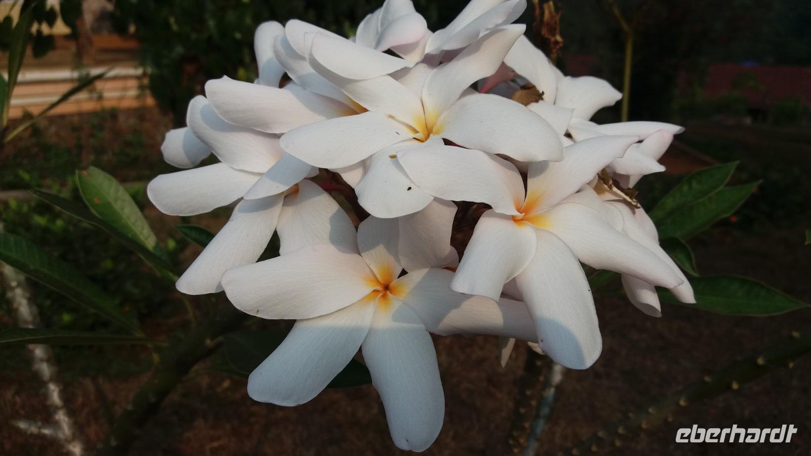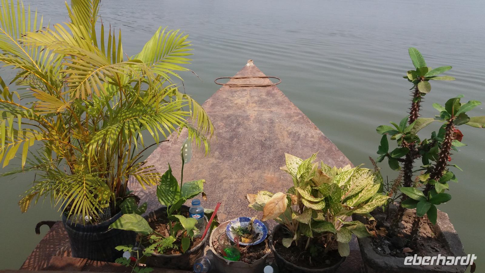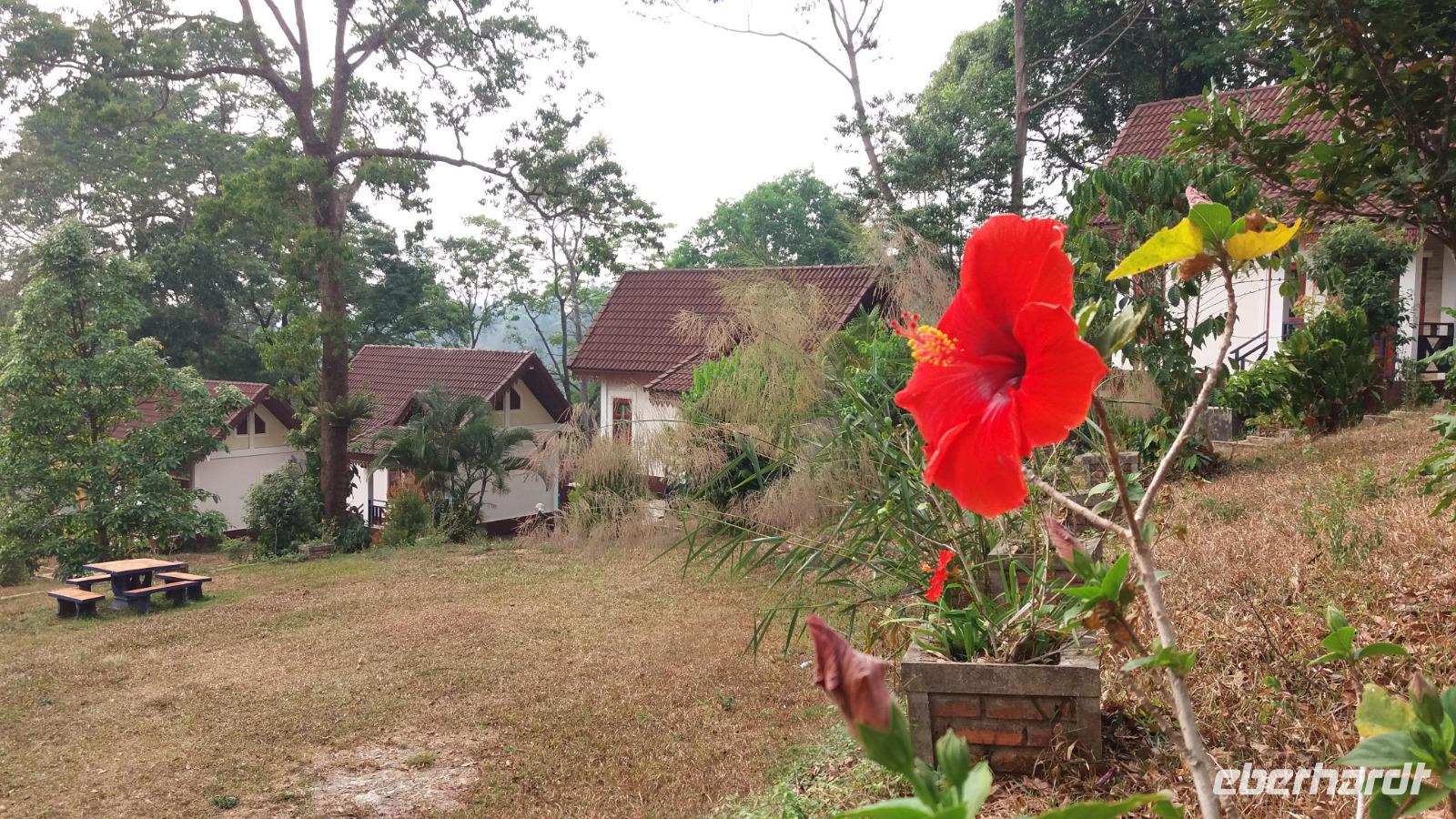 Dieses Hotel überraschte uns gleich mit seiner besonderen Atmosphäre. Eine traumhaft schöne Gartenanlage, sehr gepflegt mit exotischen Pflanzen und Teichen, ein Ruhepol nach der anstrengenden Anreise. Da unsere Zimmer aber noch nichts ganz bezugsfertig waren, führte uns Khamchang durch Luang Prabang. Er erzählte uns gleich sehr viel Persönliches, und so hatten wir ganz bald das Gefühl, ihn schon lange zu kennen. Am Mekong setzten wir uns in ein Terrassenrestaurant und genossen ein gekühltes "LaoBeer" oder einen ersten Kaffee "Lao Style", hhmm .. sau lecker mit gezuckerter Milch und so ..