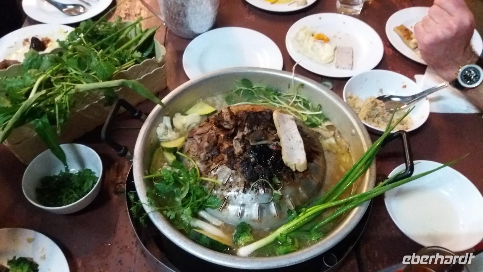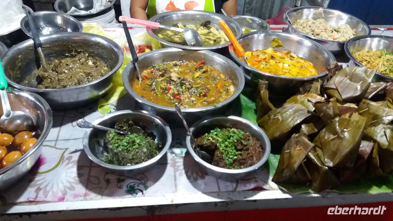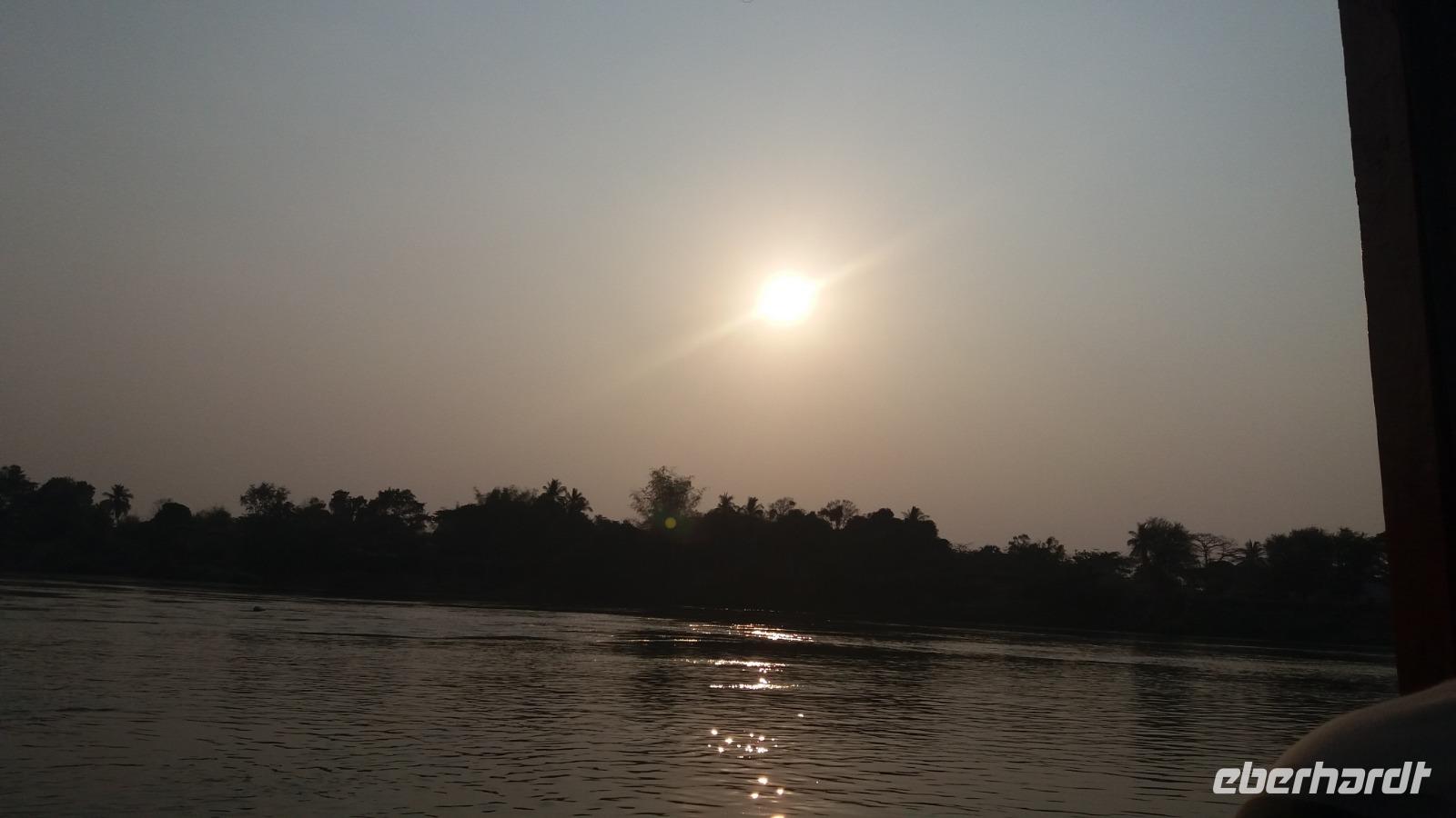 abermals an das Ufer des Mekong, um dort authentisch zu Abend zu speisen. Khamchang hatte eine Vorauswahl an verschiedenen Gerichten getroffen und wir waren alle begeistert. Zurück zum Hotel spazierten wir über den Nachtmarkt von Luang Prabang, erspäten Dieses oder Jenes, kauften aber noch zurückhaltend, denn wir waren ja noch zwei weitere Nächte dort und am ersten Abend verdammt müde nach der langen Anreise.