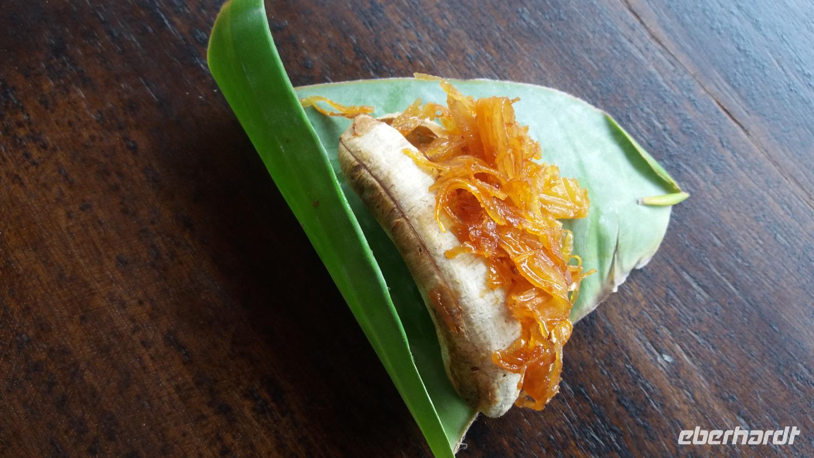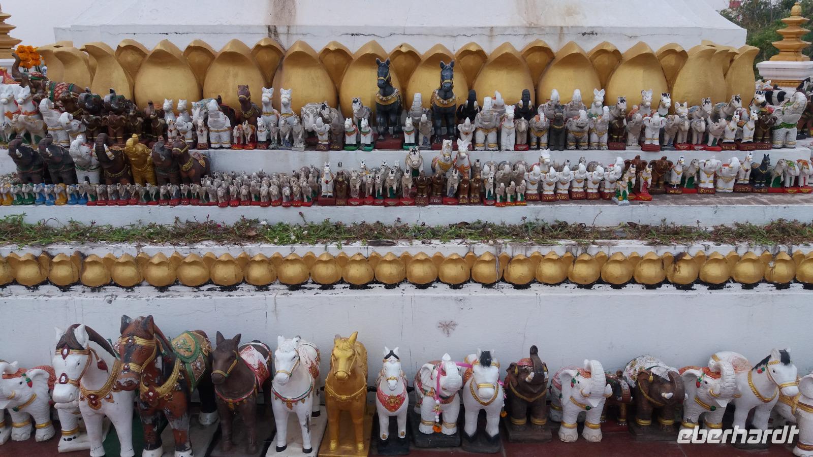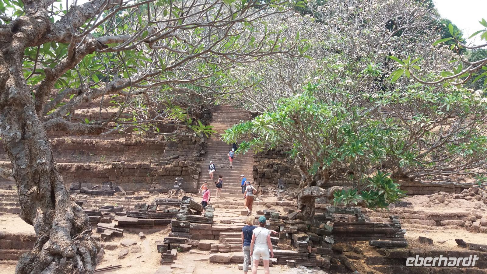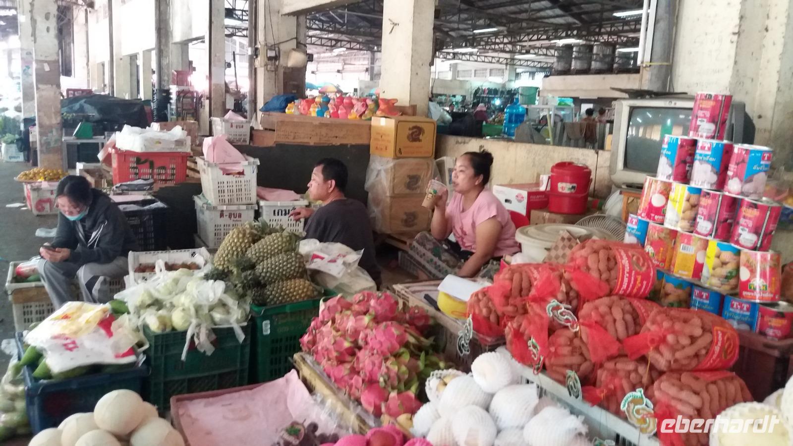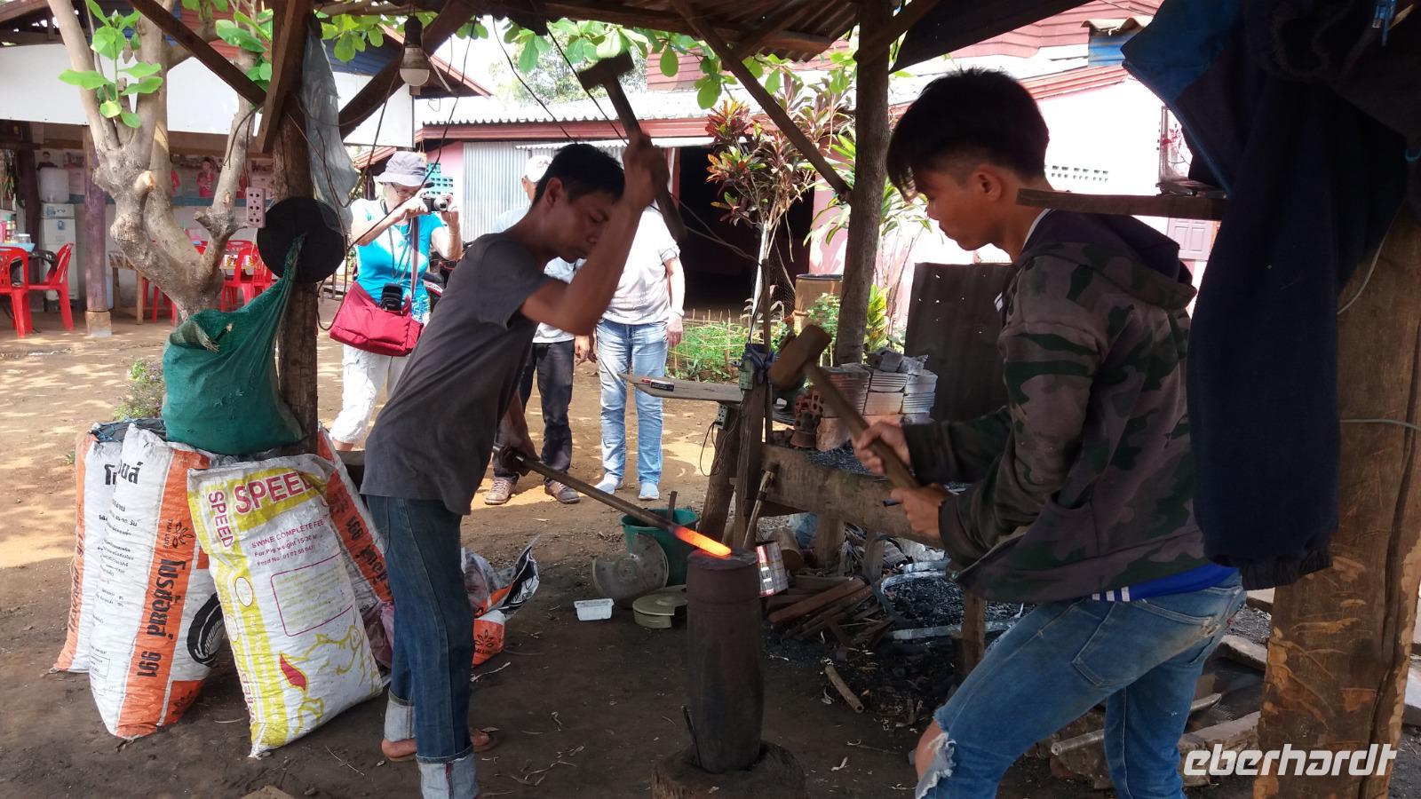 ein Markt in erster Linie für die Laoten, auf dem die Speisen für den Tag erworben werden können. Aber auch wir Touristen genossen den Spaziergang darüber, gab es doch so zahlreiche farbige und duftende Eintrücke, allerlei Gewürze oder Gemüse, die wir nicht zuordnen konnten. Khamchang kannte all dies und wusste oft heilende Wirkungen zu berichten. Auch nutzten wir den Markt als Inspiration für unser abendliches Mahl. Anschließend zeigte uns Khamchang das Munitionsmuseum, sehr spannend, denn Khamchang hat viele Jahre als Munitionsentschärfer gearbeitet und kannte alle Bomben und Minen, die die Amerikaner über Laos abwarfen. Es bedrückte uns sehr, auch mit welcher Leichtigkeit Khamchang darüber sprach. Desweiteren besuchten wir die wichtigsten Tempel von Luang Prabang.