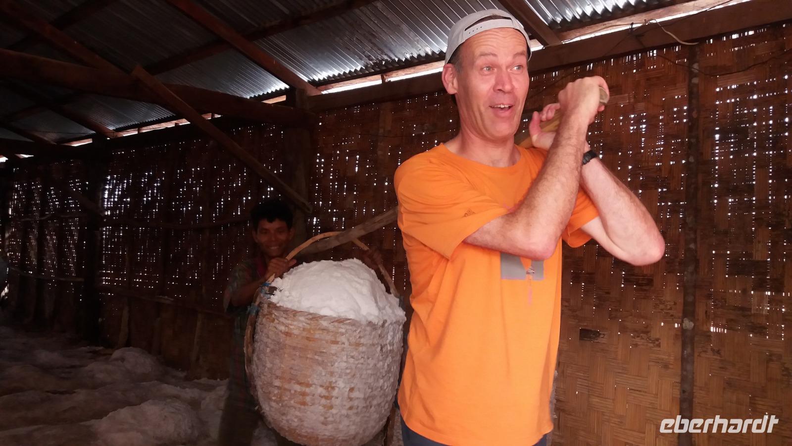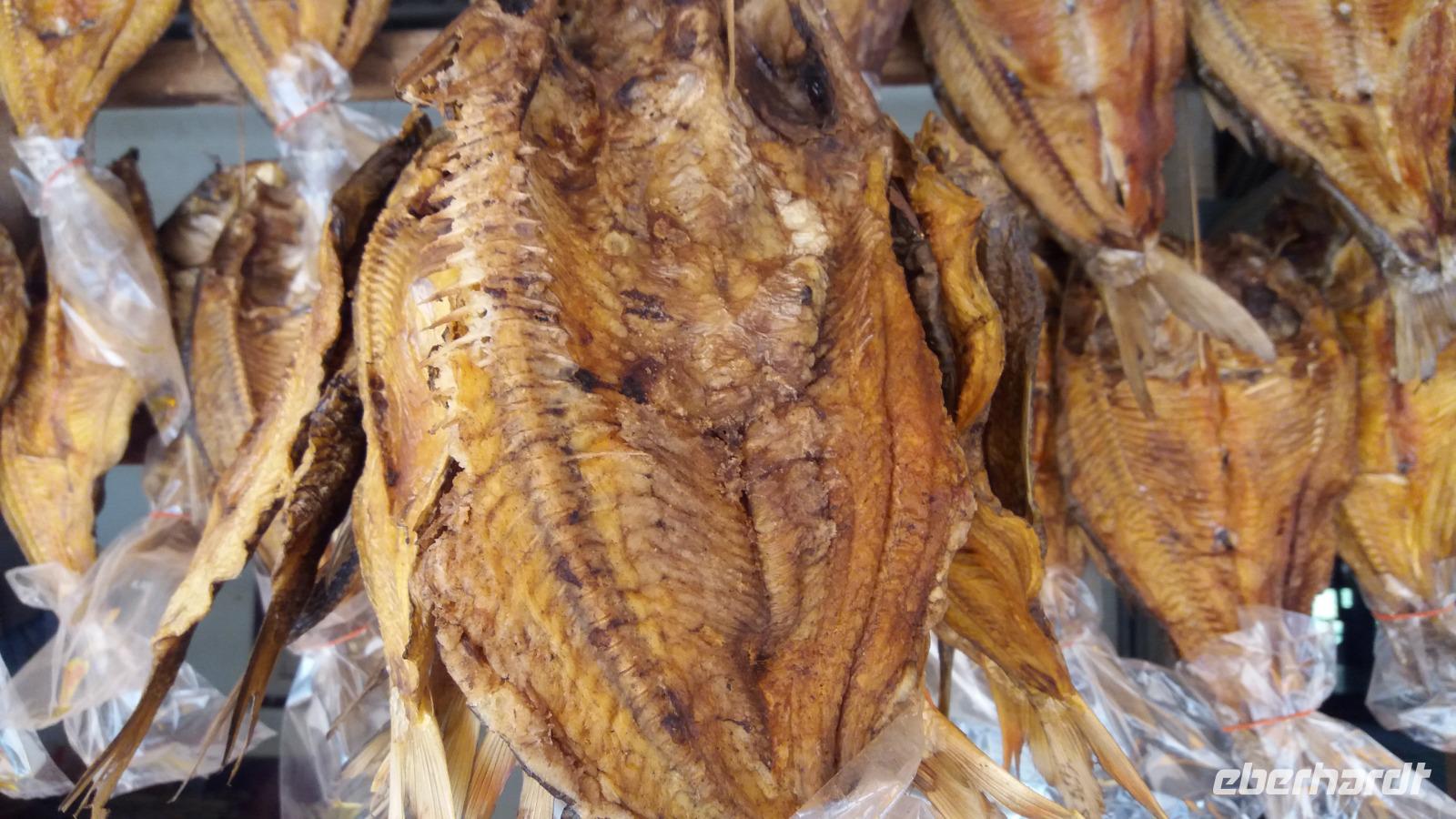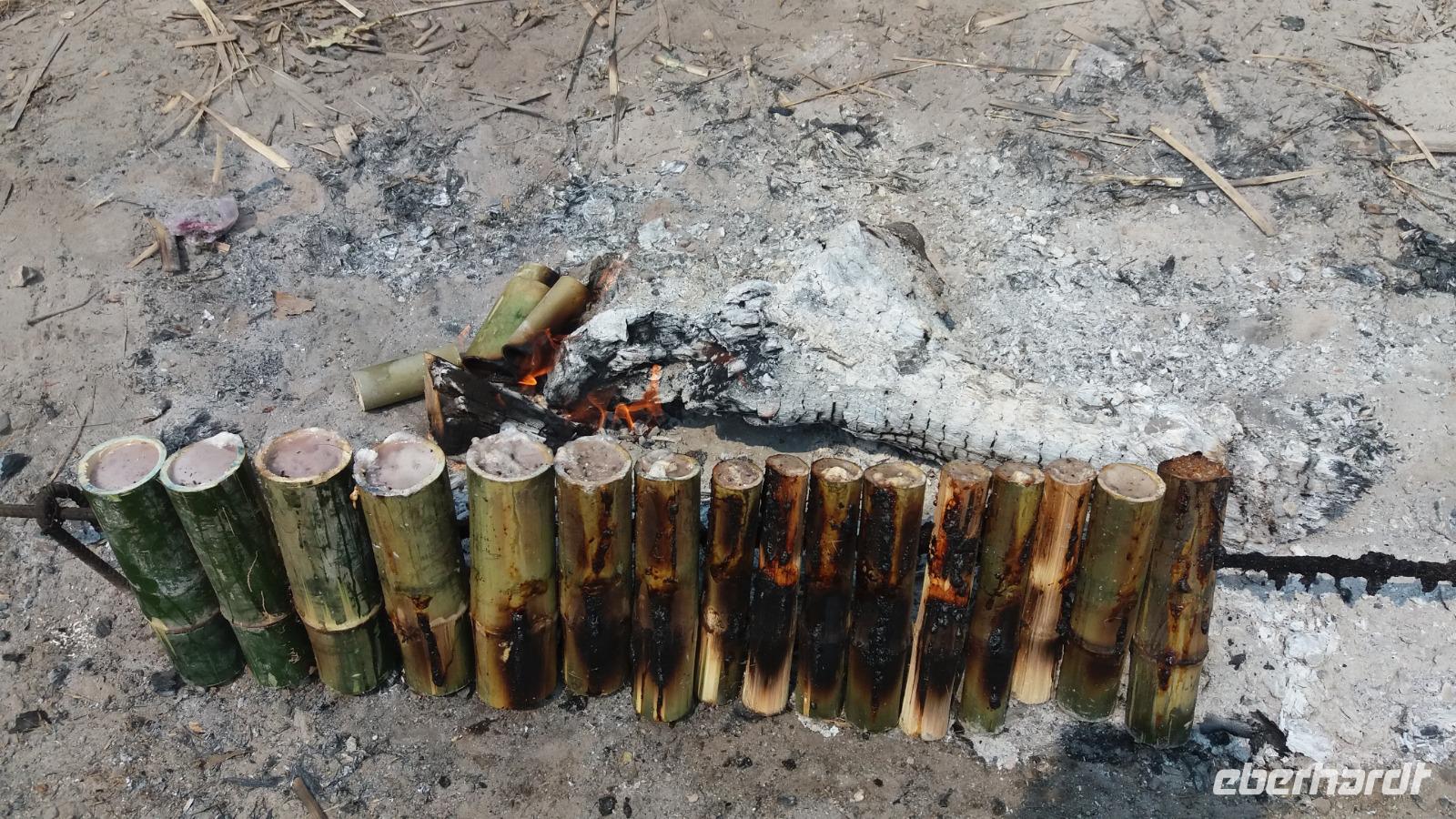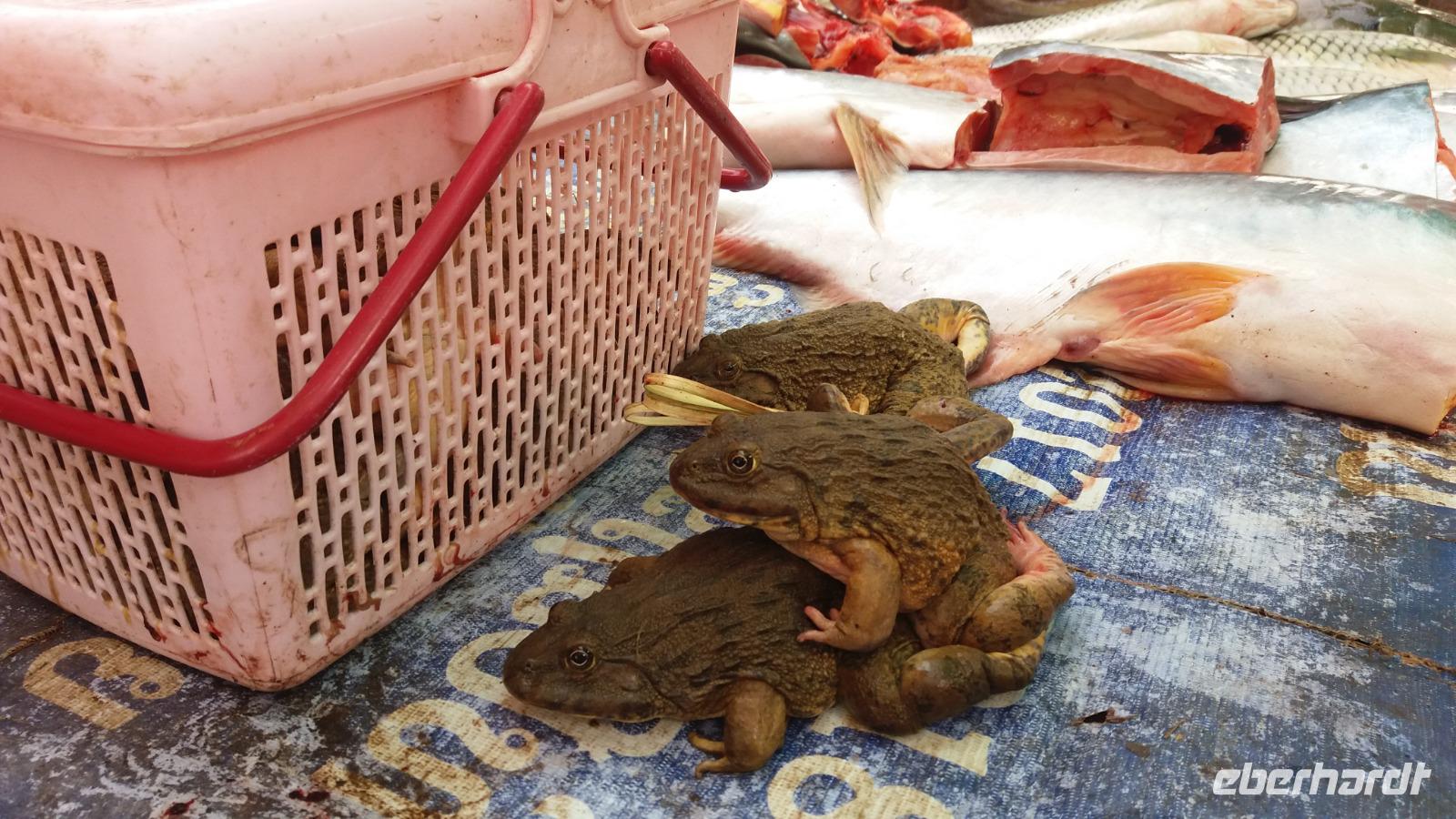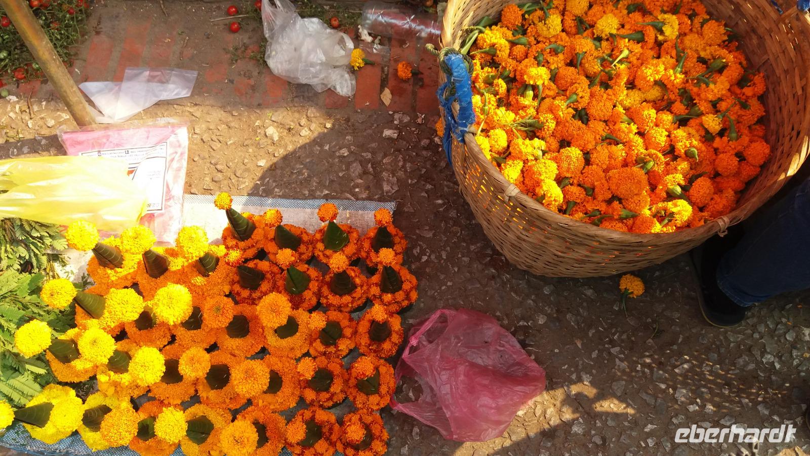 ein Markt in erster Linie für die Laoten, auf dem die Speisen für den Tag erworben werden können. Aber auch wir Touristen genossen den Spaziergang darüber, gab es doch so zahlreiche farbige und duftende Eintrücke, allerlei Gewürze oder Gemüse, die wir nicht zuordnen konnten. Khamchang kannte all dies und wusste oft heilende Wirkungen zu berichten. Auch nutzten wir den Markt als Inspiration für unser abendliches Mahl. Anschließend zeigte uns Khamchang das Munitionsmuseum, sehr spannend, denn Khamchang hat viele Jahre als Munitionsentschärfer gearbeitet und kannte alle Bomben und Minen, die die Amerikaner über Laos abwarfen. Es bedrückte uns sehr, auch mit welcher Leichtigkeit Khamchang darüber sprach. Desweiteren besuchten wir die wichtigsten Tempel von Luang Prabang.
