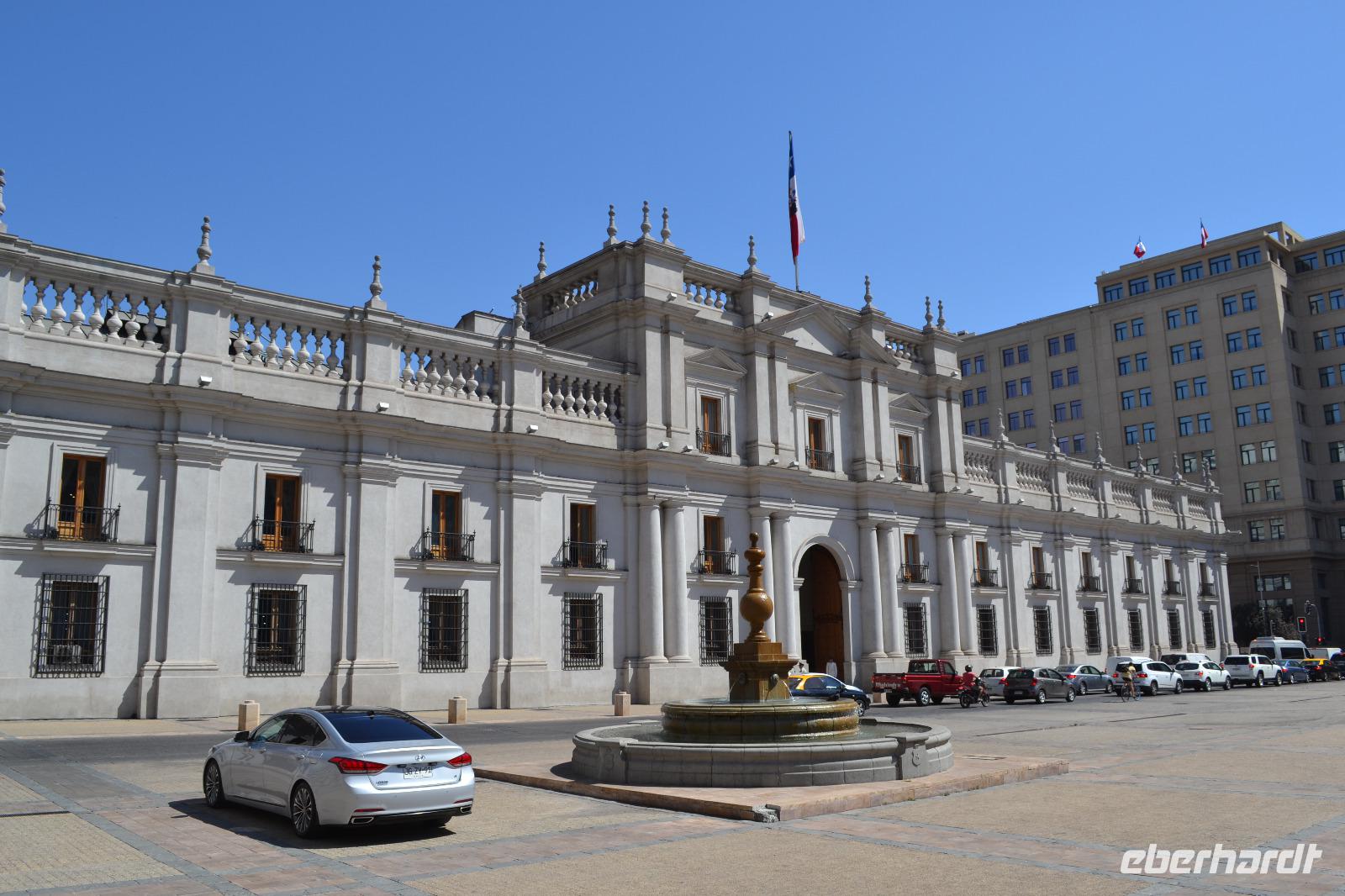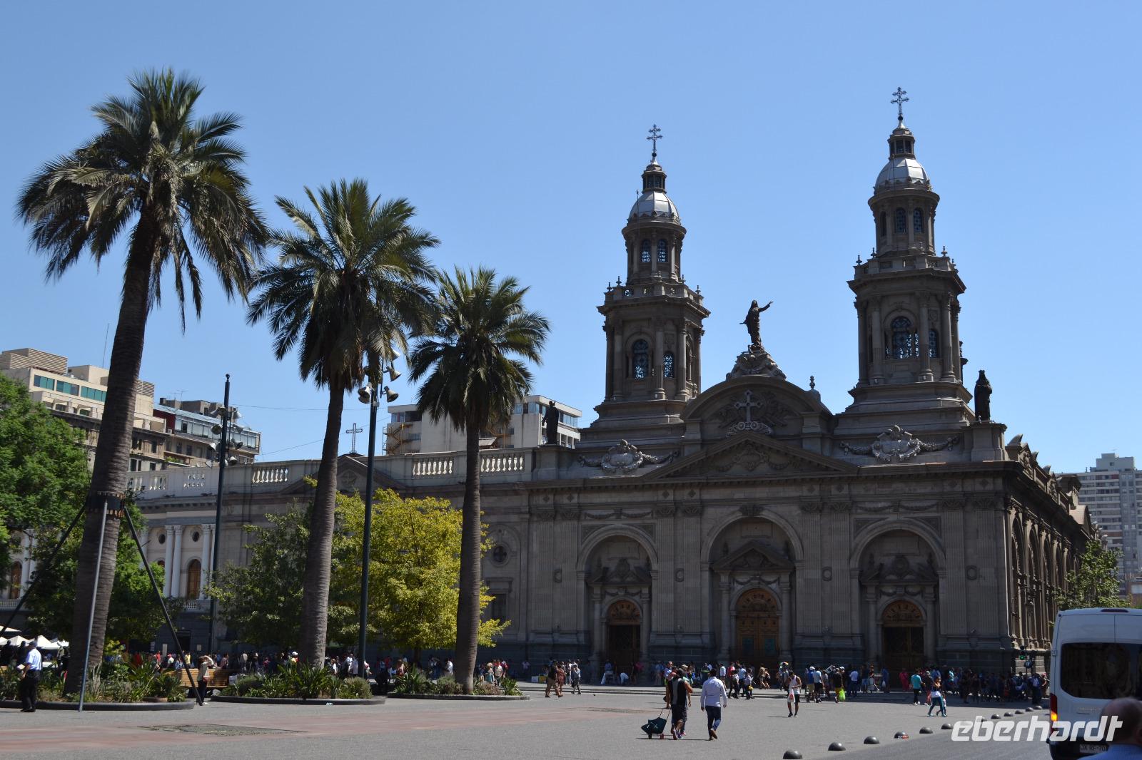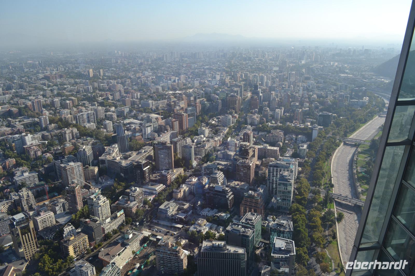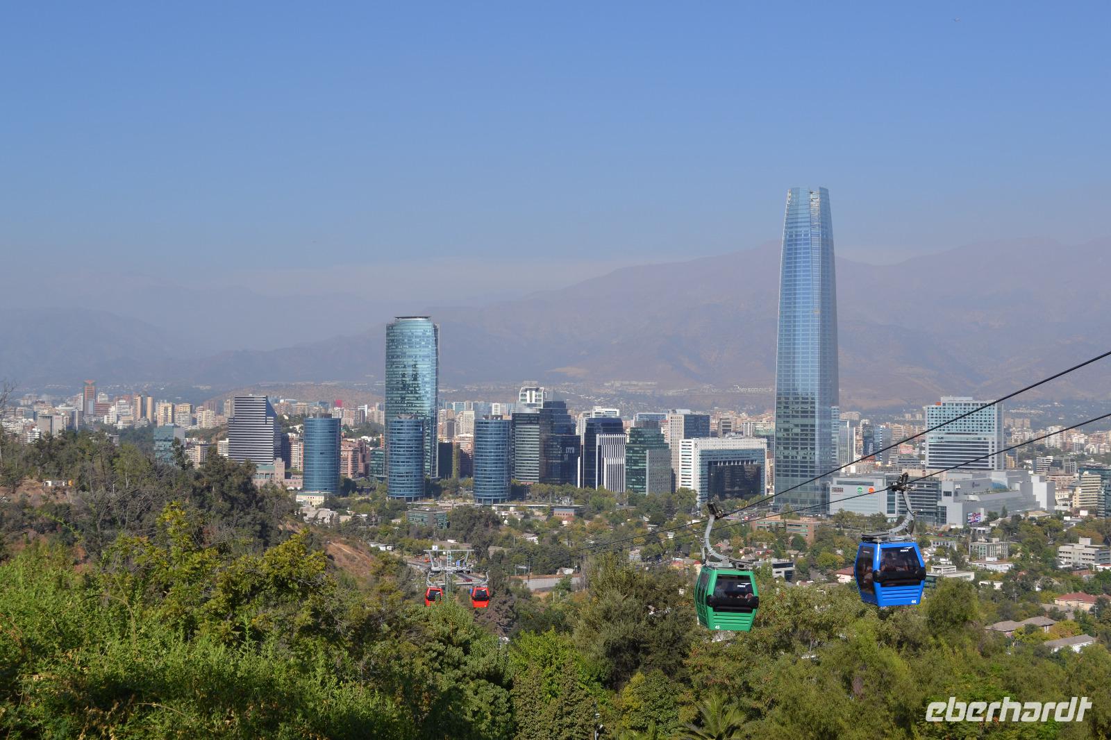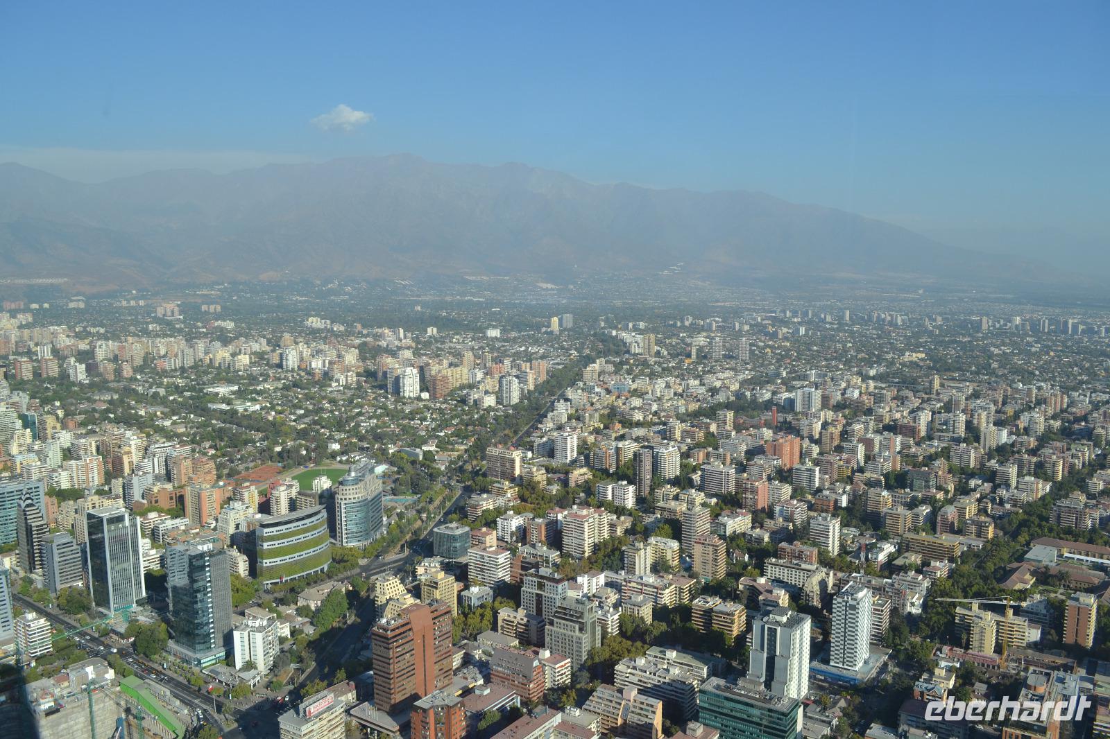Nach dem Check-In auf dem Flughafen Tegel genießen wir noch einen kleinen Snack, bevor wir zu unserer großen Reise aufbrechen. Zuerst geht es nach London-Heathrow. Da wir eine wolkenlose Nacht erwischen, können wir einen guten Blick auf die hell erleuchtete Innenstadt werfen, mit der Themse, dem Millenium Dome und dem London Eye. So ein Besuch in London wäre doch auch mal wieder was! Auf uns wartet am Flughafen nicht nur ein weiteres Ehepaar, sondern auch die Maschine nach Santiago - ein Flug von insgesamt 15 Stunden. Doch wer sich auf eine Abenteuerreise nach Südamerika einlässt, muss diesen langen Flug wohl oder übel auf sich nehmen. In Chile angekommen werden wir von unserer örtlichen Reiseleiterin Michelle in Empfang genommen, die uns erstmal zum Hotel bringt, wo wir die Zimmer schon beziehen und uns kurz erfrischen können. Dann macht sich aber doch so langsam ein leichtes Hungergefühl bemerkbar. Gut, dass für uns schon ein Tisch in einem Restaurant am Fischmarkt reserviert ist. Wir speisen wie die Fürsten und schlagen uns mit Ceviche und Lachs oder einem leckeren Fischeintopf den Bauch voll. Der anschließende Verdauungsspaziergang führt uns ins Zentrum der Altstadt, dem Plaza de Armas, dem Waffenplatz. Ein solcher findet sich in fast jeder südamerikanischen Stadt vor der größten Kirche, denn die Soldaten mussten auf diesem Platz vor dem Gottesdienst ihre Waffen abgeben. Am Justizpalast vorbei spazieren wir langsam zum Platz der Verfassung, an dem sich der berühmte Moneda-Palast befindet, in dem Salvador Allende während des Militärputsches von Pinochet seine letzten Stunden verbrachte. Mit der Iglesia de San Francisco besuchen wir noch die älteste Kirche Santiagos, die 1622 eingeweiht wurde, und seitdem viele Erdbeben überstanden hat. Nach einer Fahrt mit der Seilbahn genießen wir vom Cerro San Cristóbal inmitten des größten Stadtparks Chiles einen Blick auf die Skyline von Santiago und auch auf den Costanera Tower, das höchste Gebäude ganz Südamerikas. Als Überraschung eröffne ich meinen Gästen, dass wir zum Abschluss des Tagesprogramms noch hinauf zur Aussichtsplattform Sky Costanera an der Spitze des Wolkenkratzers fahren. Von hier aus bietet sich uns noch einmal ein schöner Rundumblick bis zu den Anden, und wir können die gewaltige Ausdehnung der Stadt ermessen.