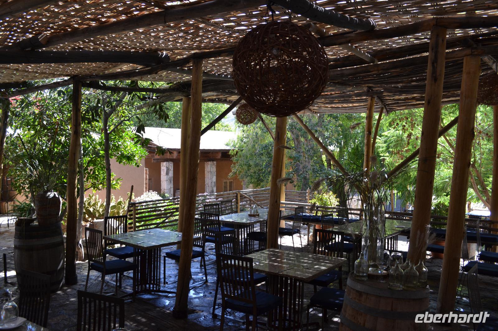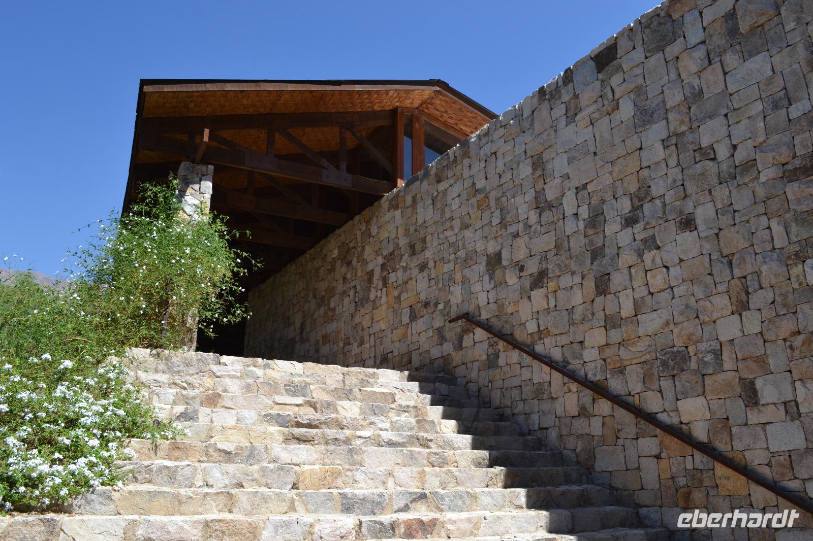 Schon am nächsten Tag steht wieder eine Verkostung an. Oh je, wird das jetzt etwa die ganze Reise so weitergehen? Worauf habe ich mich hier nur eingelassen? Von unserer Elena werden wir sehr herzlich empfangen und ehe wir uns versehen sitzen wir schon im Bus Richtung Elqui-Tal. Das Wetter ist traumhaft, wir fahren an einer Talsperre vorbei und genießen den Blick auf das Wasser. Bald schon erblicken wir einen grünen Teppich aus Wein, der sich malerisch an die kahlen Berghänge und in den Talkessel schmiegt. Eine gute Gelegenheit für das Gruppenfoto! Aber muss man denn aus dem schönen Wein wirklich Weinbrand herstellen? Na gut, ich sag lieber nichts, denn schließlich kann das Thema „Pisco" ein großes Fettnäpfchen sein. Wer hat ihn erfunden? Darüber streiten sich Chilenen und Peruaner gefühlt seit Anbeginn der Zeit. Auf dieser Seite der Grenze lautet die Antwort ganz klar: die Chilenen! Schließlich hat man unseren Zielort deshalb auch in „Pisco Elqui" umbenannt. Es ist ein wirklich schönes Fleckchen Erde, den sich die Destillerie „Mistral" hier ausgesucht hat. Auch die Architektur des Gebäudekomplexes gefällt mir sehr. Nach der sehr interessanten Führung durch das kleine Museum und die Produktionsanlagen brennt der Pisco sehr angenehm in der Kehle. Und von dem ausgezeichneten Mittagsmahl könnten auch doppelt so viele Personen satt werden. Wir verstehen langsam, warum das Elqui-Tal für die Einheimischen so ein beliebter Urlaubsort ist. Wir müssen aber leider heute schon zum Schiff zurück. Dank eines Staus kurz vor dem Hafen wird es ganz am Ende ein bisschen knapp, aber es geht alles gut und wir schaffen es rechtzeitig. Und dann ist es auch schon fast wieder Zeit für das Abendessen. (Erkennen Sie langsam ein Muster?)