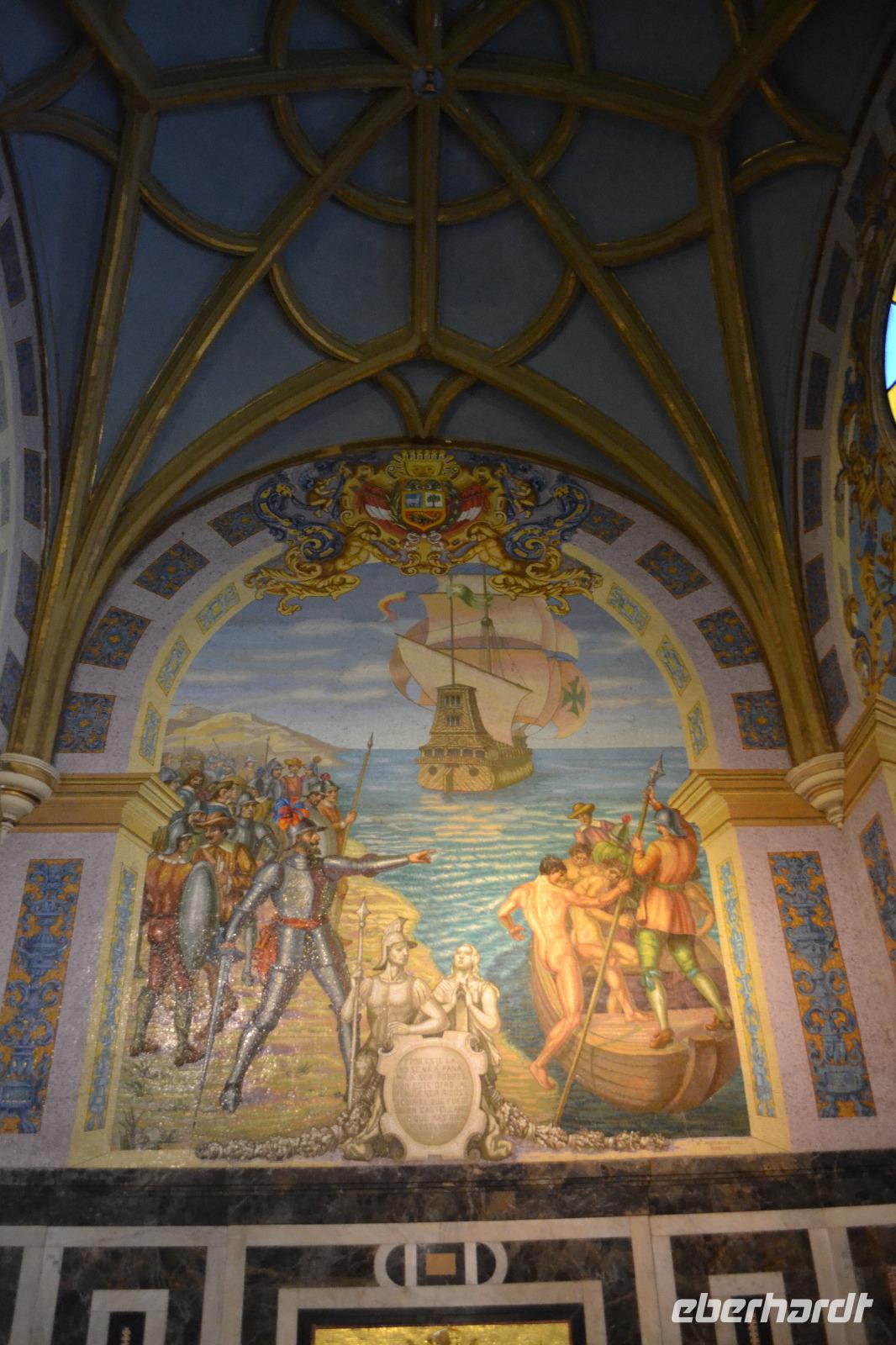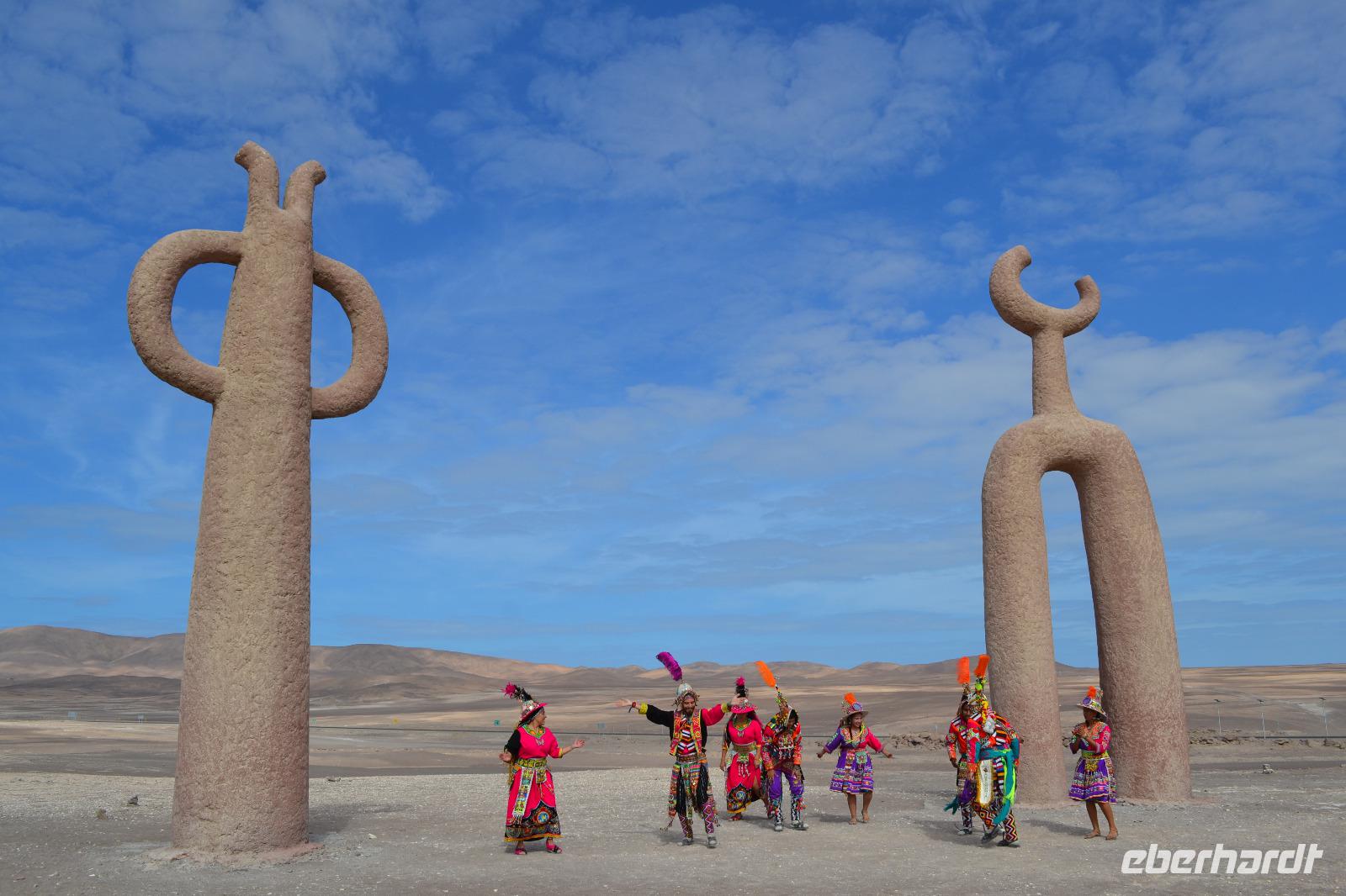 Nach so viel Wein und Weinbrand ist es doch gut, wenn wir uns an Bord der Norwegian Sun erst einmal bei einem Seetag erholen können. Vor der Erholung wird die Reisegruppe aber bei einem Vortrag noch mit ihrem Reisebegleiter sowie der Geschichte Südamerikas vertraut gemacht, und es wird ein Blick auf das Programm der nächsten Tage geworfen. Dann ist auch schon fast wieder die Mittagszeit heran - so ein Seetag geht immer viel schneller rum als man denkt. In der Zwischenzeit hat das Schiff Kurs auf die Stadt Arica im äußersten Norden Chiles genommen, die wir am nächsten Morgen erreichen. Ursprünglich gehörte die Region zu Peru, wurde jedoch nach dem Salpeterkrieg 1883 an Chile angegliedert. Offiziell aufgegeben haben sowohl Peru als auch das mit diesem verbündete Bolivien ihre Ansprüche auf das äußerst karge und trockene Gebiet in der Atacama-Wüste jedoch nie. Arica liegt an der Panamericana und lebt heute vom Handel und zum Teil auch vom Tourismus. Während die südamerikanischen Touristen vor allem von den Stränden mit ihren vergleichsweise warmen Wassertemperaturen angezogen werden, zieht es uns auf unserem Ausflug in die Wüste, denn hier können wir sowohl sehr alte (Geoglyphen) als auch neue Kunst (Skulpturen) bewundern und einer Folklore-Aufführung beiwohnen. Zum Abschluss geht es in das Archäologische Museum, in dem u. a. Mumien der Chinchorro-Kultur ausgestellt sind. Die älteste künstliche Mumie ist mehr als 7.000 Jahre alt und damit deutlich älter als die ägyptischen Mumien! Es ist nicht sicher, was die Menschen dieser Jäger- und Sammler-Kultur, die vor allem vom Fischfang lebte, dazu bewogen hat, ihre toten Angehörigen zu mumifizieren, zumal darüber hinaus kaum etwas über die Chinchorro bekannt ist. Eine Theorie besagt, dass die hohe natürliche Arsenbelastung des Trinkwassers zu einer hohen Kindersterblichkeit führte, was Auslöser für den besonderen Totenkult gewesen sein mag, denn es sind vor allem Mumien von Kindern, die gefunden wurden. Mit unserem neu erworbenen Wissen kehren wir nach diesem schönen Ausflug nachdenklich, aber auch etwas hungrig auf das Schiff zurück.