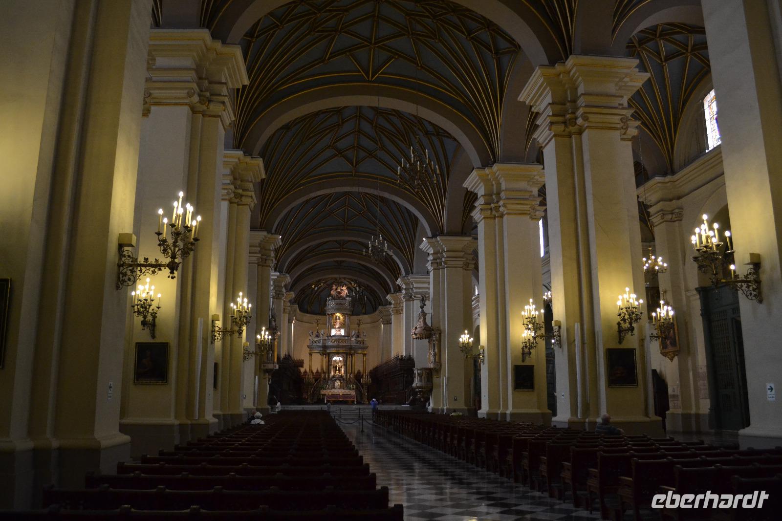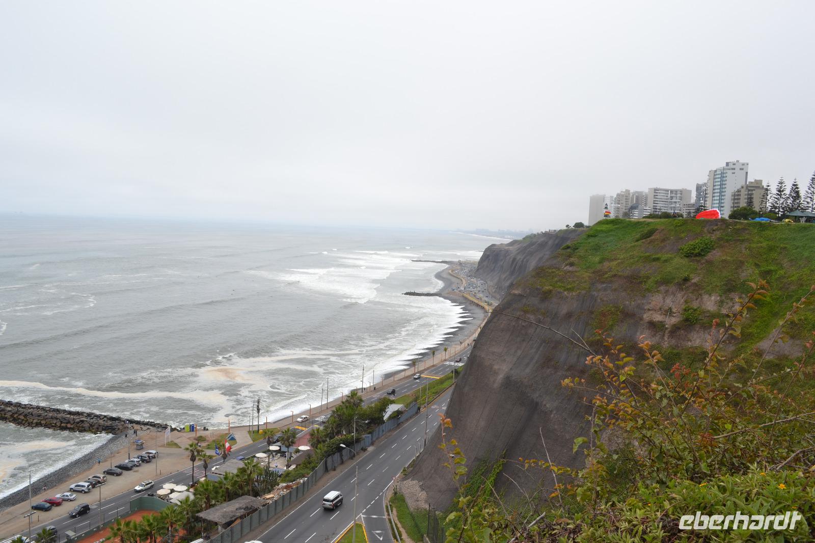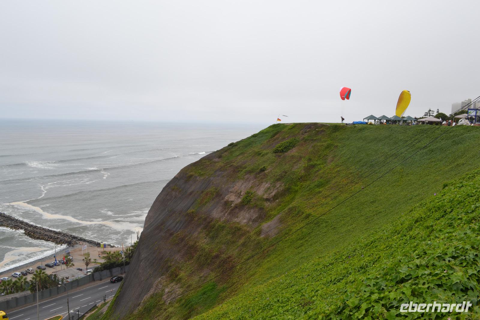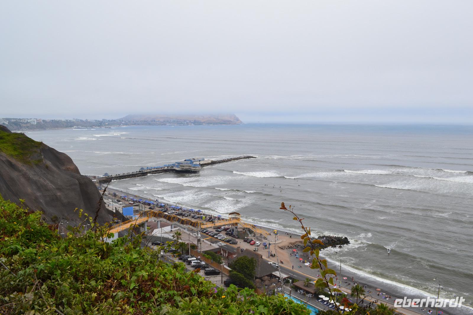 Es ist der zweite Seetag und ich schaue gerade etwas verträumt aufs Meer hinaus, da bemerke ich auf einmal Bewegungen im Wasser. Große Fische? Doch dann wird schnell klar, dass es sich um Delfine handelt, genauer gesagt um Schwarzdelfine, die in großen Populationen vor den Küsten Perus, Chiles und Argentiniens leben. Es müssen Hunderte sein! Ab und zu springen sie auch aus dem Wasser und führen uns ihre akrobatischen Fähigkeiten vor. Insgesamt fahren wir heute drei Mal an großen Delfingruppen vorbei. Leider werden sie in Peru gejagt und zu Tausenden getötet (bis zu 15.000 pro Jahr). Am nächsten Tag macht die Norwegian Sun in Callao fest, dem Hafen der peruanischen Hauptstadt Lima. Mit dem Bus werden wir ins Stadtzentrum, zum Plaza Mayor gefahren. Die Altstadt mit ihren beeindruckenden Kolonialbauten ist seit 1988 UNESCO-Weltkulturerbe und hat mehreren schweren Erdbeben standgehalten. Die Ursache hierfür können wir in der gewaltigen Kathedrale sehen, denn diese wurde größtenteils aus Holz und Lehm erbaut, was aber von außen nicht sichtbar ist. In der Kathedrale ist auch das Grab des Eroberers Francisco Pizzaro, der Lima 1535 als Ausgangsbasis für seine Eroberungszüge gründete. 1542 wurde Lima dann zur Hauptstadt des Vizekönigreichs Peru auserkoren. In der Nähe des Hauptplatzes befindet sich das Casa de Aliaga. Die Besitzerfamilie dieses stolzen Anwesens kann Ihren Stammbaum bis zu einem der 13 Weggefährten Pizzaros zurückverfolgen. Bei unserem Besuch fühlen wir uns in der Zeit zurückversetzt. Vor allem der schattige Innenhof lädt zum Verweilen ein. Unser heutiger Reiseleiter führt uns jedoch weiter in das Konvent des riesigen Dominikanerklosters, in dem sich das Grab der heiligen Rosa von Lima befindet. 1671 wurde sie heiliggesprochen und gilt seitdem als Patronin von Lima. Diese Heiligenverehrung können wir vielleicht nicht in vollem Umfang nachvollziehen, doch ganz Südamerika ist immer noch stark vom Katholizismus geprägt. Zum Abschluss der Stadtbesichtigung fahren wir in das Stadtviertel Miraflores, das als Vorzeigeviertel des modernen und aufstrebenden Lima gilt, und sich unmittelbar auf den Klippen am Pazifik erhebt. Von hier aus können wir Gleitschirmflieger beobachten und auf den Strand herabblicken.