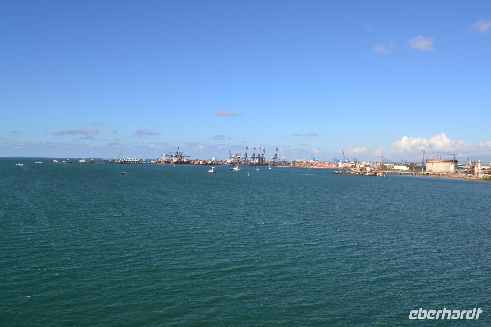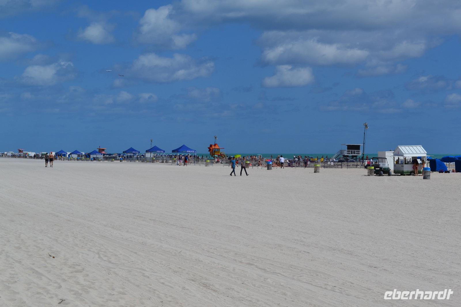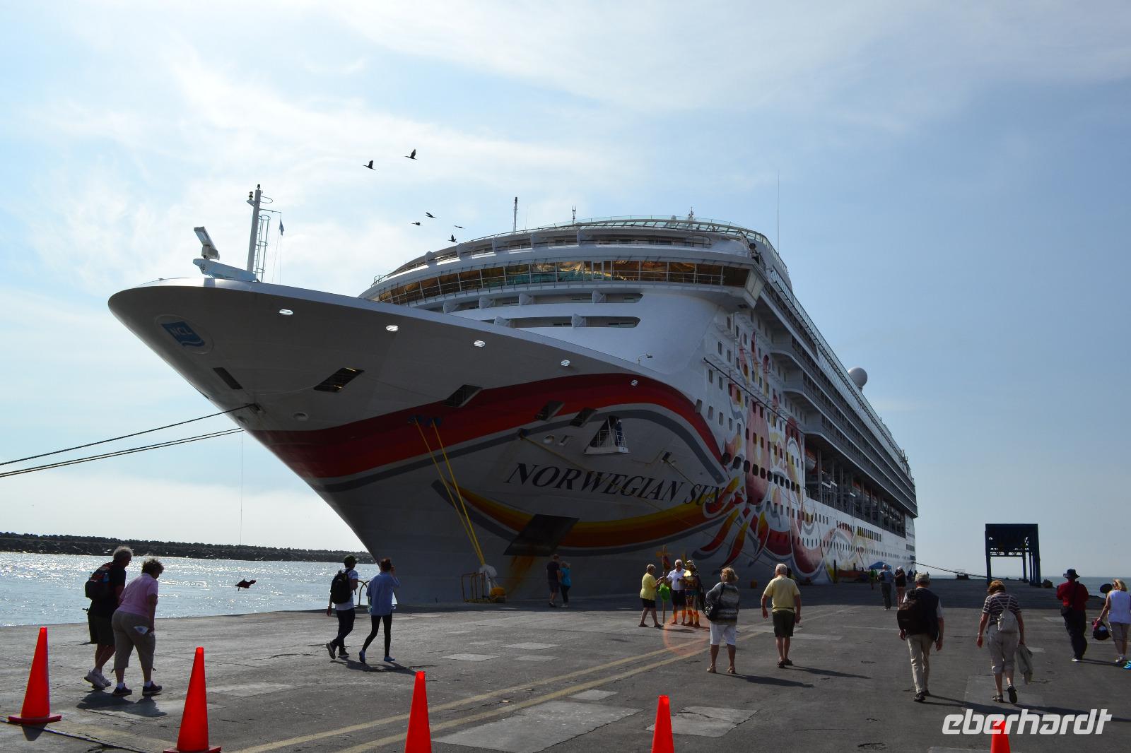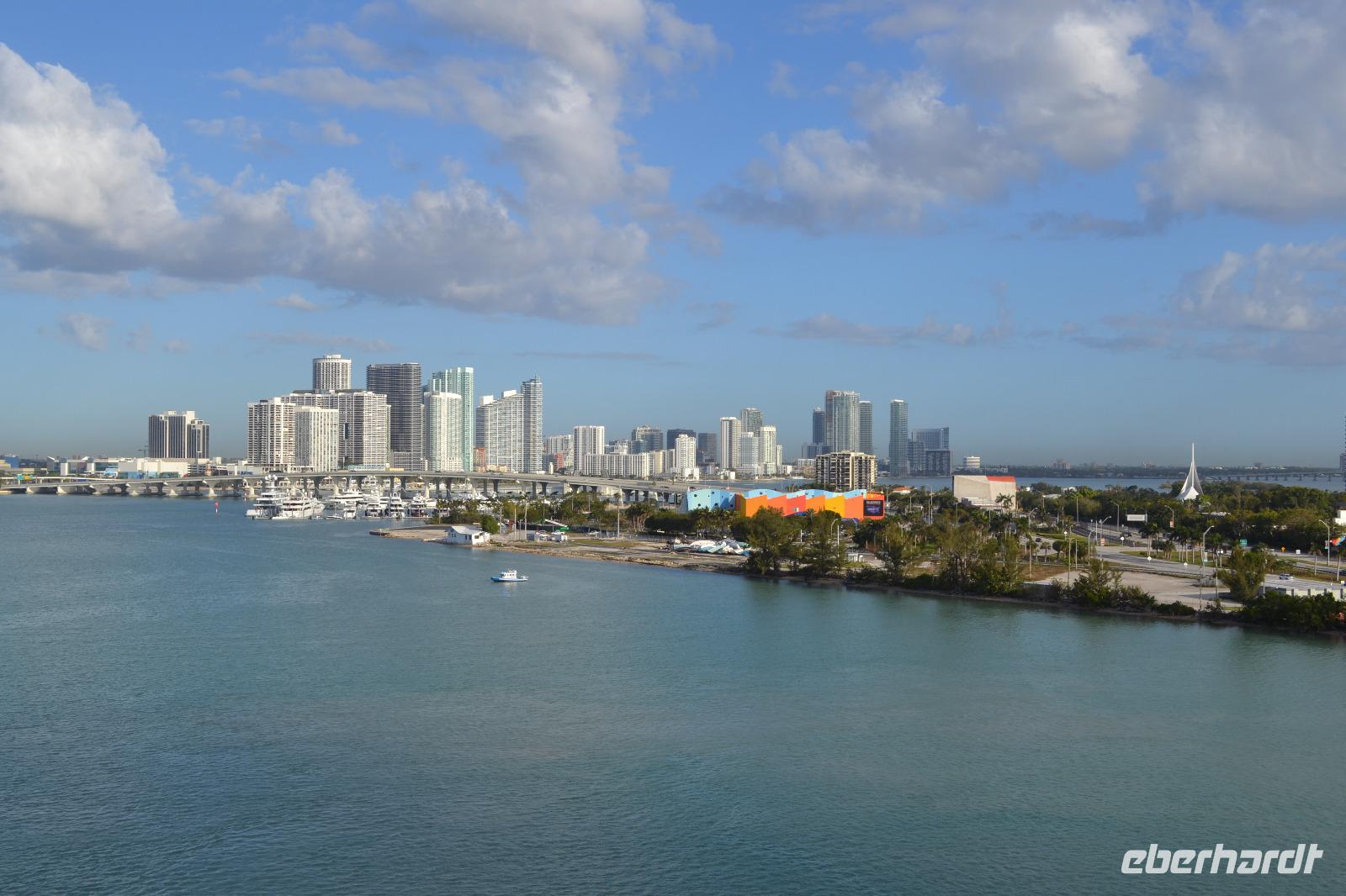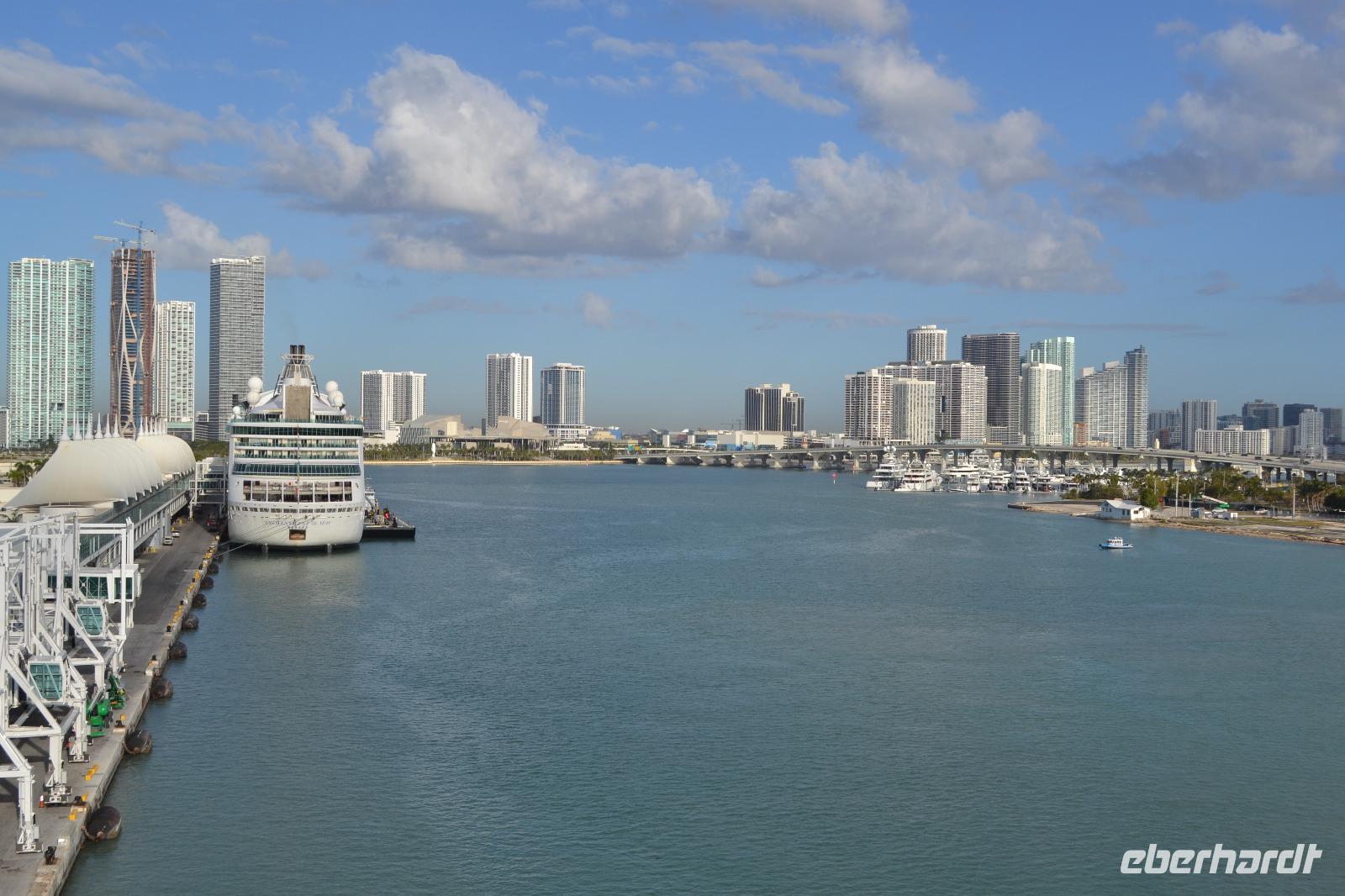 So stehen wir also nun mit unseren Koffern im Hafenterminal bei der Einreisekontrolle und blicken noch einmal auf unser Schiff, die Norwegian Sun, zurück. Nur die Stadtrundfahrt in Miami trennt uns jetzt noch von der bitteren Erkenntnis, selbst wieder unser Essen kochen zu müssen. Auch unsere Betten werden sich schon bald nicht mehr wie von Geisterhand von selbst machen, und aus Handtüchern gefaltete Tiergenossen werden auch keine auftauchen. Es ist durchaus nachvollziehbar, wenn sich Menschen, die über das nötige Kleingeld verfügen, entscheiden, für immer auf einem Kreuzfahrtschiff zu leben - man hat ein sorgenfreies Leben und wird rundum verwöhnt. Mit uns liegen noch drei weitere Kreuzfahrtschiffe im Hafen, darunter die Norwegian Jade und die Norwegian Sky. In Miami werden wir von unserer örtlichen Reiseleiterin Marita erst einmal von einer sehr schönen Stadtrundfahrt durch Miami verwöhnt, dass mit seinen riesigen Wolkenkratzern aus Glas und Stahl und prächtigen Villenvierteln natürlich einen starken Gegensatz zu unseren vorherigen Destinationen bildet. Bekannt ist Miami vor allem auch für seine vielen Gebäude im Art-déco-Stil, die wir u. a. am legendären Ocean Drive sehen können. Hier machen wir auch einen kleinen Abstecher zu Fuß zum Miami Beach. Weiter geht es durch das Künsterviertel Coconut Crove zum alten Terminal der Flugboote. Im Stadtviertel Little Havana kosten wir zum Abschluss des Programms kubanischen Kaffee, und wer mag, kann auch einen kleinen traditionellen Snack erwerben. Ich bin nicht der Einzige, der nun zum Ausklang gern noch drei Tage Miami anhängen möchte, aber unsere Flüge sind bereits gebucht. Marita bringt uns daher zum Flughafen, und wir treten in einer 747 von British Airways die Rückreise an. Auf dem Flughafen von Miami hat uns schon das erste Ehepaar verlassen, und in London steht der nächste Abschied an. Mit sieben Gästen reise ich weiter nach Berlin-Tegel.