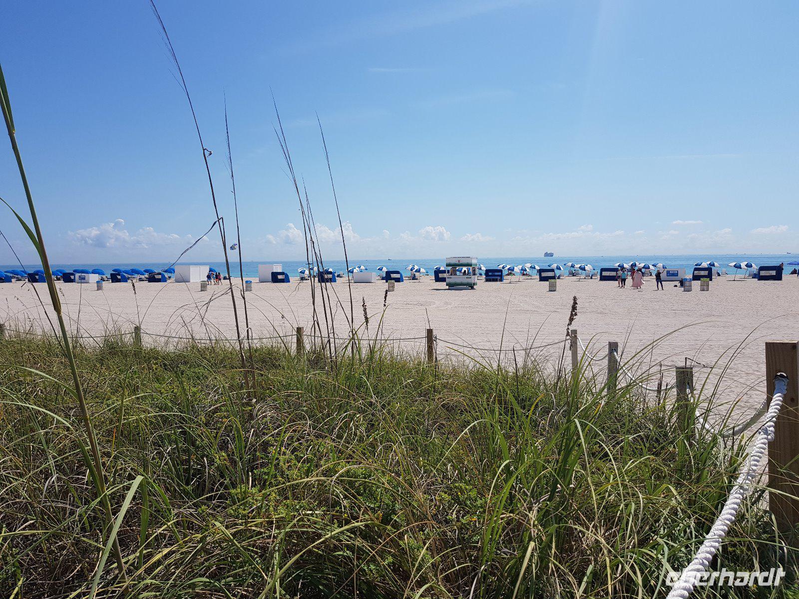 Der komplette Umschlag von knapp 2.000 Passagieren inkl. Crew dauert ein wenig und so erreichen wir unsere Reiseleiterin Gusti gegen 10:00 Uhr. Es ist herrlichstes Reisewetter für Miami mit Sonnenschein und wenig Luftfeuchtigkeit. Das soll sich hier ab Ostern auch bald ändern. Wir starten unsere Stadtrundfahrt direkt Richtung Miami Beach vorbei an Palm Island und Fisher Island, dem Paradies der Schönen und Reichen und ganz schön Reichen. Diese Insel ist komplett privat und man gelangt nur mit einer Einladung über eine Brücke zu den Berühmten wie Gloria Estefan und Co.