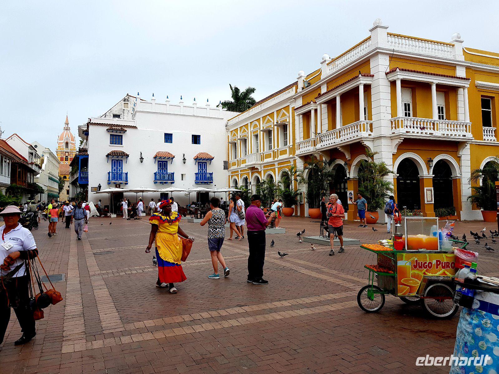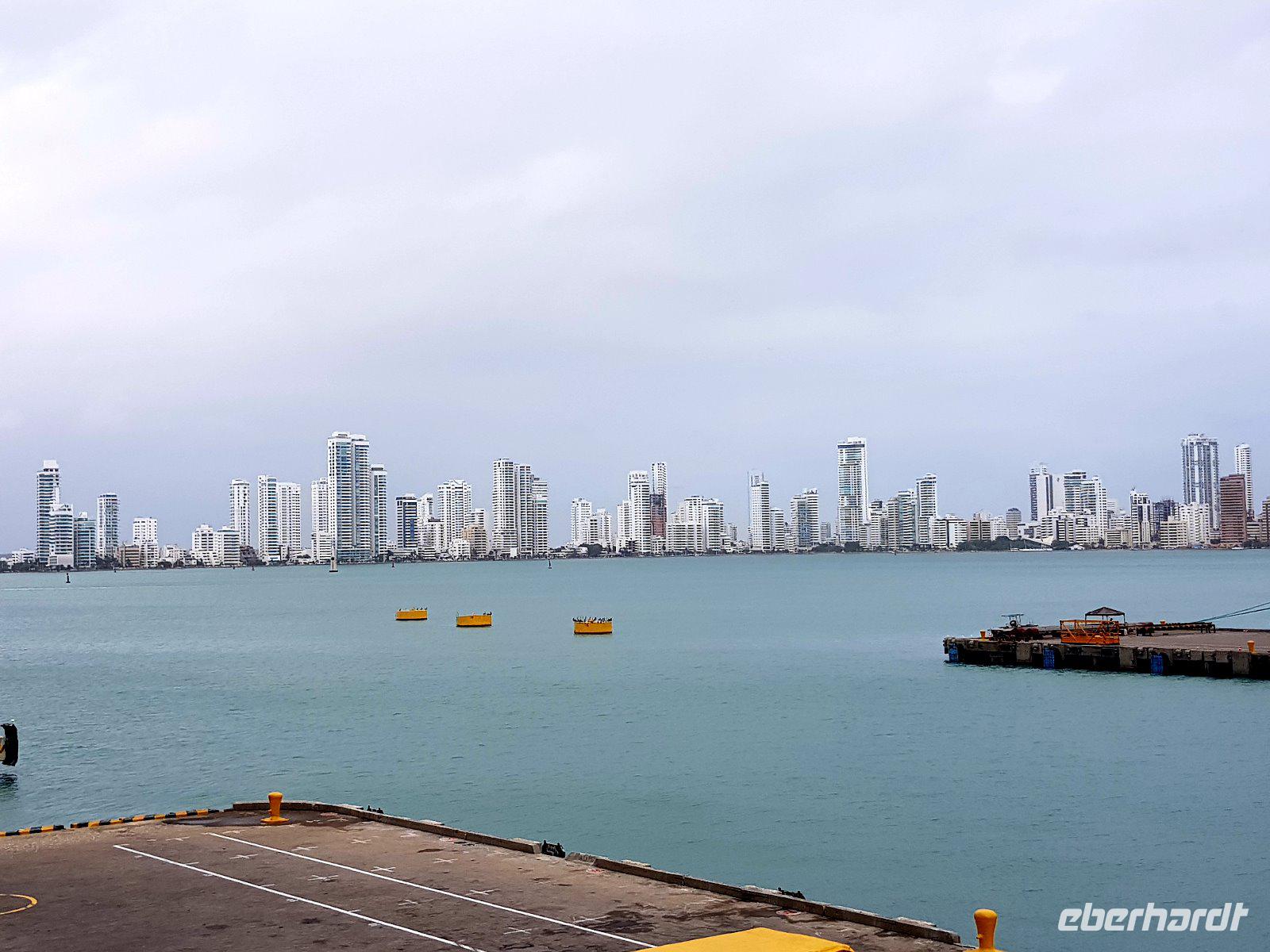 Guten Morgen, Cartagena! Schon beim Frühstück sehen wir Land, genauer gesagt sehr viele Hochhäuser, die einem das Gefühl geben, in Asien oder doch schon in Miami angekommen zu sein! Was wir sehen ist der moderne Stadtteil Bocagrande - unser Ausflug heute wird uns aber in das koloniale Cartagena führen. Cartagena hat mittlerweile 1,3 Millionen Einwohner und zählt zu der fünftgrößten Stadt in Kolumbien. Die Stadt wurde am 1. Juni 1533 von den Spaniern gegründet, allerdings wurde die Bucht von Cartagena bereits 4.000 Jahre vor Christi besiedelt. Das koloniale Zentrum in der Altstadt mit seinen Stadtmauern wurde 1984 zum UNESCO Weltkulturerbe ernannt.