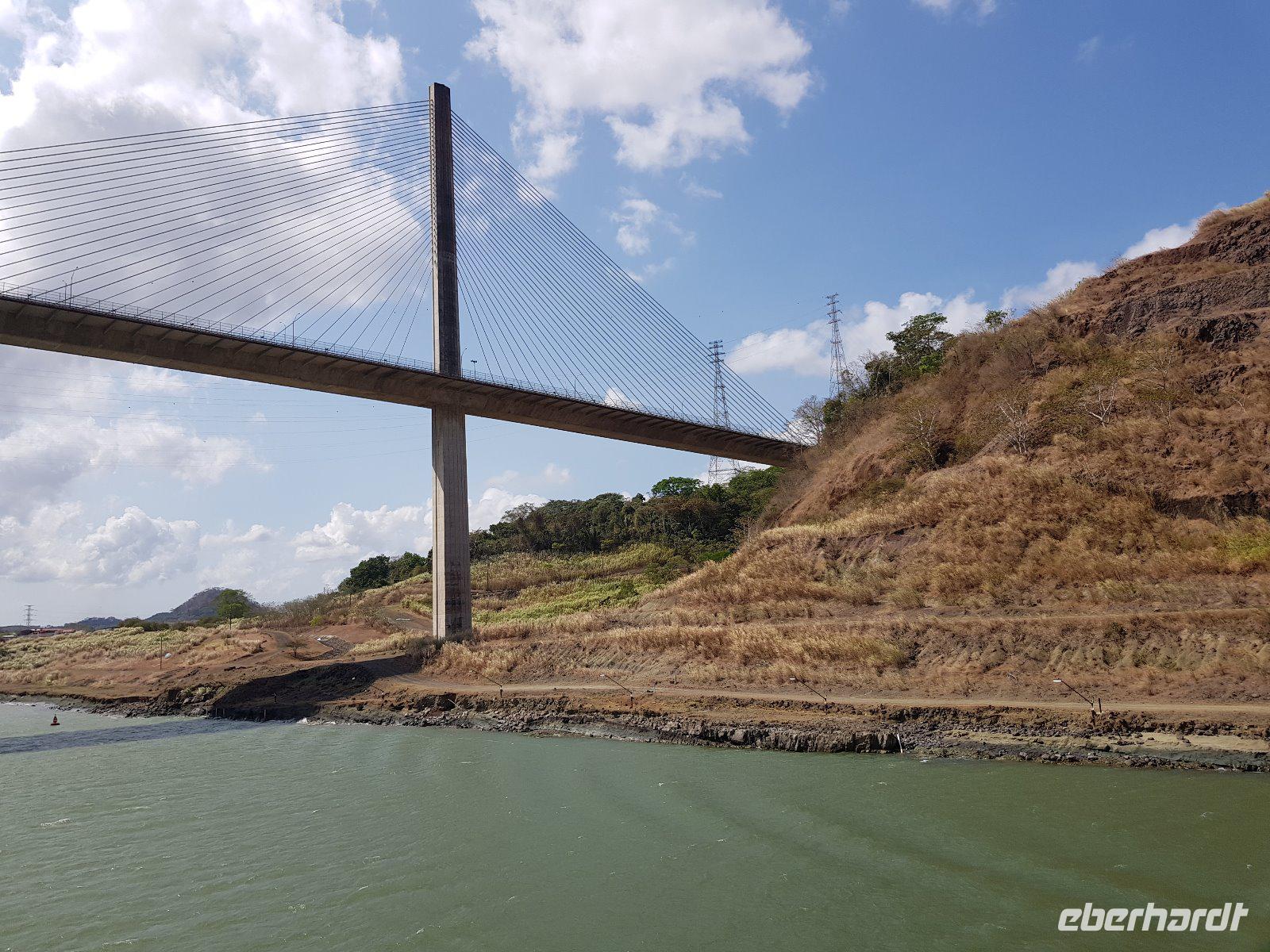 Um 07:30 Uhr dürfen wir dann schon die erste Schleuse von Miraflores passieren. Wir fahren durch die alte Schleuse während neben uns die großen Containerschiffe bereits die neue passieren. In der alten Schleuse werden wir zwei Mal angehoben, um auf den Miraflores See zu gelangen. Kurz darauf fahren wir auch schon in die zweite Schleuse- die Pedro Miguel Schleuse ein. Hier werden wir nur einmal angehoben, um dann auf in den Culebra Abschnitt einzufahren. Dieser Abschnitt ist die engste Stelle des Kanals mit einer Länge von 12,7km. An diesem Stück sind die Franzosen damals verzweifelt, als sie versucht haben, sich ihren Weg durch Felsen und Kalkgestein zu schlagen. Mit dem Material was hier abgetragen wurde, hätten 63 ägyptischen Pyramiden gebaut werden können. Hat man natürlich nicht, sondern das abgetragene Gestein wurde zum Straßenbau genutzt.