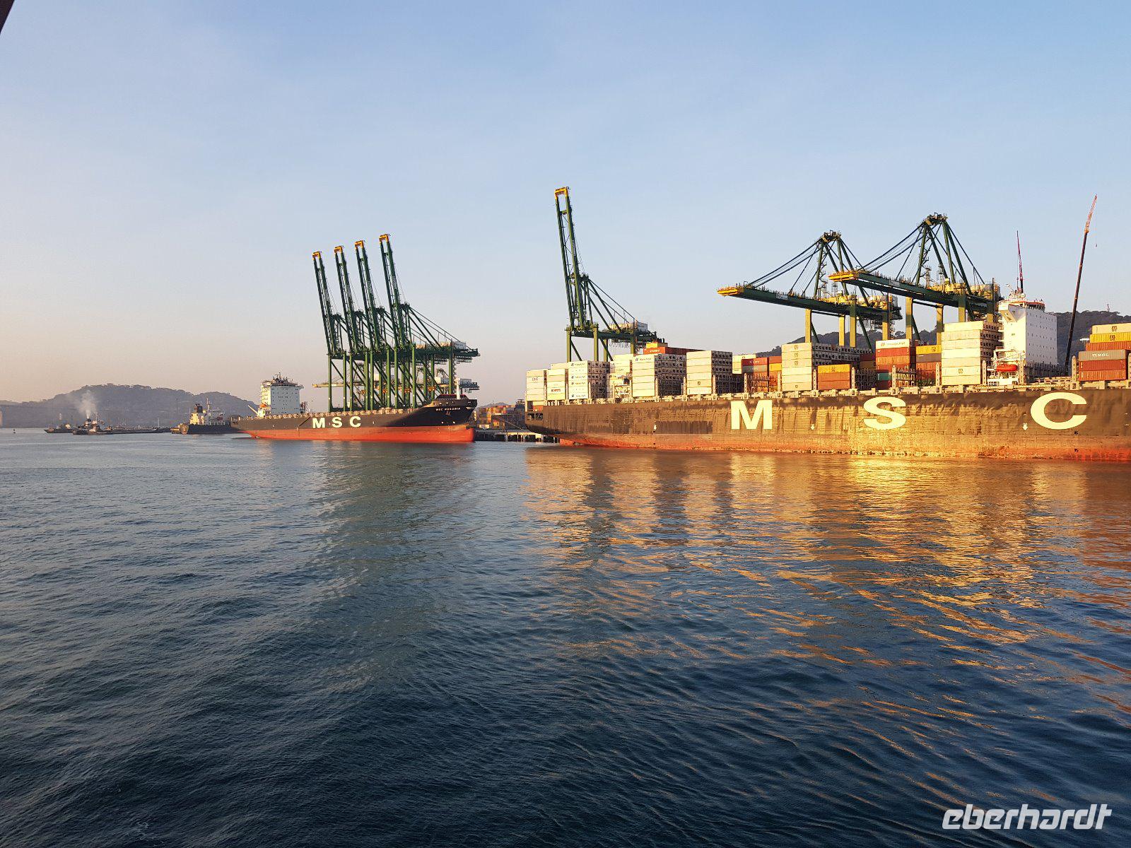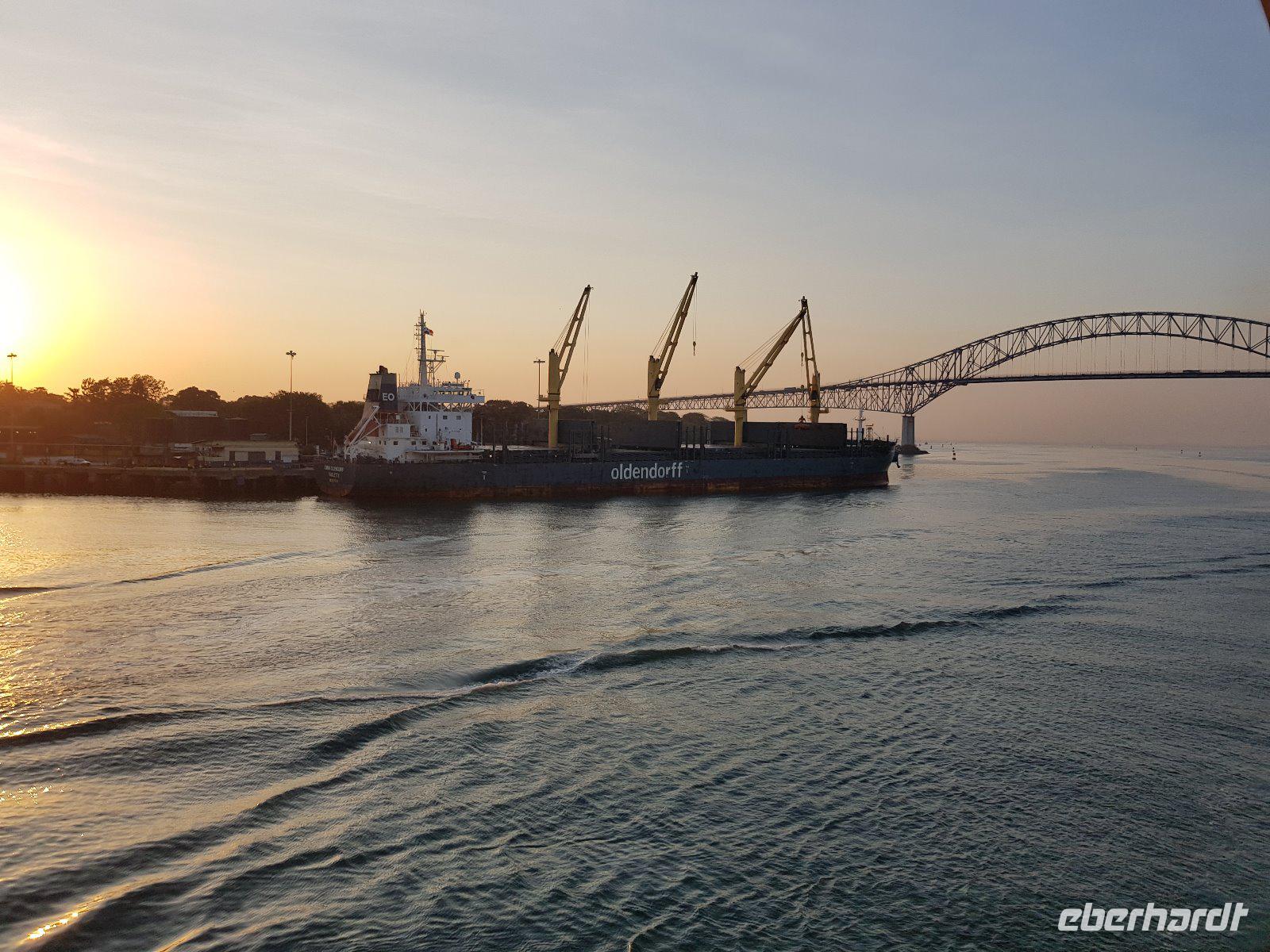 Nach der letzten Kammer, die uns wieder auf Meereshöhe bringt, sind es nur noch 4km bis in das Karibische Meer vorbei am Hafen von Balbao. Insgesamt war es ein aufregender Tag, an dem wir so viel Land wie an keinen anderen See Tag gesehen haben. Die Durchfahrt der wohl bekanntesten Abkürzung der Welt ist auf jeden Fall das Highlight der Reise und ein einmaliges Erlebnis.
