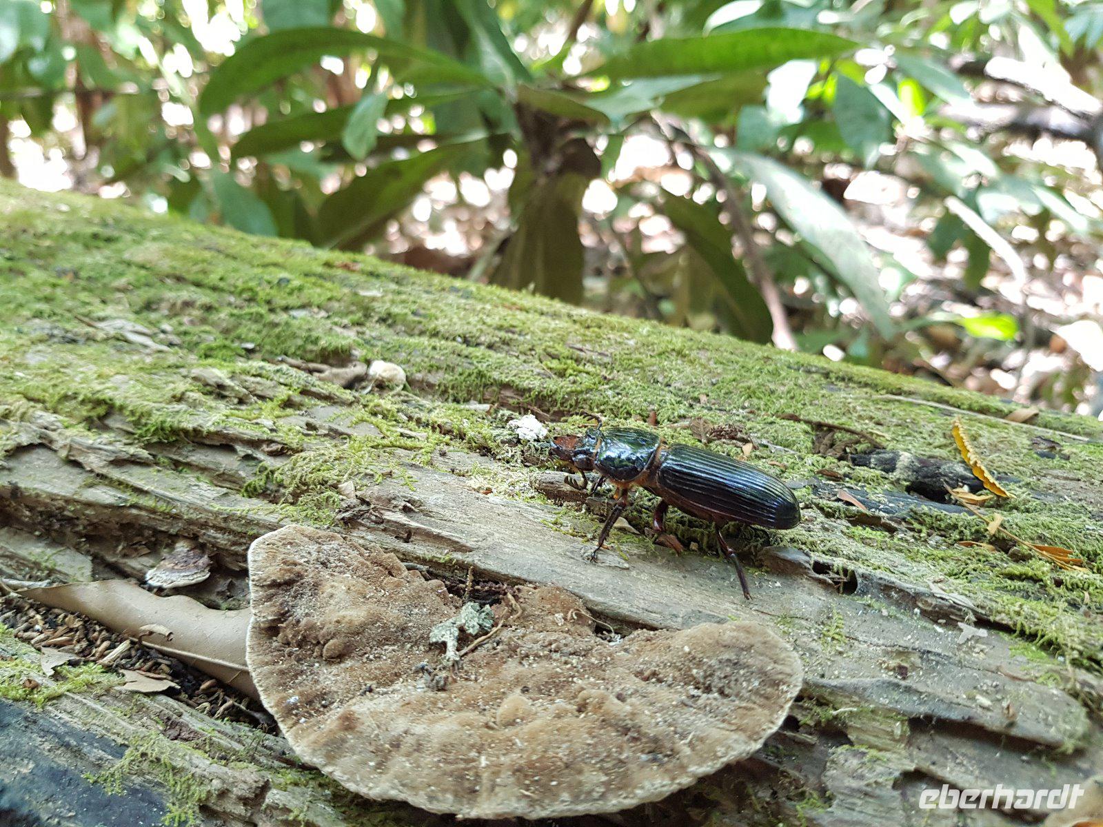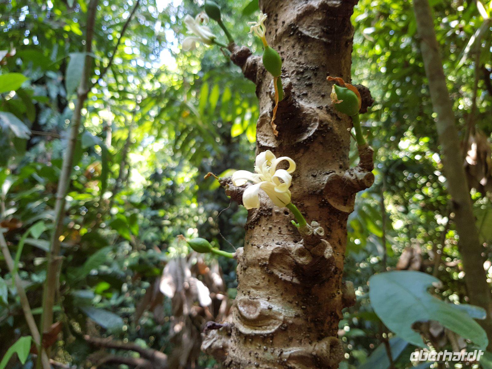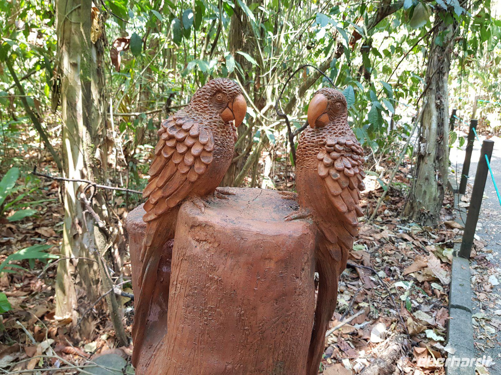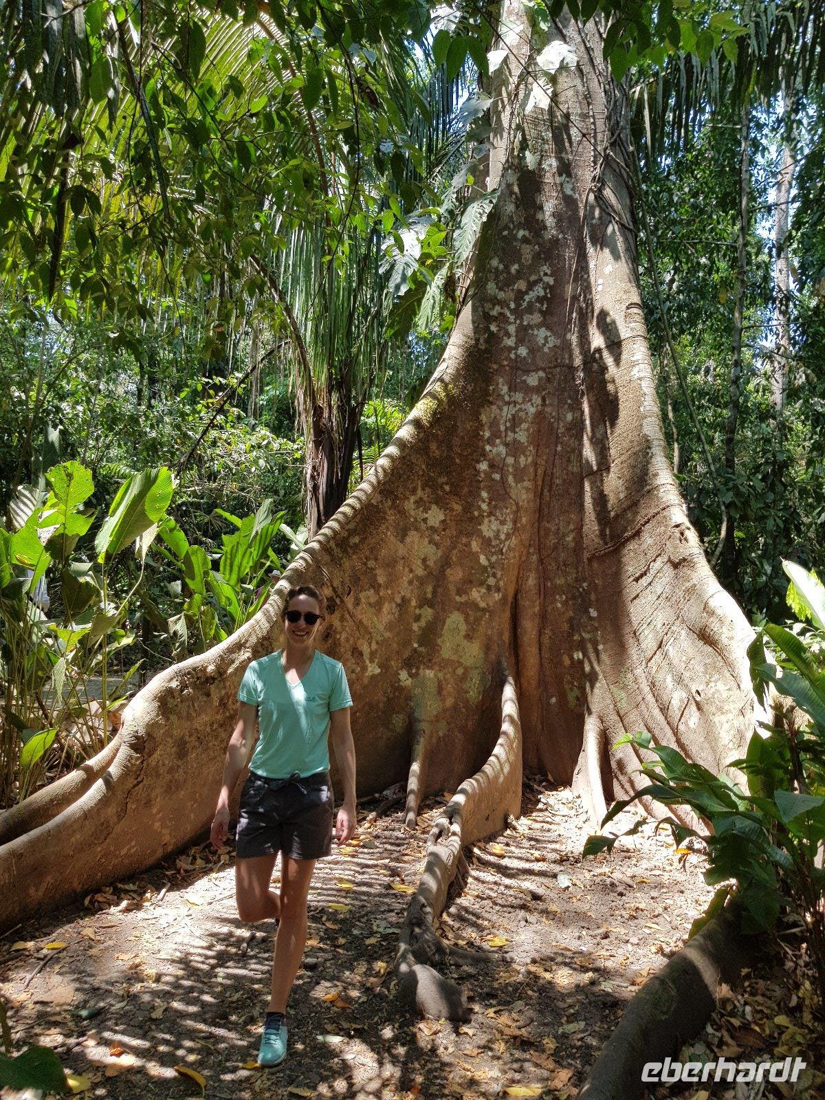 Angekommen starten wir unseren Spaziergang auf gut befestigten Untergrund und halten immer wieder Ausschau nach den beliebten Aras. Hören tut man sie sehr gut, nur mit dem finden tun wir uns schwer, da die Aras vorzugsweise sehr hoch in den Bäumen leben. Von Dezember bis April nisten die Aras in großen Baumhöhlen. So eine haben wir dann schließlich auch gefunden und konnten sogar Mutter Ara erspähen. Lange Zeit waren die Aras durch den illegalen Handel fast ausgestorben. Mittlerweile hat sich der Bestand erholt - wohl auch weil die Einwohner erkannt haben, dass es sehr wichtig ist diese sensible und langlebige Tierart zu schützen und zu erhalten.