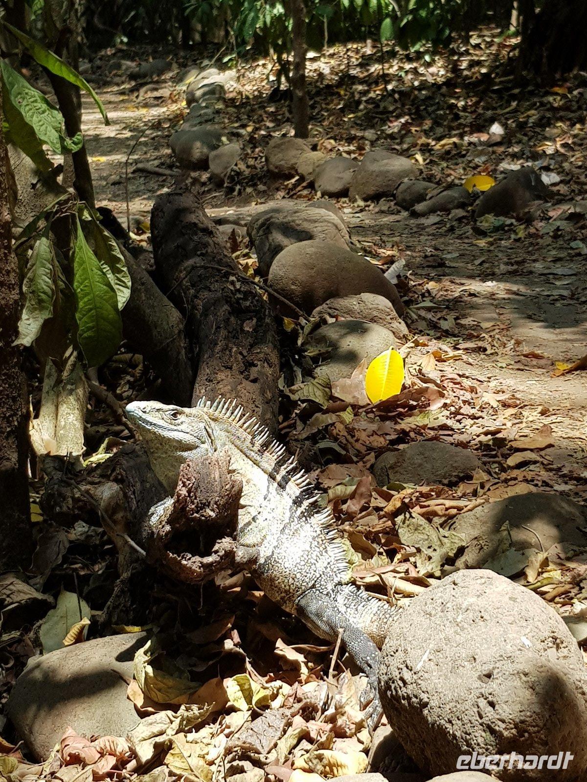 Interessant sind auch die weißen Mangroven (Bravaisa integegerrima), deren Wurzeln oberirdisch wachsen und bis zu 6m hoch werden können. Die Mangroven sind in Costa Rica stark durch die Abholzung bedroht. Uns begegnen noch Bananenbäume, Akazien und Lianen. Jede Menge Leguane, Riesenameisen, Brüllaffen und Klammeraffen in luftigen Höhen.