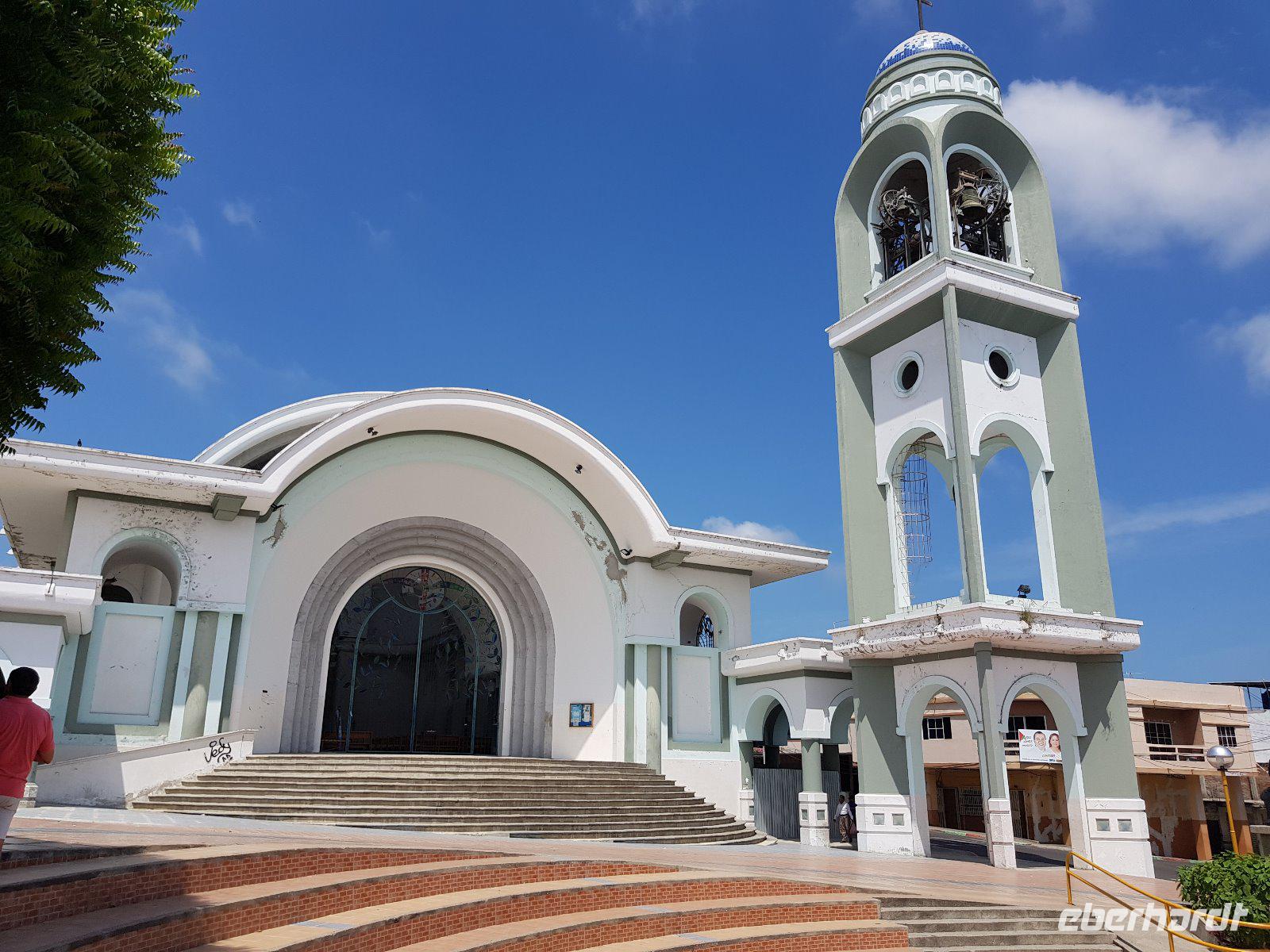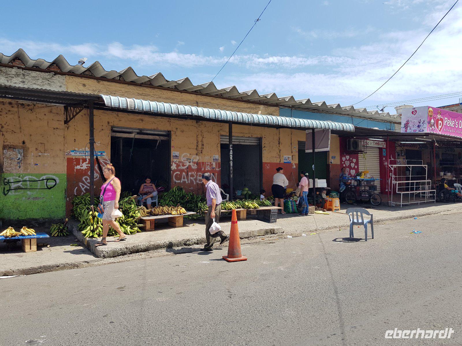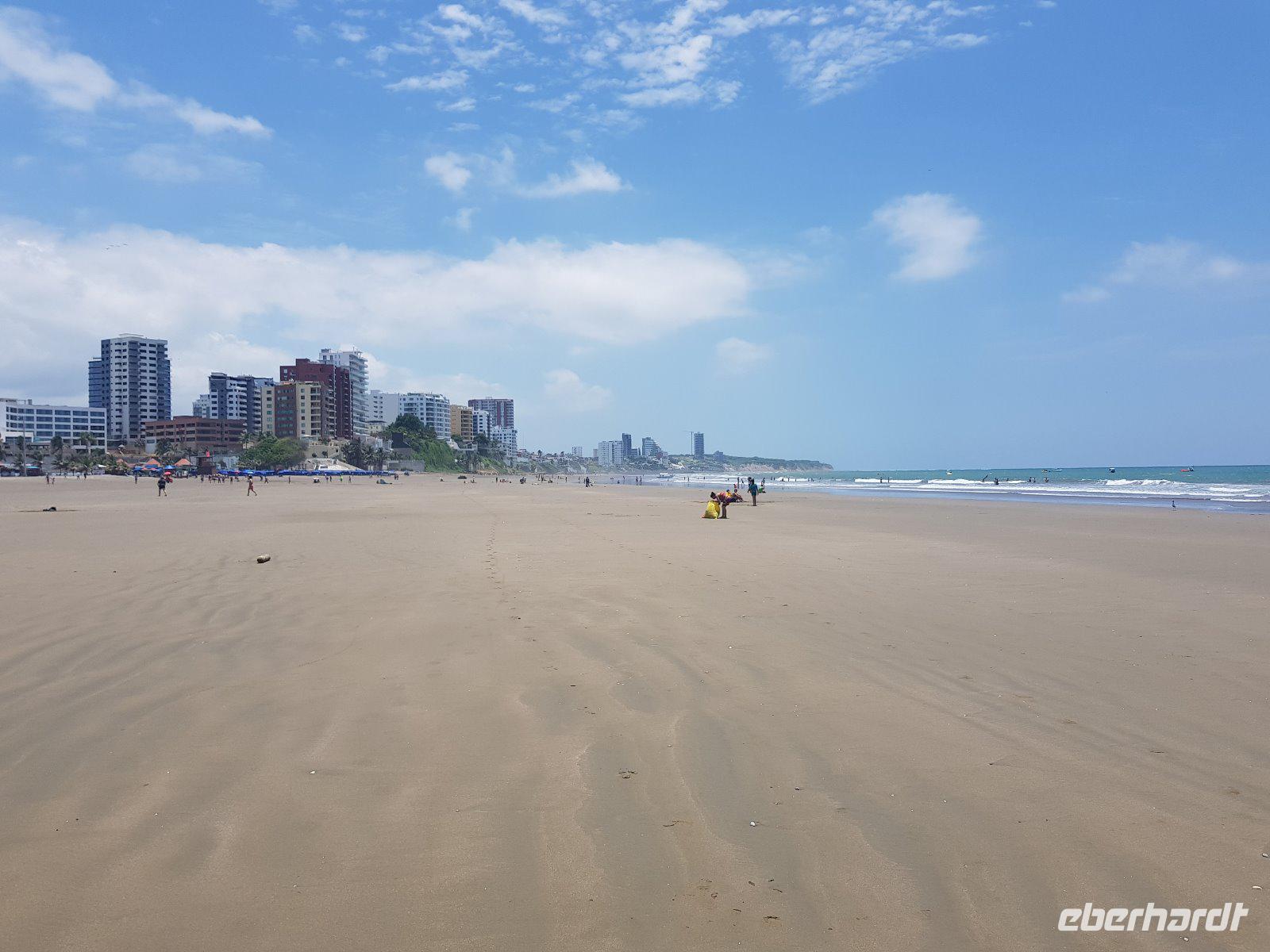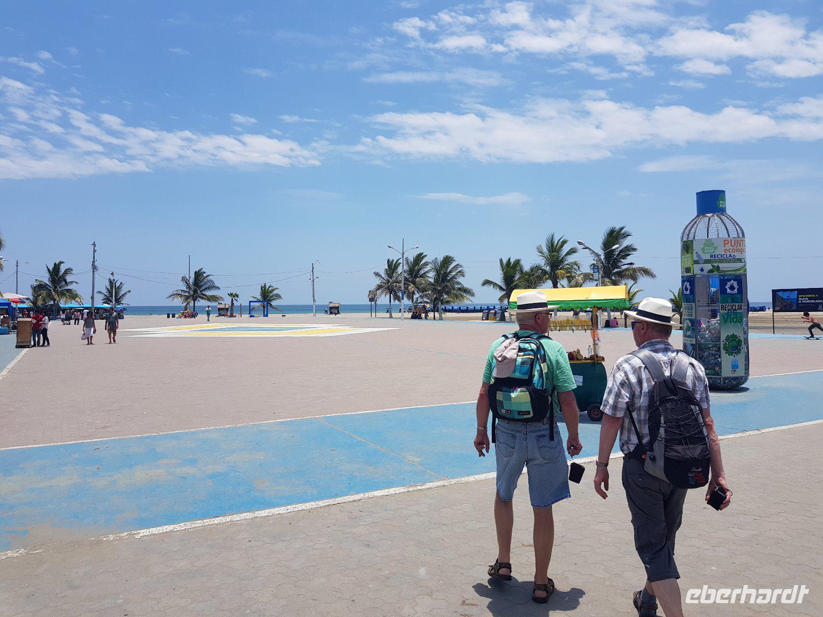 Wir legen in Manta, Ecuador an und das subtropische Klima erschlägt uns förmlich beim Verlassen des Schiffs. Bei einer Außentemperatur von knapp 30° Grad und einer Luftfeuchtigkeit bei 80% bleibt kein Kleidungsstück trocken. Besonders hier in der Nähe des Äquators ist die Sonne sehr intensiv. Ohne Kopfbedeckung ist ein Spaziergang durch Manta unmöglich.