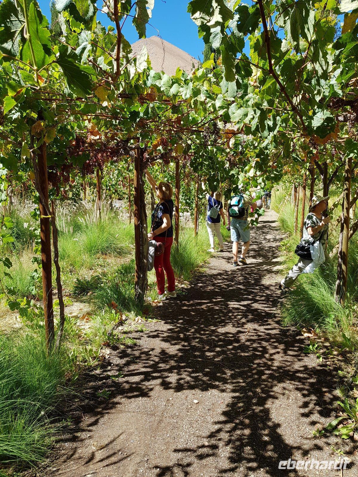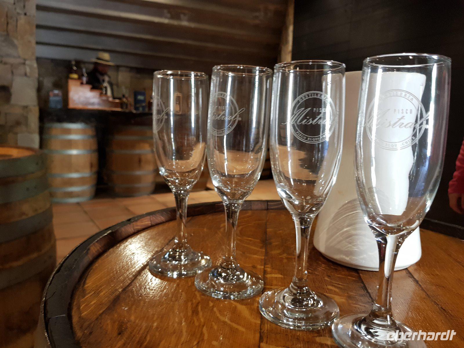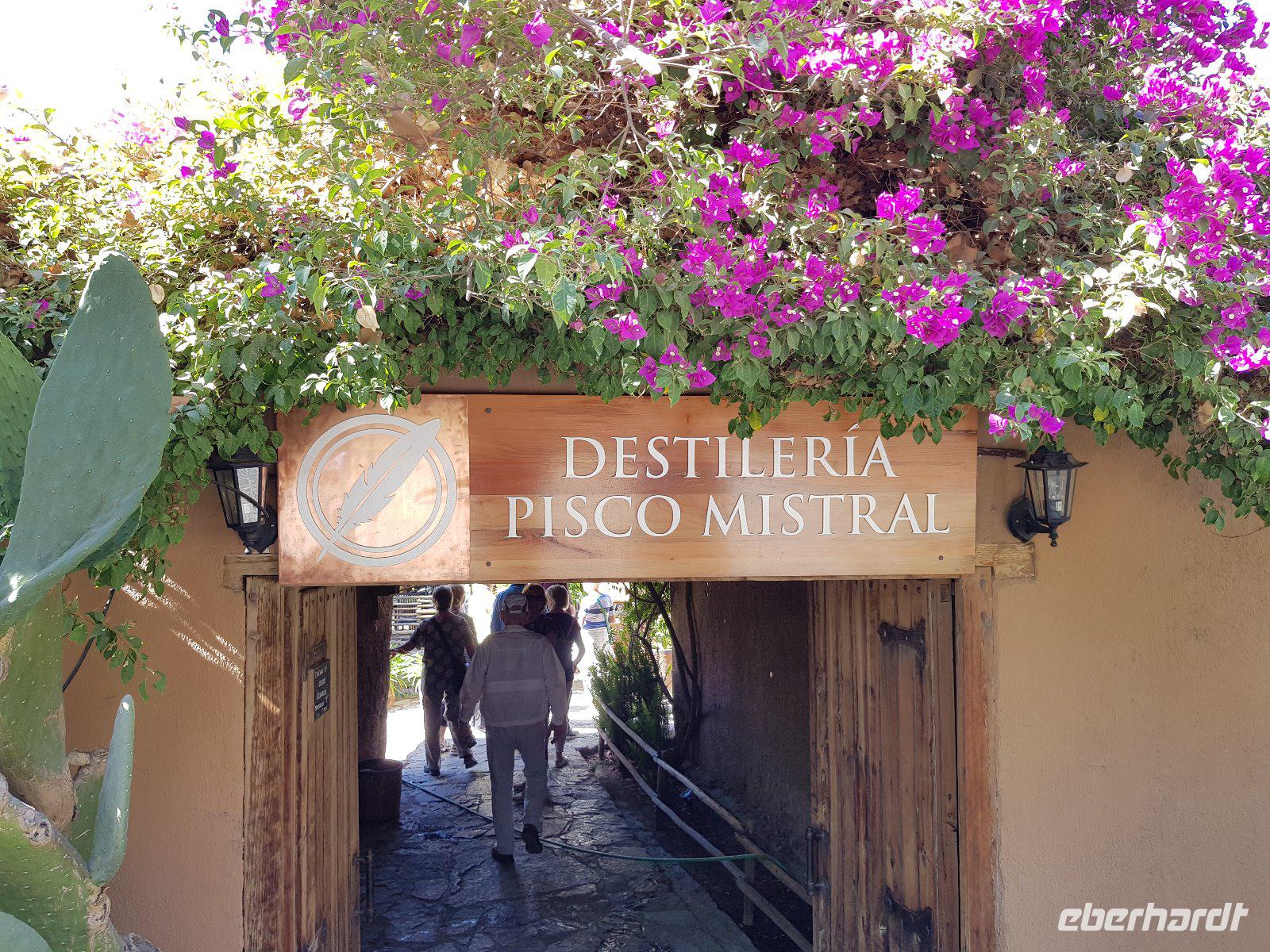 Wir erreichen kurz darauf unser Endziel - die Destlería Pisco Mistral in Pisco Elqui. Hier machen wir eine Führung durch die Destillerie und erfahren wie früher und heute der berühmte Pisco hergestellt wird. Pisco ist das national Getränk Chiles und ein Schnaps, der dem Grappa oder auch dem Obstler sehr ähnelt. Er wird aus fünf Traubensorten hergestellt und man unterscheidet den Pisco nach dem Alkoholgehalt: Regular (30-35% Vol.), Special (35-40% Vol.), Reserve (40-43% Vol.) und Grand (ab 43%). Wir probieren auch die Trauben direkt von den Weinreben, welche einfach herrlich süß durch die vielen Sonnenstunden sind. Danach dürfen wir natürlich auch noch den edlen Tropfen selbst probieren. Es werden uns drei verschiedene Sorten Pisco von Regular bis Grand mit unterschiedlicher Reife gereicht.