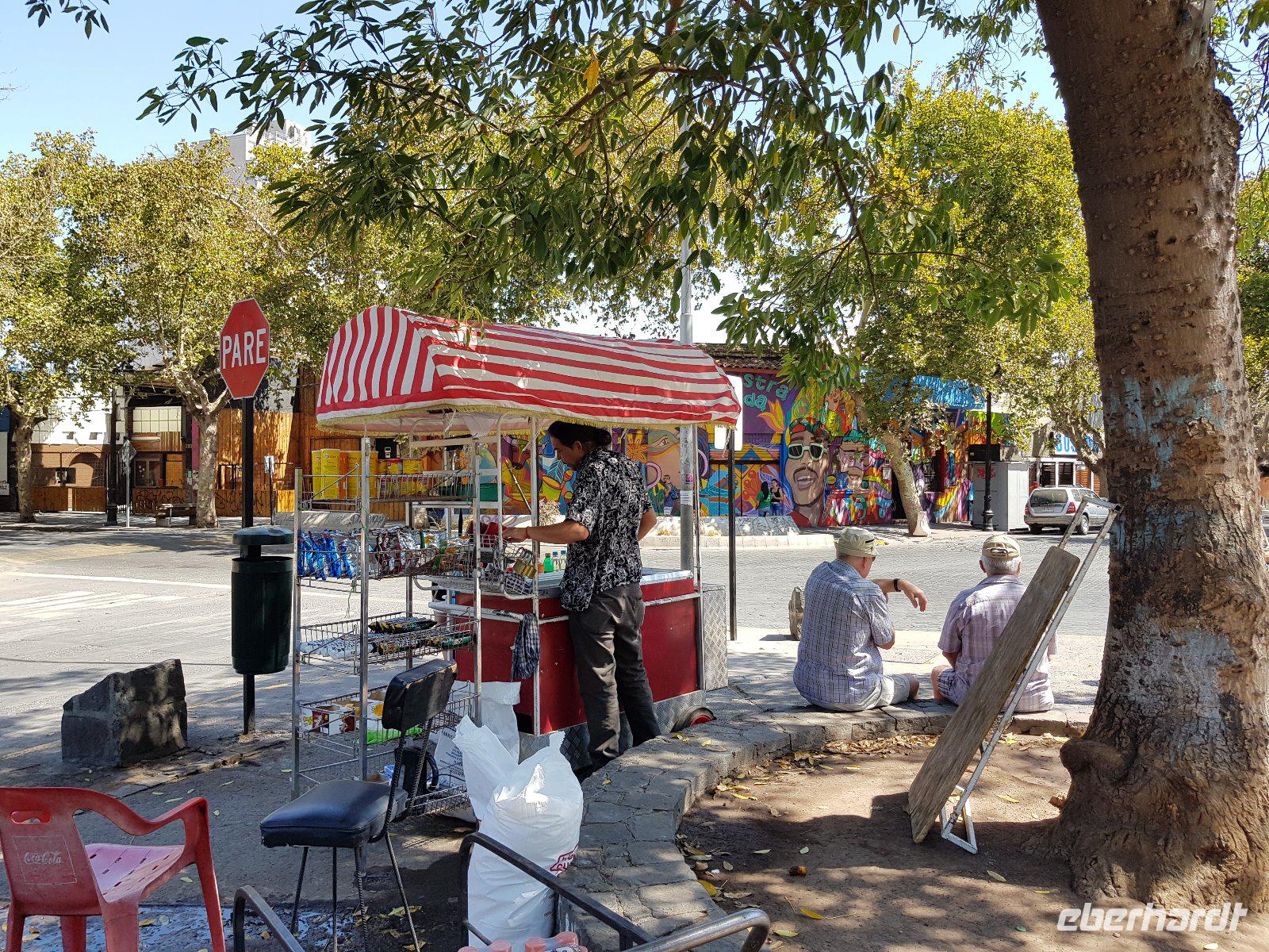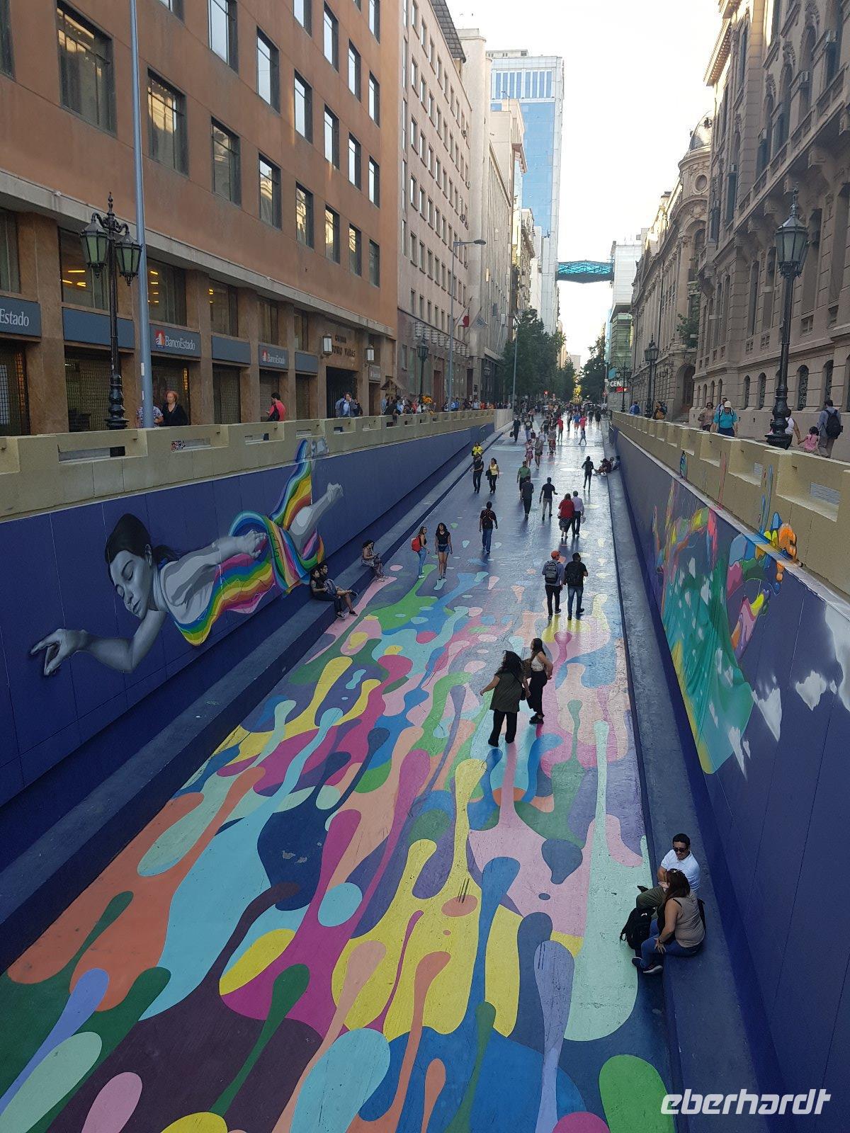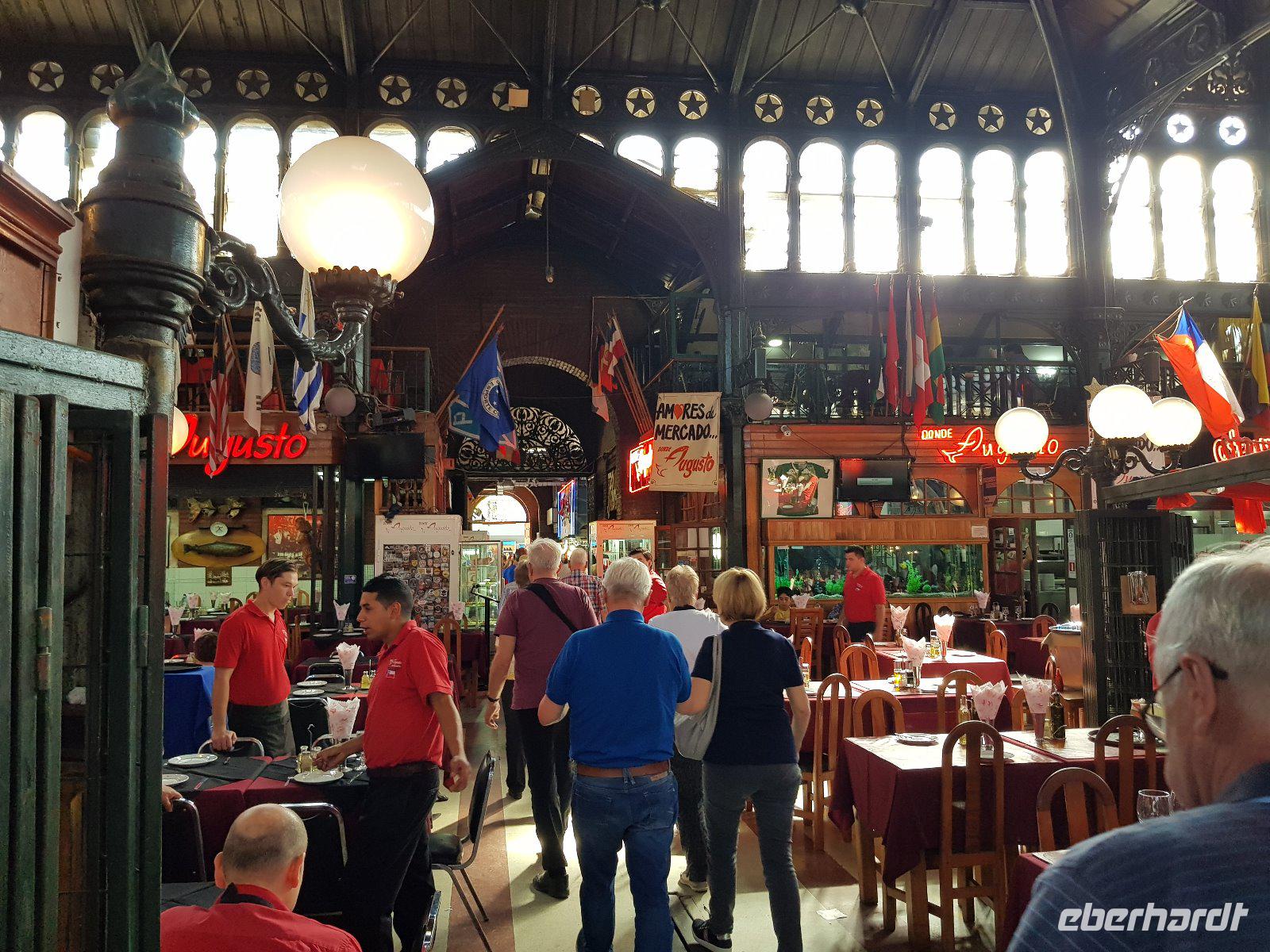 Anschließend wartet auf uns ein Mittagessen mit frischem Fisch (Ceviche) in der Markthalle, welche auch zum bummeln einlädt. Juliane führt uns dann weiter durch den zentralen Kern der Stadt, vorbei an der Kathedrale Metropolitana, den Platz de Armas mit dem Reiterdenkmal des spanischen Eroberers Don Pedro de Valdivia, durch den Finanzbezirk hin zum Regierungspalast „La Moneda", seit 1846 Sitz des Präsidenten. Der Regierungspalast ist ein Gebäude mit viel Historie: Beim Militärputsch am 11. September 1973 wurde das Gebäude bombardiert, Präsident Allende soll sich hier das Leben genommen haben.