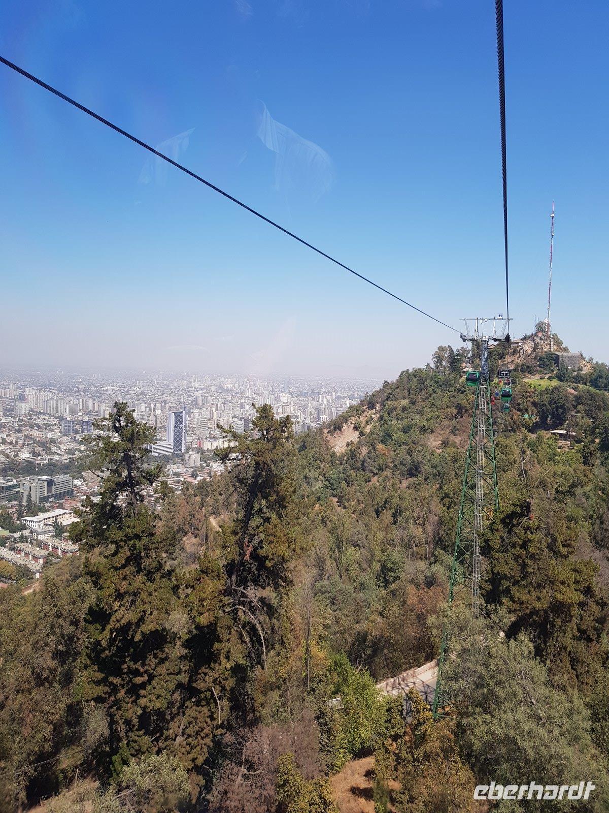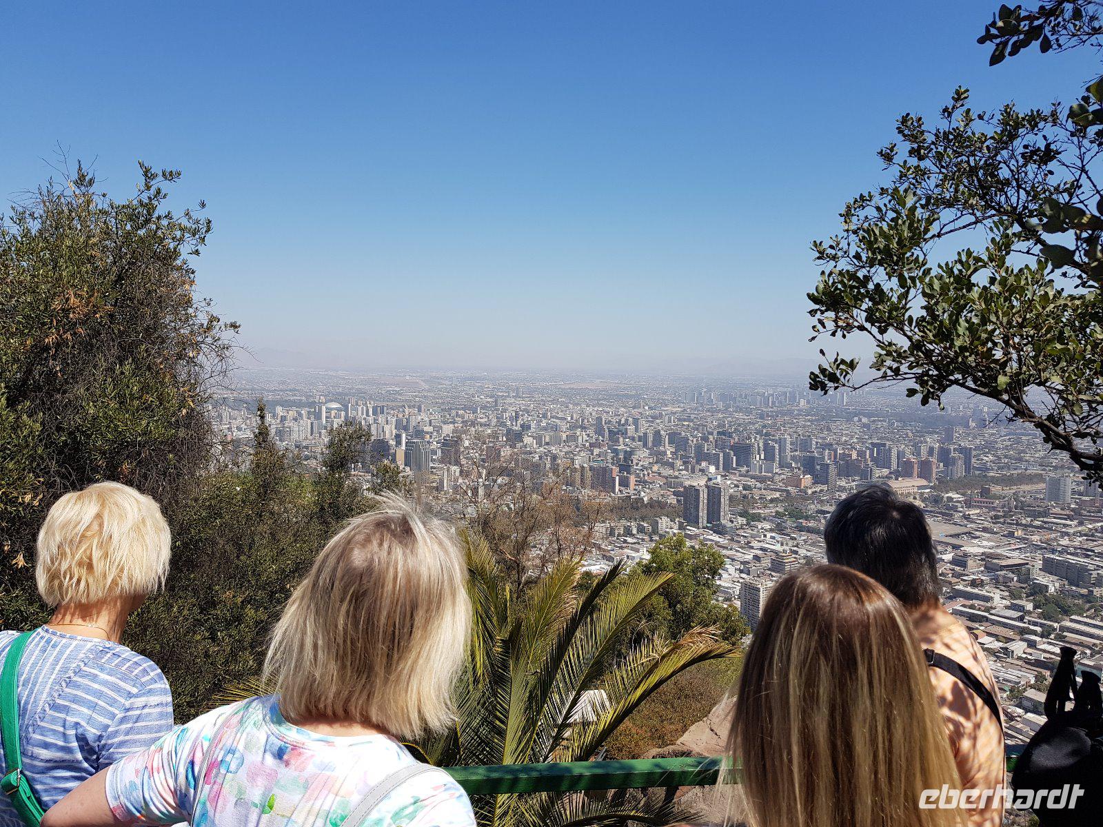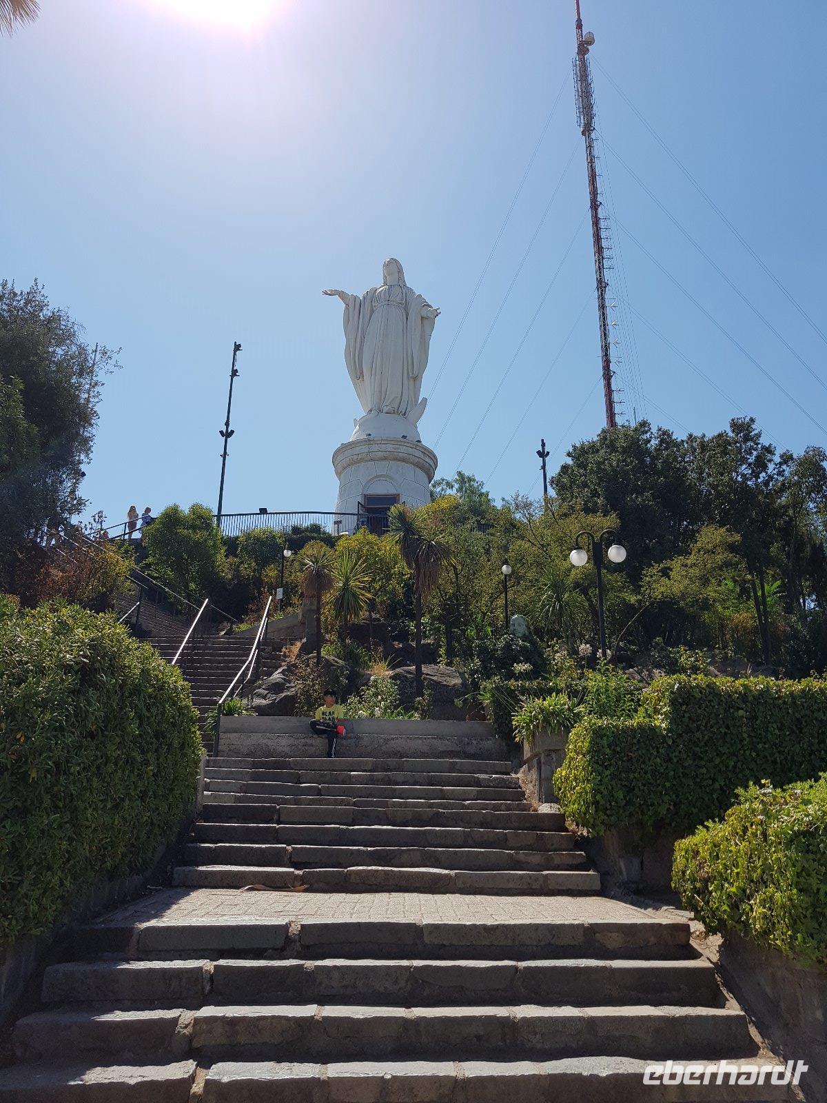 Wir erreichen die Hauptstadt Chiles am anderen Ende der Welt am Morgen und werden freundlich von unserer örtlichen Reiseleitung Juliane empfangen. Nachdem wir unsere Koffer im Hotel abgegeben und uns ein bisschen luftiger gekleidet haben bei 21° - fühlt sich direkt wie Sommer auf unserer Haut an - geht es für uns mit der Seilbahn auf den Hügel Cerro San Cristobál auf 800m Höhe. Dort wartet auf uns die Statue der Maria Peregrina und ein atemberaubender Blick über die Stadt. Runter fahren wir mit der historischen und rustikalen Zahnradbahn.