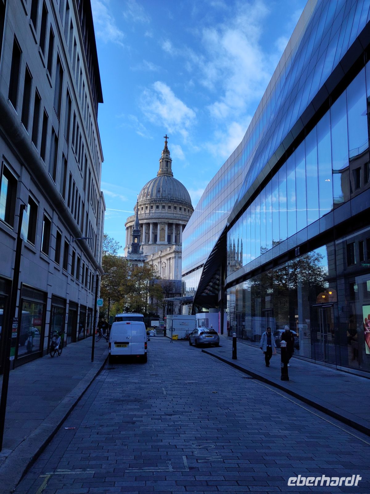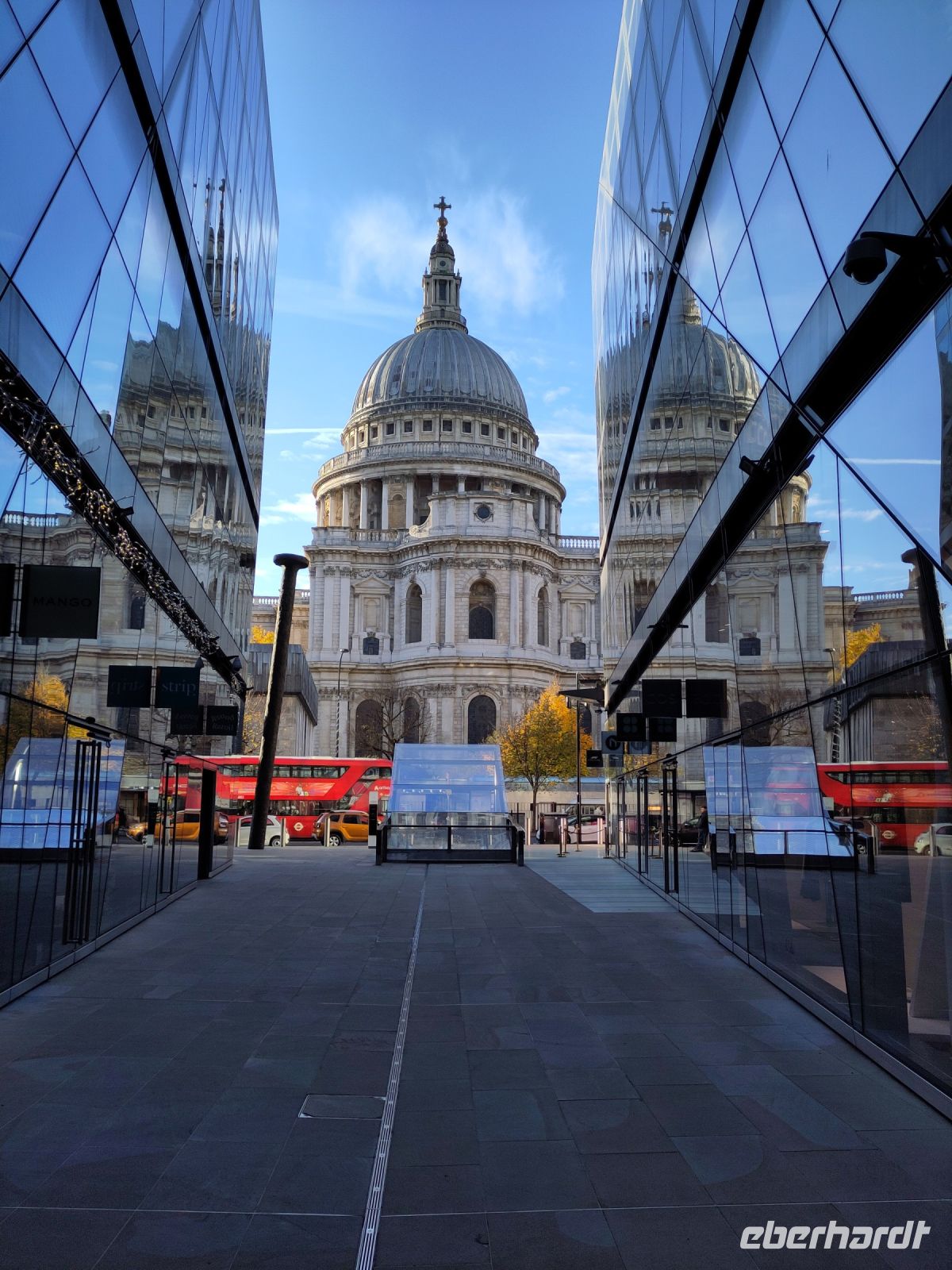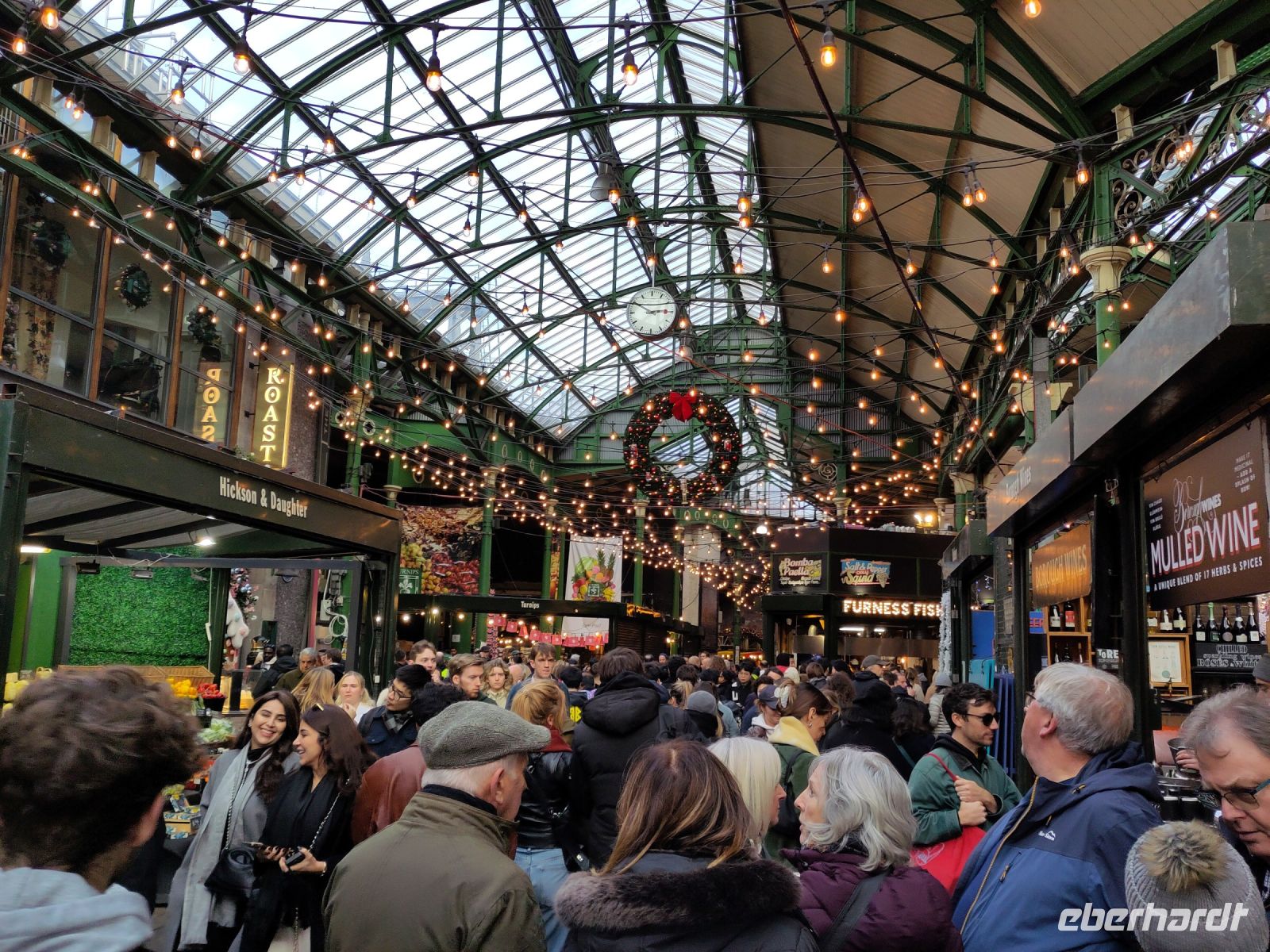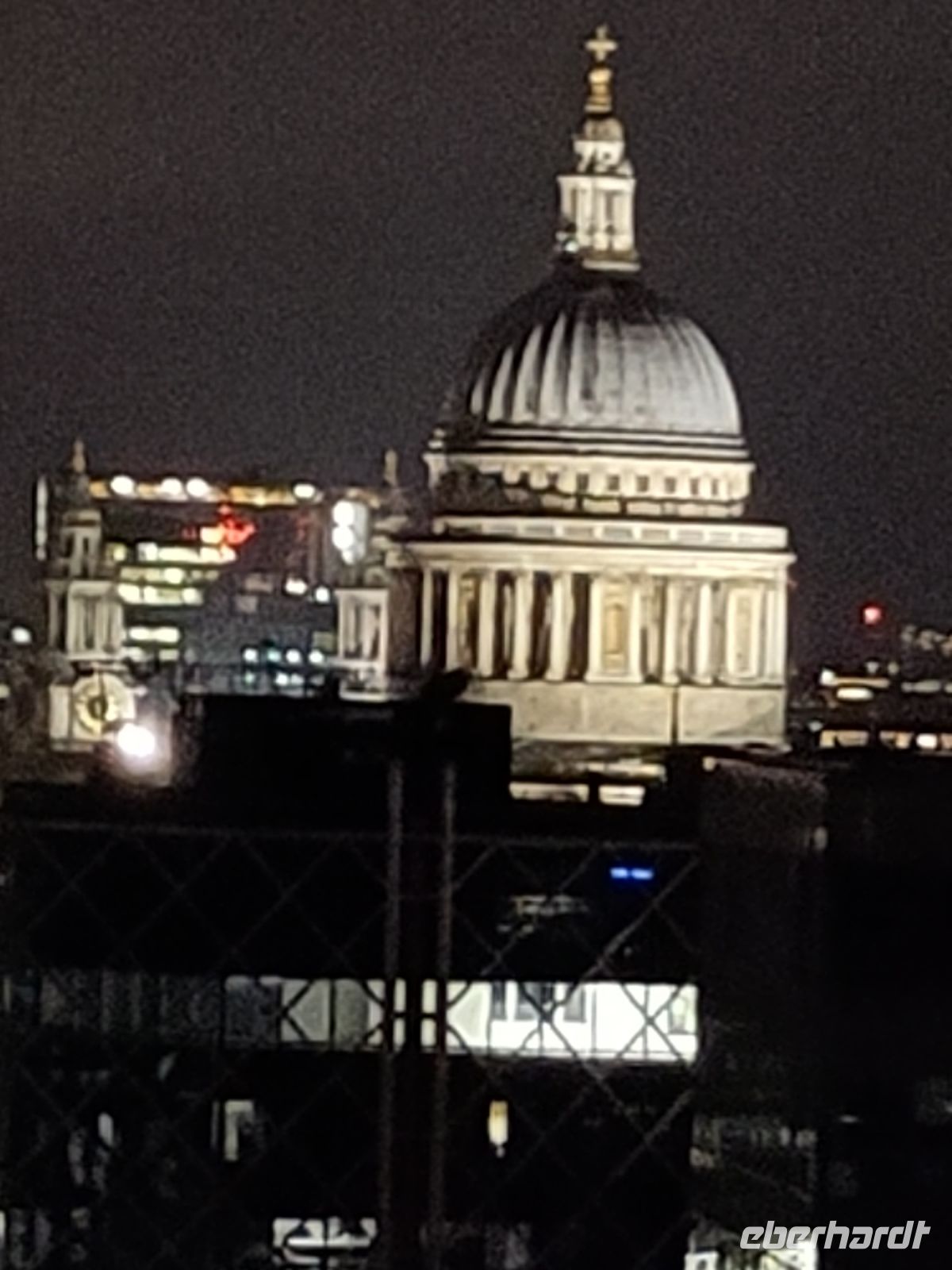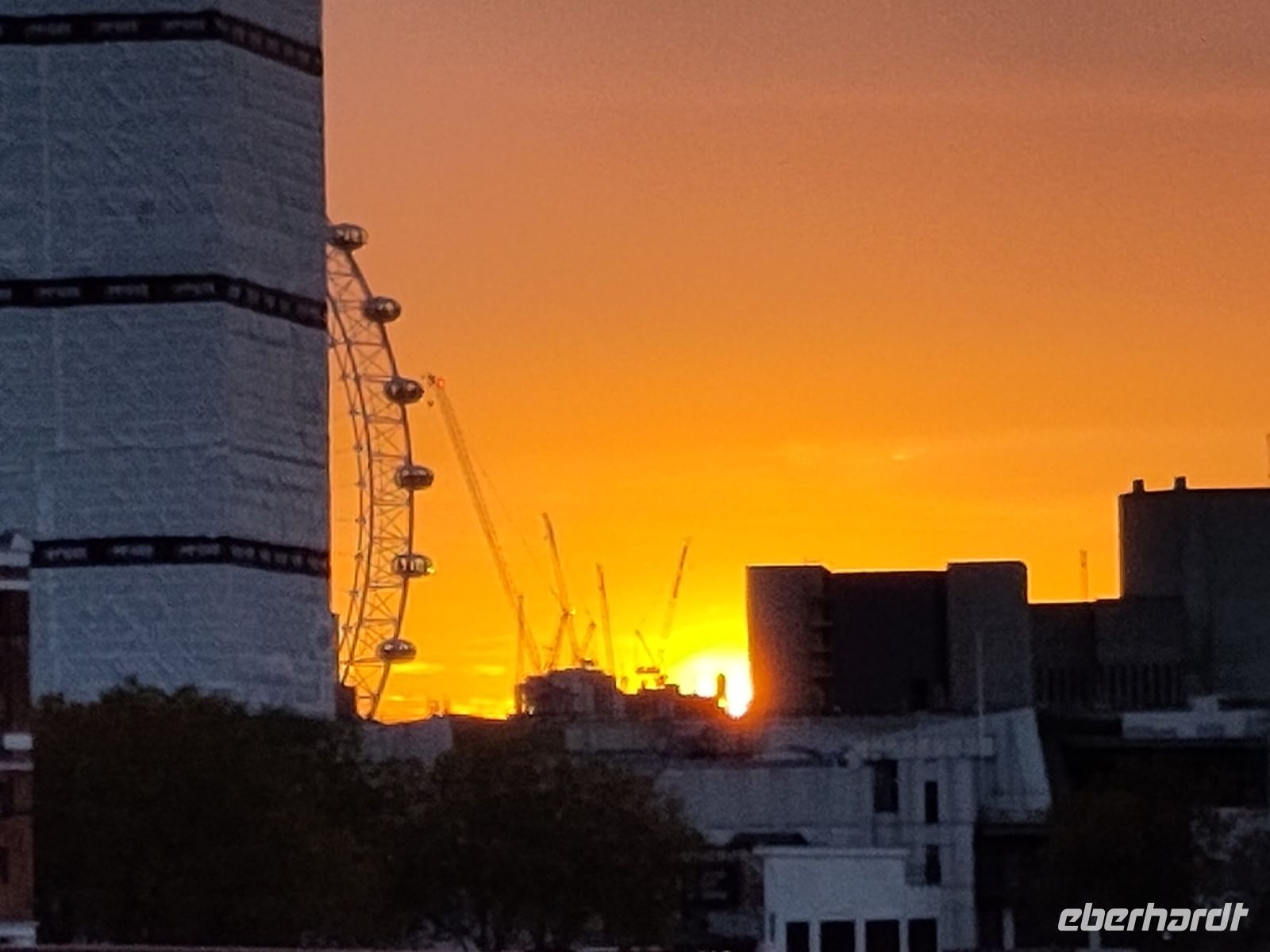 Auf die Dachterrasse des One New Change kamen wir leider nicht, dafür kostenlos - weil Sonntag - in die St. Paul's Cathedral, wobei wir nur etwa die Hälfte des Hauptschiffs besichtigen konnten, der Rest ist sonntags nicht zugänglich (wochentags 34 GBP). Mit dem Bus ging es weiter zum Borrough Market, wo wir uns gegenüber der Haustür "von Bridget Jones" (Schokolade zum Frühstück) trennten, um den Lebensmittelmarkt individuell zu erkunden. Einige hatten danach Eintrittskarten für die Ausichtsplattform auf Londons höchstem Gebäude, The Shard, andere hatten das London Eye gebucht, das Riesenrad gegenüber der Houses of Parliament, womit sie in den Sonnenuntergang fuhren.