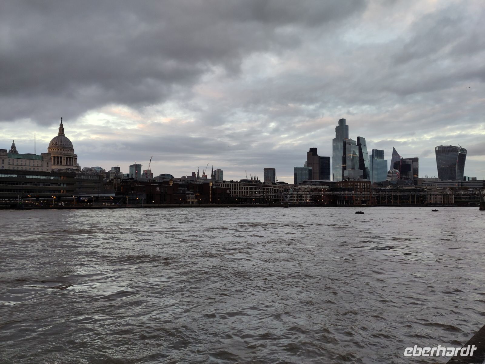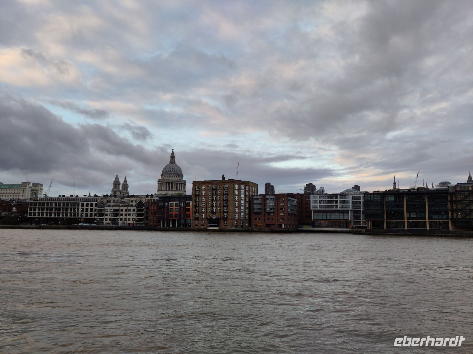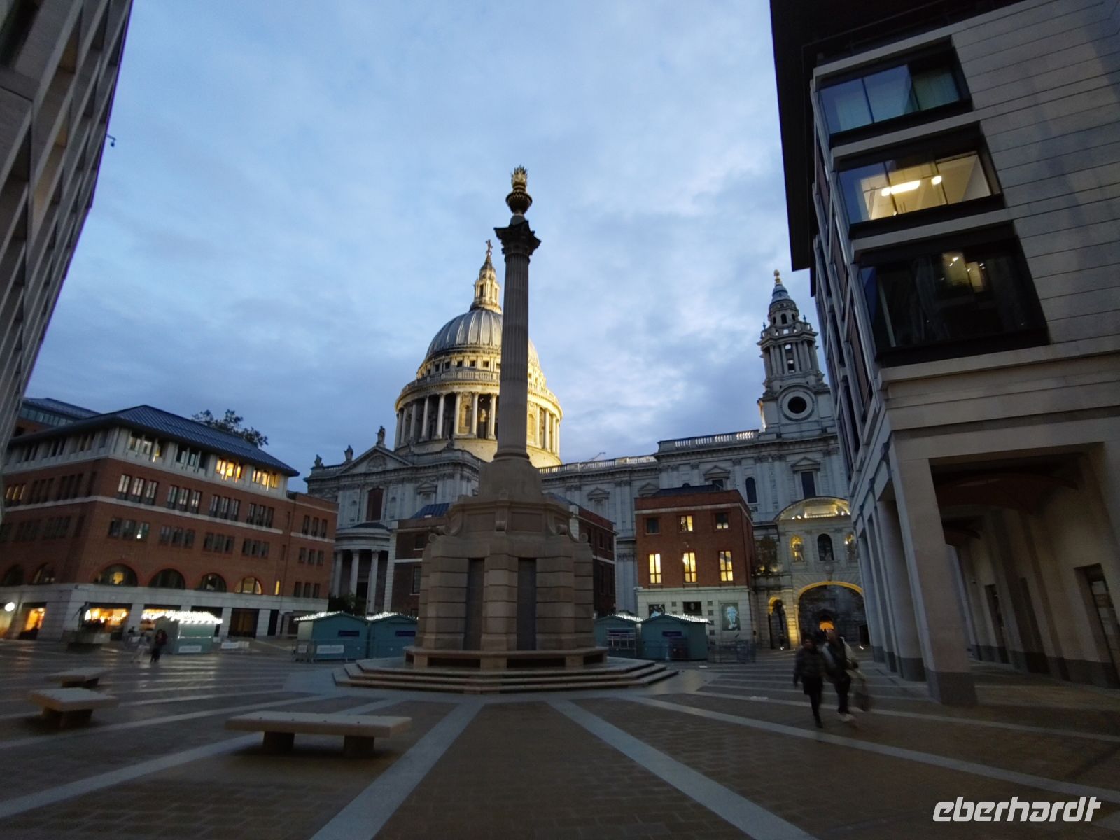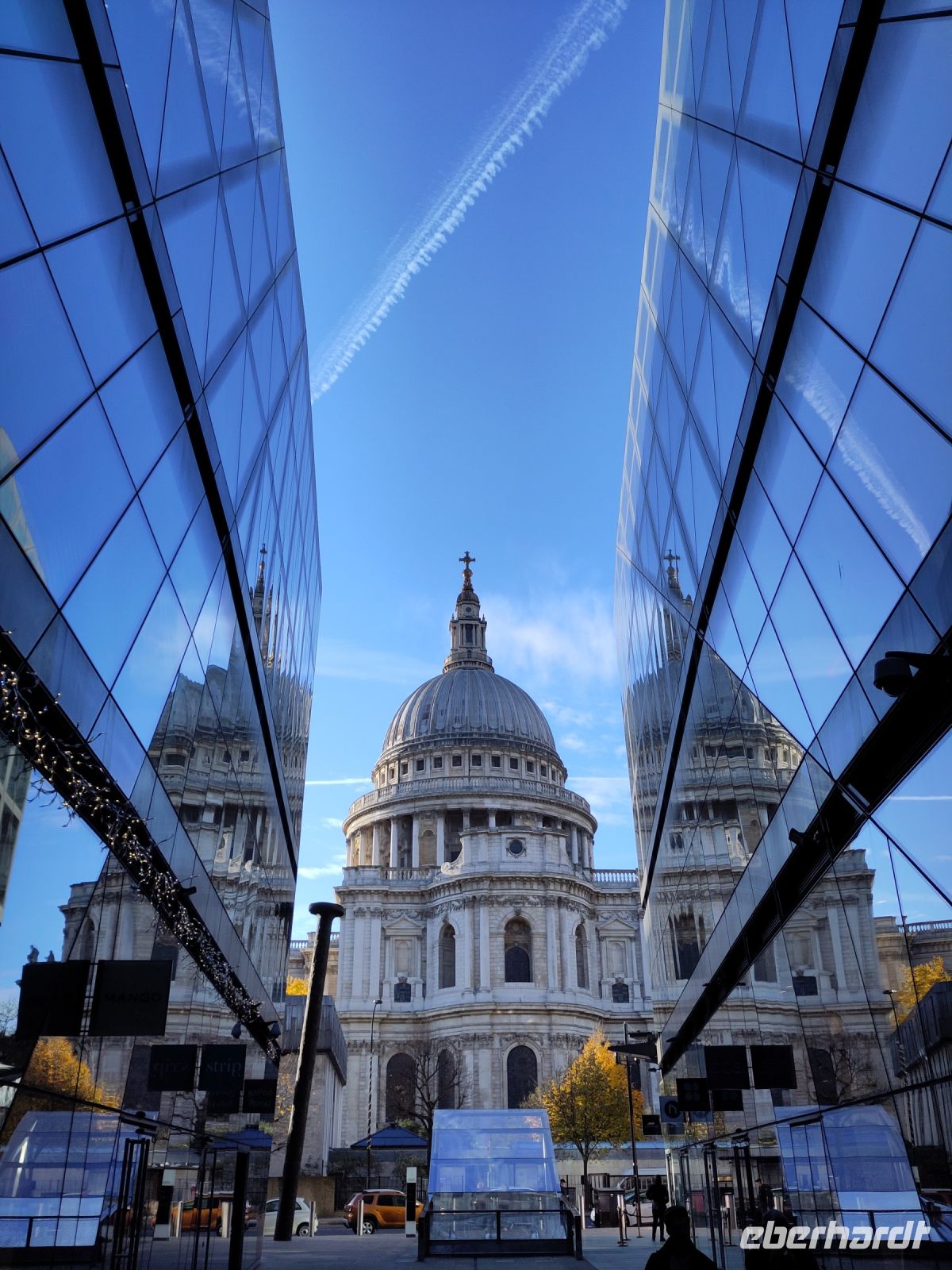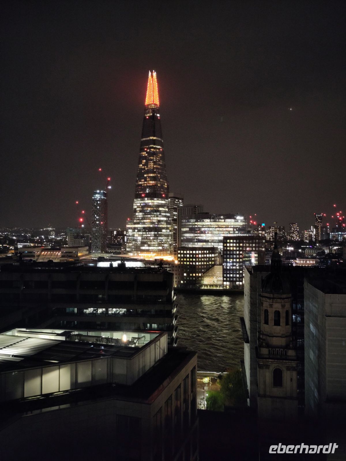 Auf die Dachterrasse des One New Change kamen wir leider nicht, dafür kostenlos - weil Sonntag - in die St. Paul's Cathedral, wobei wir nur etwa die Hälfte des Hauptschiffs besichtigen konnten, der Rest ist sonntags nicht zugänglich (wochentags 34 GBP). Mit dem Bus ging es weiter zum Borrough Market, wo wir uns gegenüber der Haustür "von Bridget Jones" (Schokolade zum Frühstück) trennten, um den Lebensmittelmarkt individuell zu erkunden. Einige hatten danach Eintrittskarten für die Ausichtsplattform auf Londons höchstem Gebäude, The Shard, andere hatten das London Eye gebucht, das Riesenrad gegenüber der Houses of Parliament, womit sie in den Sonnenuntergang fuhren.