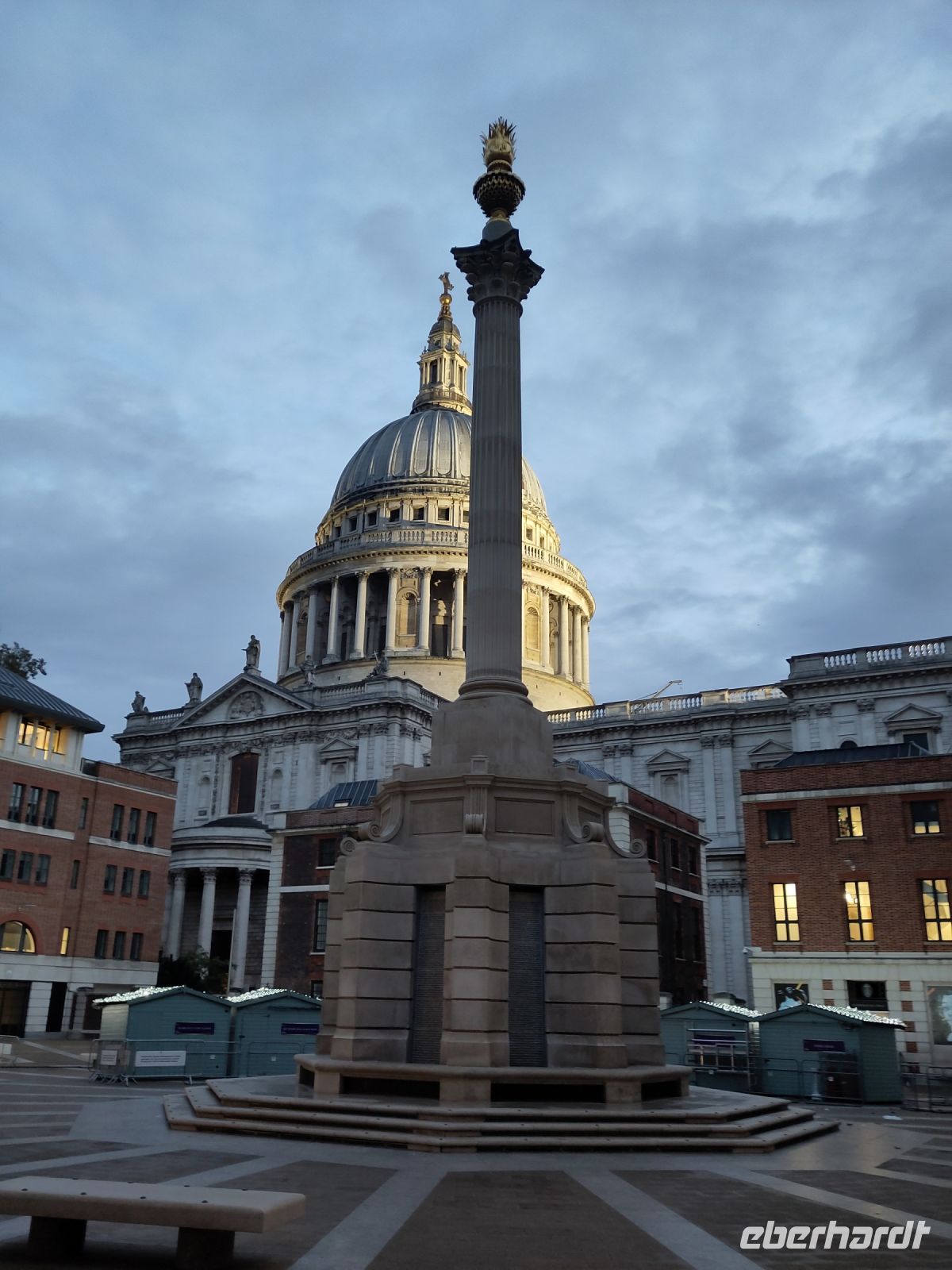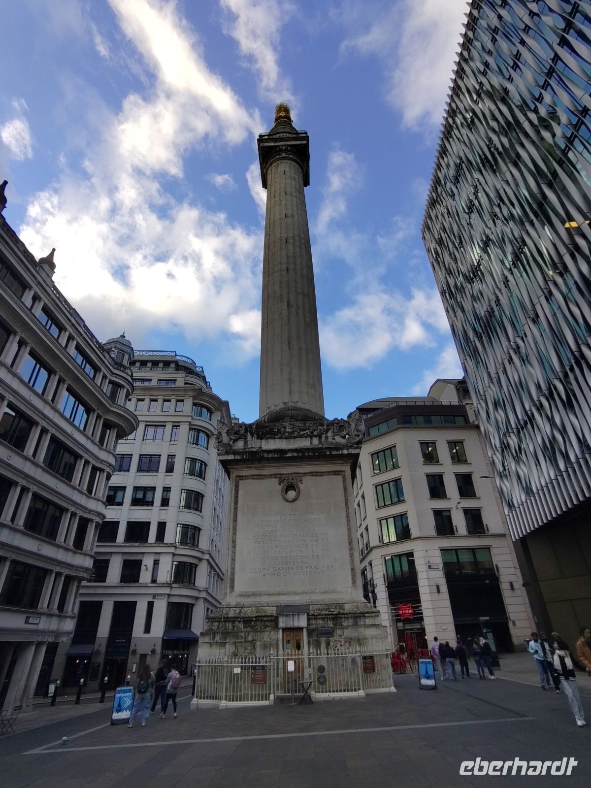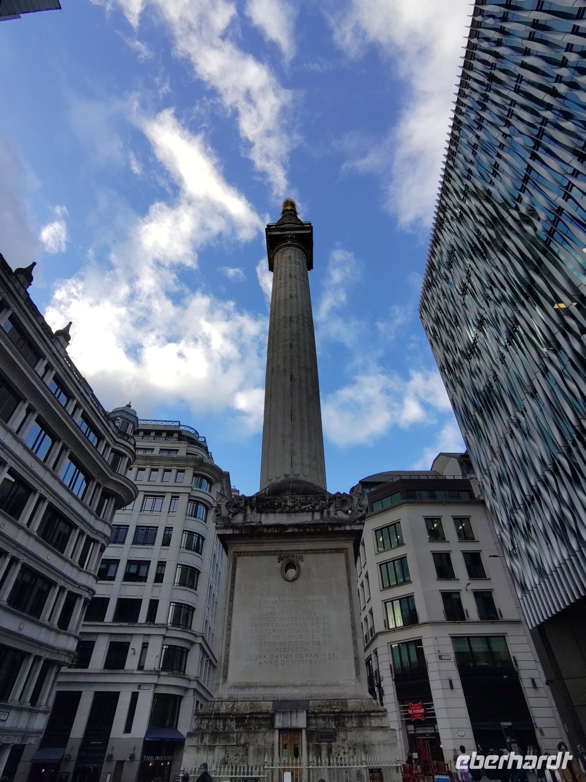 Mit der U-Bahn ging es nach London City, wo wir am Monument ausstiegen. Das Monument ist eine 68 Meter hohe Säule, die an den Brand von London 1666 erinnern soll. Sie ist auch begehbar (6 GBP) , allerdings war das nicht unser Plan und sie war auch gerade wegen Mittagspause (13:00 - 14.:00) geschlossen.