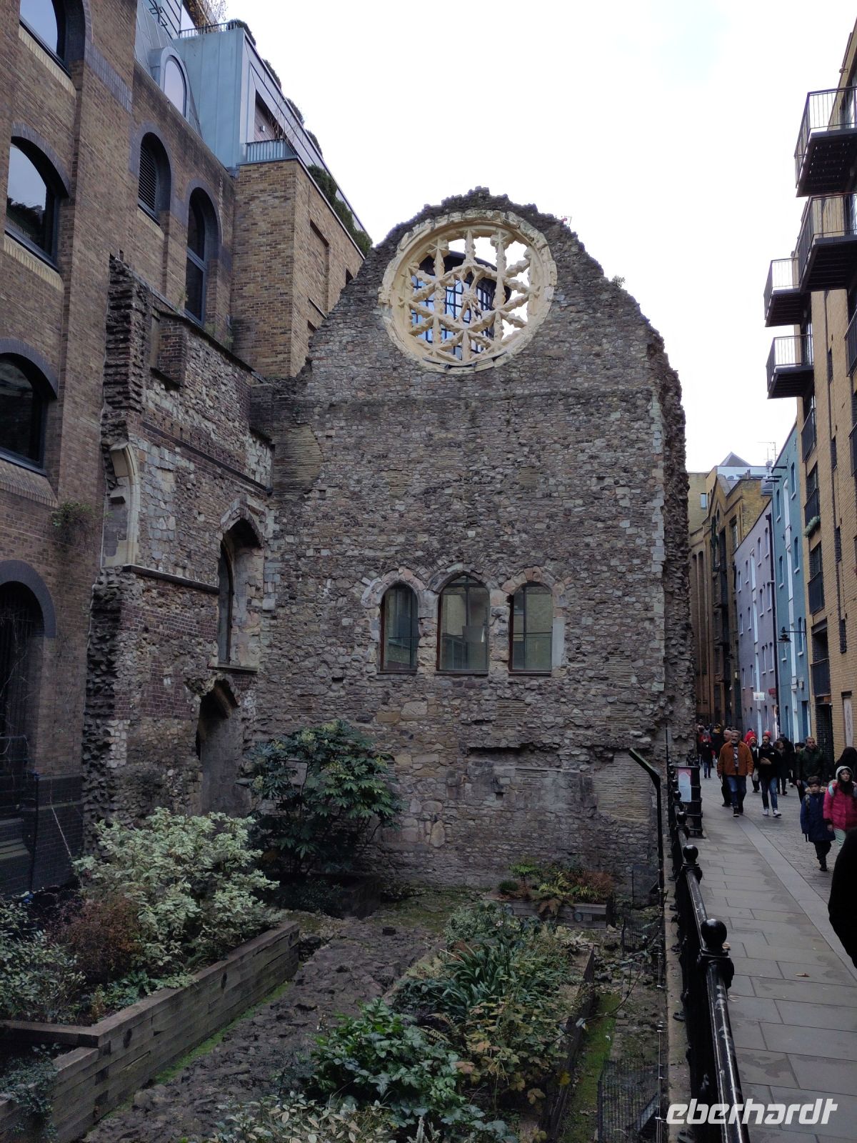 Mit Fliegern aus verschiedenen Ecken der Republik landeten wir in Heathrow oder Stansted, die größte Gruppe aus Berlin kommend in Stansted. Mit den verschiedenen Transfers kamen wir gut im Hotel an und hatten den Nachmittag Gelegenheit, uns an London heranzutasten. Einige durchquerten oder umrundeten London City, das historische Londinium, andere hatten Tower-Eintritt gebucht und wieder andere nahmen die Towerbridge in Angriff und entdeckten - Mitte November! - einen Weihnachtsmarkt am Südufer der Themse, da wo man auf London City's Skyline mit dem historischen Tower herüberschaut. Das sollten wir in den nächsten Tagen noch sehen: Weihnachtsmärkte gibt es in London überall. Ursprünglich von Deutschen ins Königreich importiert, sind sie mittlerweile voll adaptiert. Aber es war nicht nur zu sehen, sondern auch zu hören: die bunt beleuchteten meist von "Pakistanern" gefahrenen Fahrradrikschas, die sonst - außer mit ihrer grell-rosa-lilanen Beleuchtung - mit lauter Popmusik auf sich aufmerksam machen, spielten jetzt Weihnachtslieder, darunter auch das Lied, das man eigentlich höchstens in der Weihnachtswoche ein bis zwei Mal hören möchte und danach für zwölf Monate nicht wieder: "Last Christmas, I gave you..." (Ja, ich weiß, das Lied steigt jedes Mal zu Weihnachten wieder in die Charts auf - dabei hieß die Originalfassung "Last Easter" und nichts in dem Liedtext hat w i r k l i c h einen Bezug zu Weihnachten.)