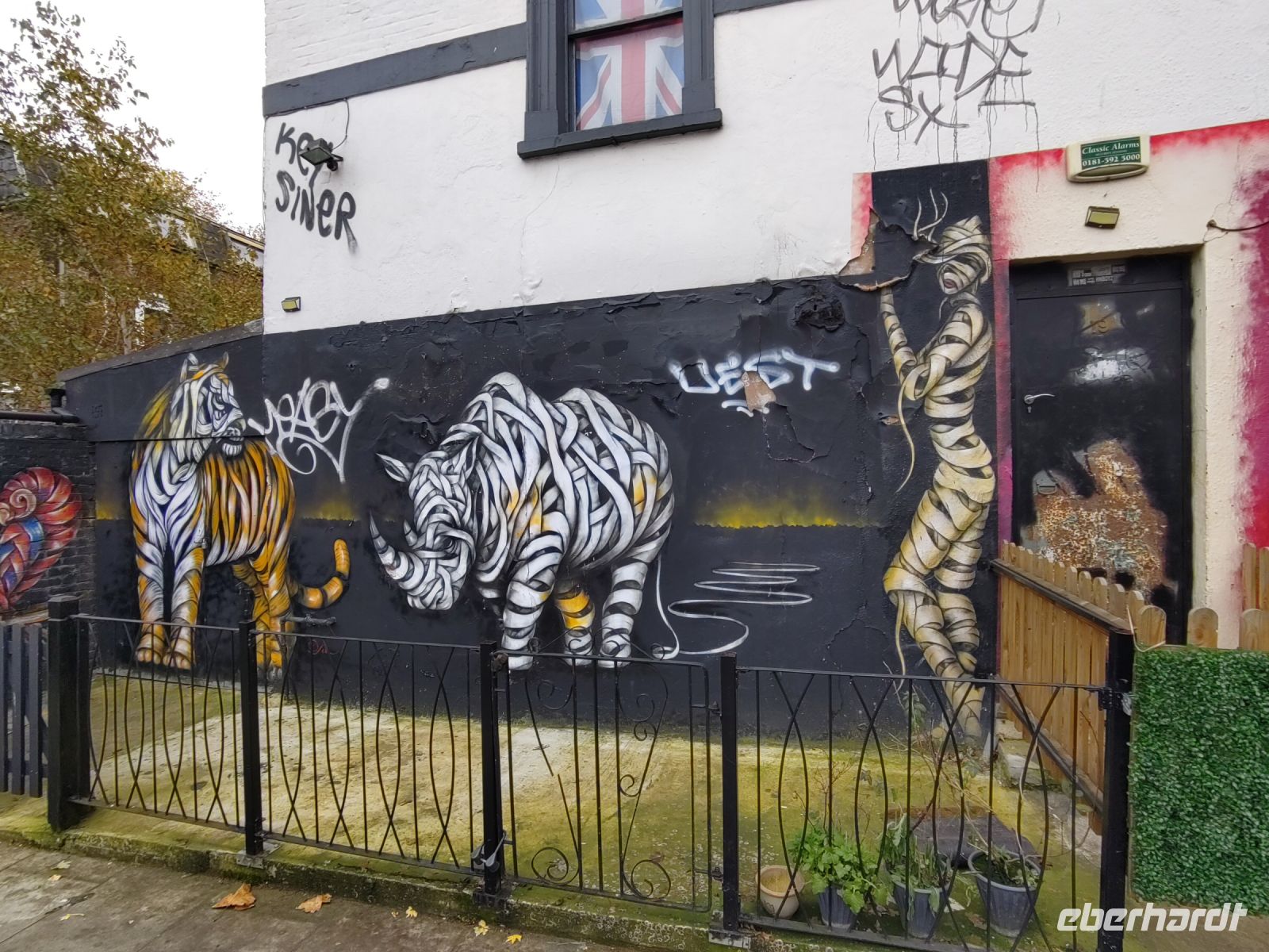 Jetzt war Zeit, Camdens Märkte zu plündern oder sich anderweitig umzutun, etwa am Regent's Canal entlang zu laufen oder aber, wie es vier Leute machten etwas ganz anderes, weil es keine vernünftige Verbindung zur Abbey Road gab, liefen sie die etwa 40 Minuten dorthin, liefen über den berühmten Zebrastreifen in der Nähe der Abbey Road Studios und kehrten wieder zurück.