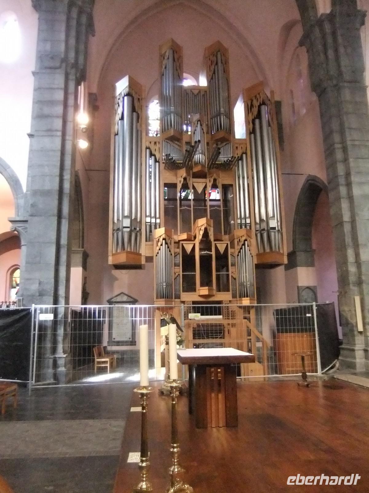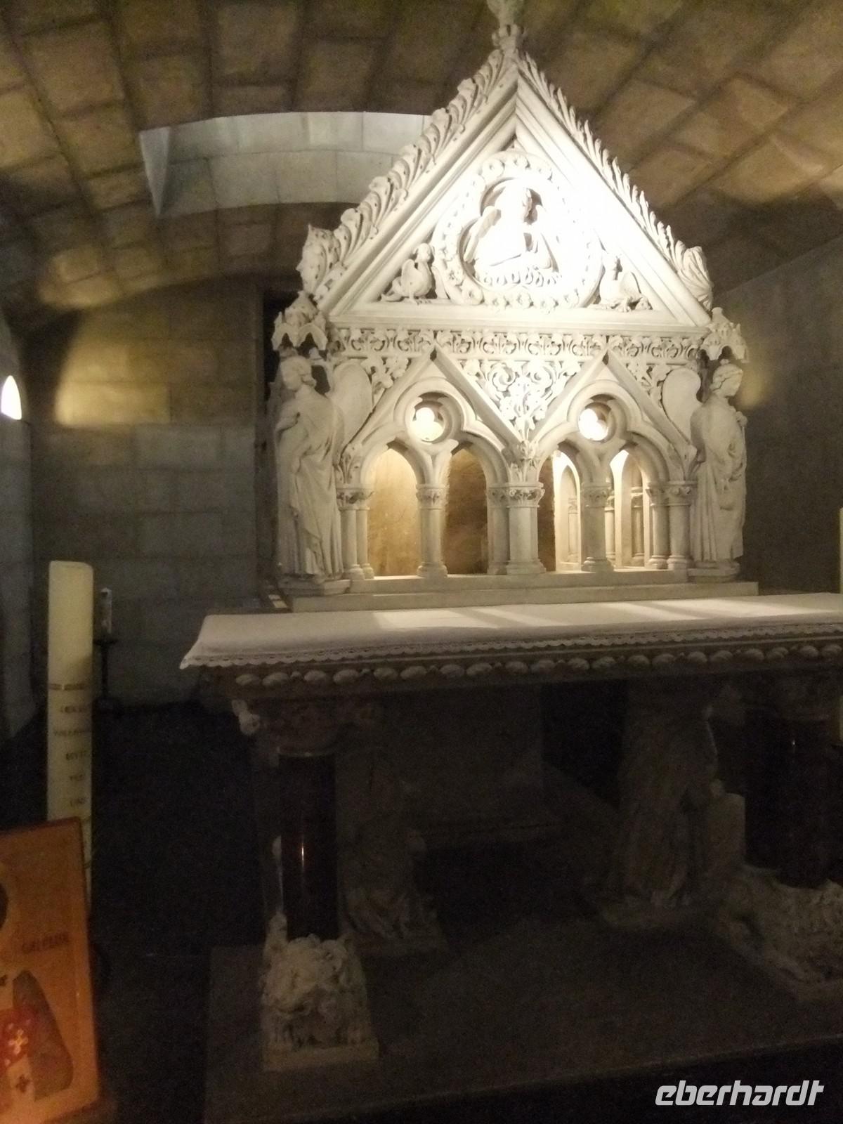 Heute statten wir Echternach an der Sauer einen Besuch ab. Vor 1300 Jahren förderten die Karolinger die Gründung von Klöstern in Luxemburg. Der Übertritt der fränkischen Oberschicht zum Christentum und die Tätigkeit von Wandermönchen hatten noch nicht ausgereicht, um die Religion in breite Bevölkerungsschichten hineinzutragen. Mit den Klöstern entstanden selbständige Wirtschaftseinheiten, die auf ihre Umgebung ausstrahlten. Die Klöster, vor allem auch Echternach, wurden zu Trägern der geistigen Entwicklung im Mittelalter. Die Echternacher Buchmalerei war weithin berühmt. Die Abteikirche zeigt alle Merkmale einer romanischen Basilika einschließlich des hier erfundenen Stützenwechsels (Wechsel Säule - Pfeiler - Säule im Langhaus), aber die frische Oberfläche der Steine und das völlig schmucklose Portal verraten, das auch diese Kirche 1944 fast völlig zerstört war. In der Krypta ruht der der heilige Willibrord, der das Kloster 698 gegründet hatte, in einem Steinsarg, umgeben von einem Schrein aus Carrara-Marmor.